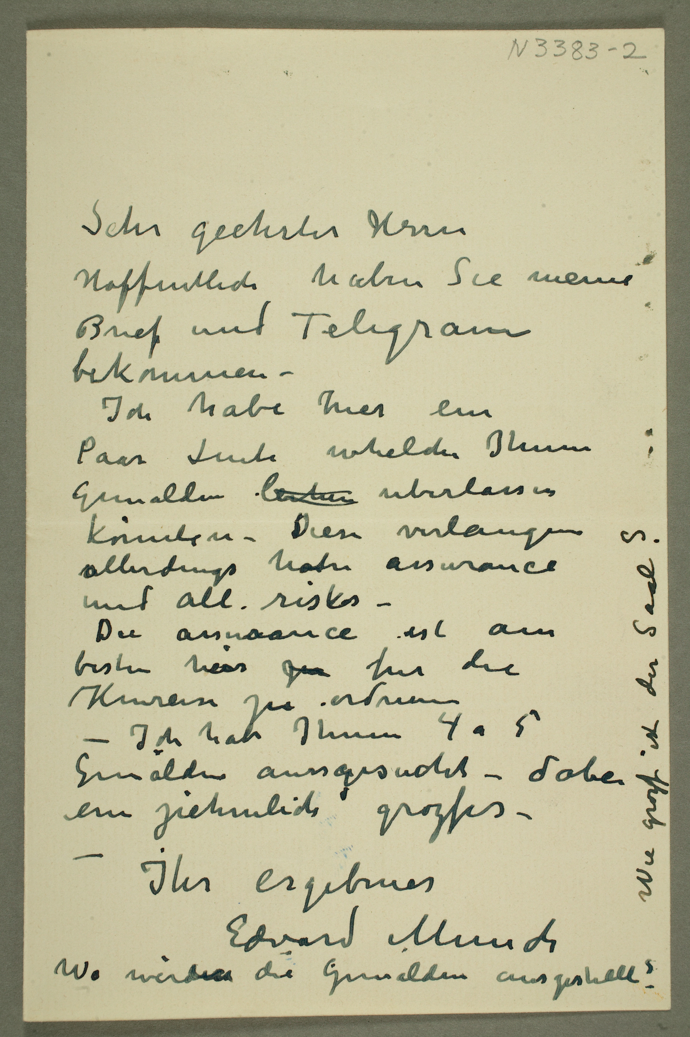 MM N 3383, Munchmuseet. Datert 15.4.1926. Brev til Münchener Neue Secession