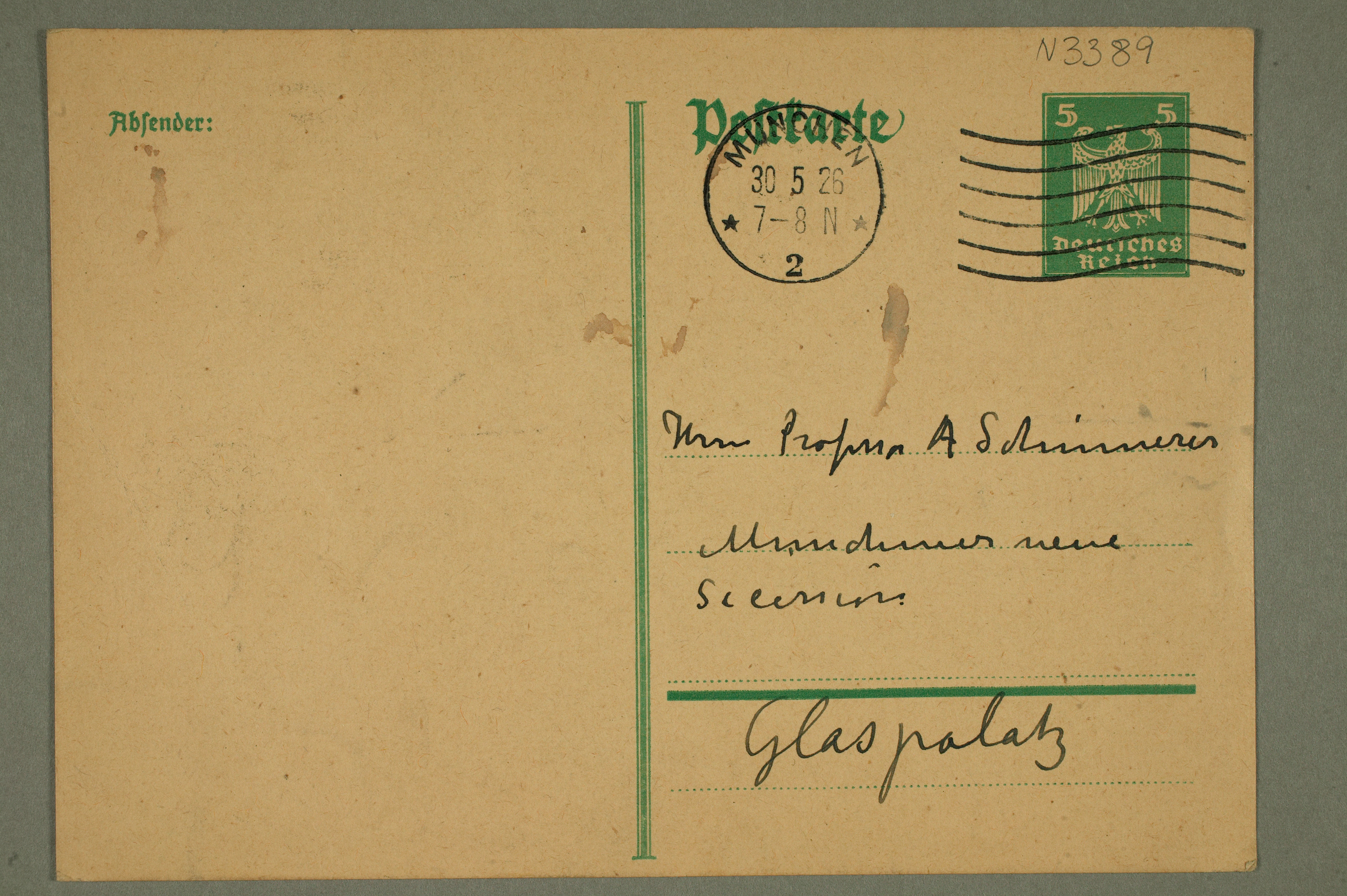 MM N 3389, Munchmuseet. Datert 30.5.1926. Brev til Münchener Neue Secession