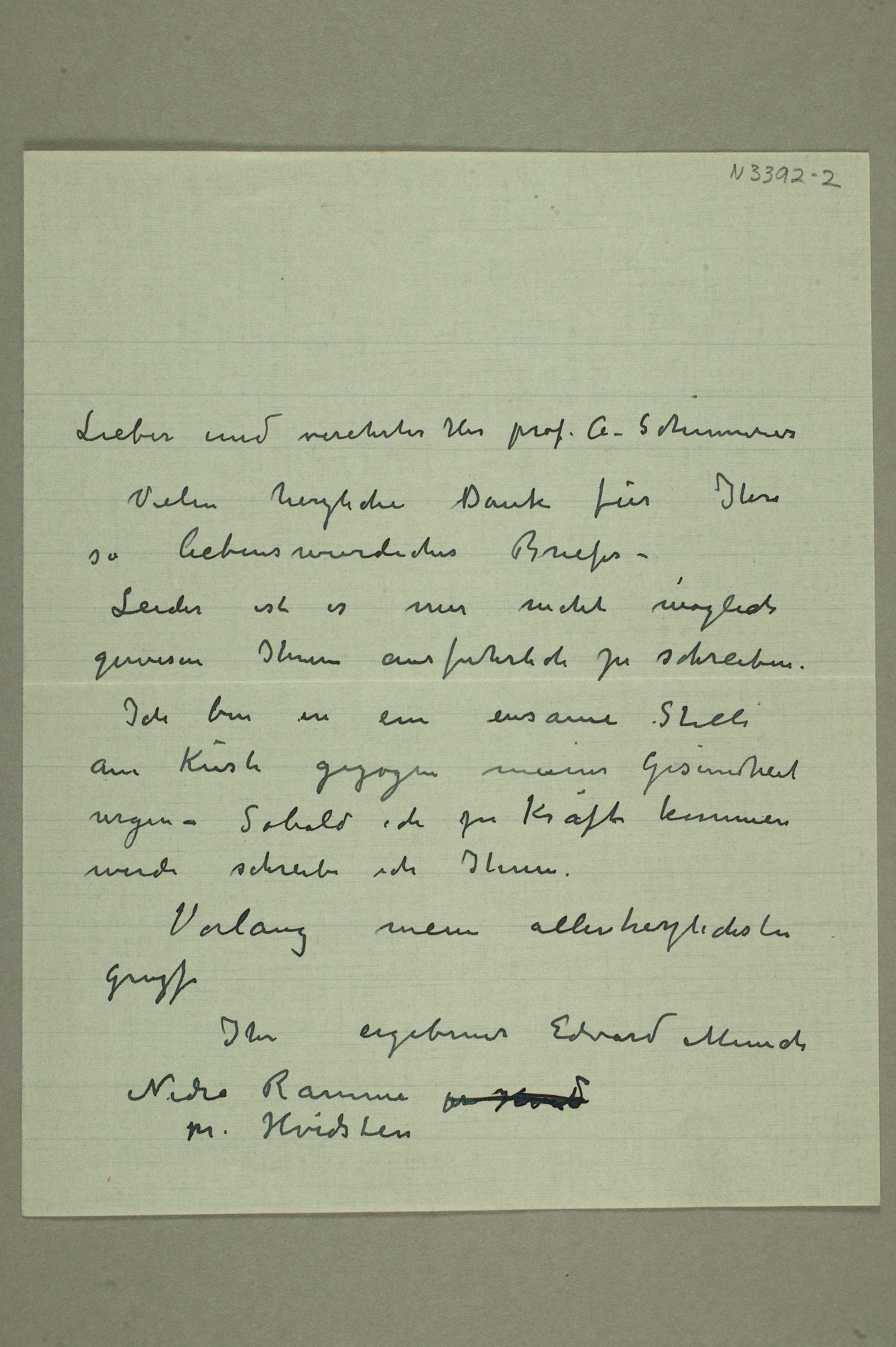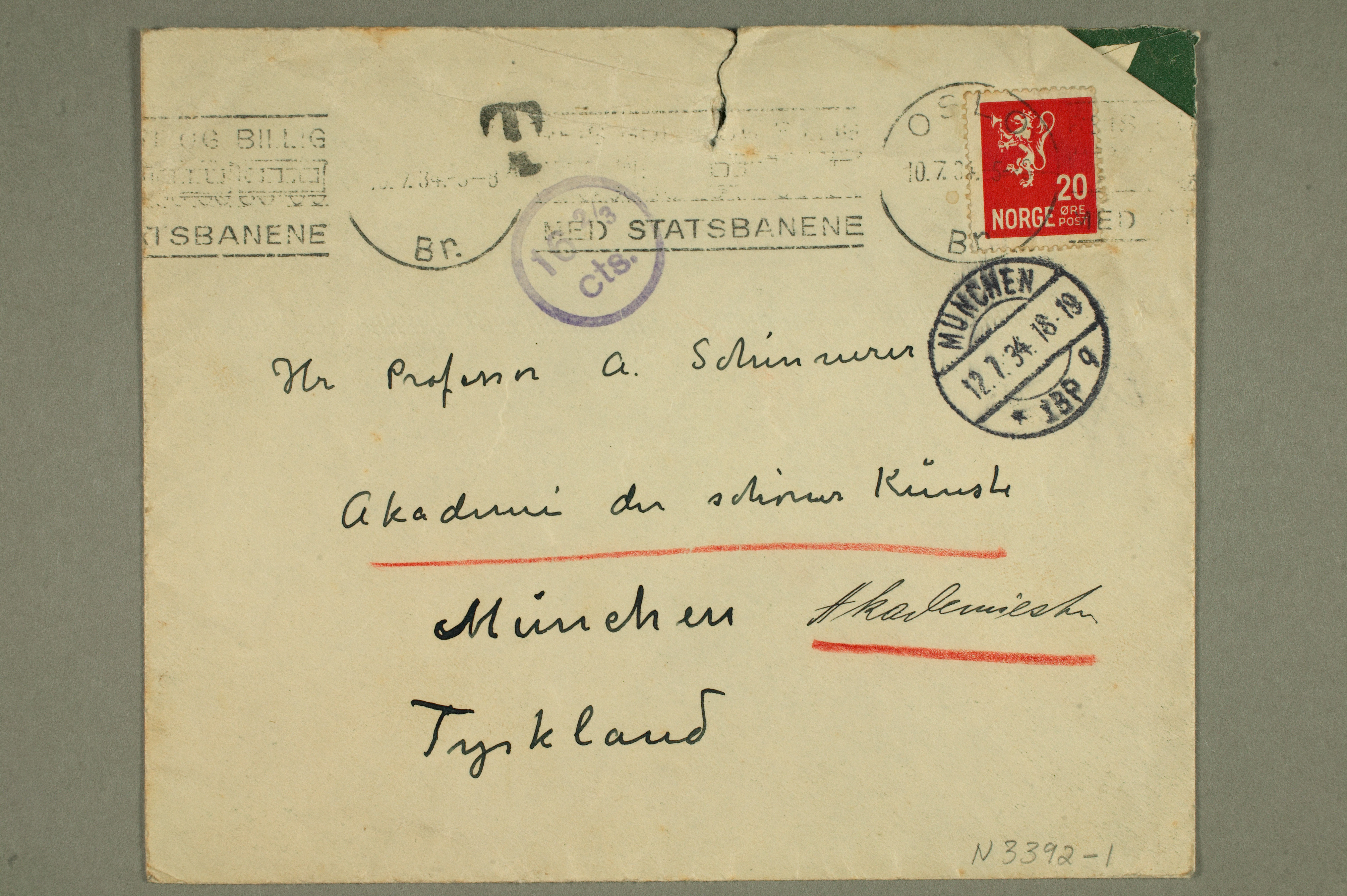 MM N 3392, Munchmuseet. Datert 10.7.1934. Brev til Adolf Schinnerer, Münchener Neue Secession