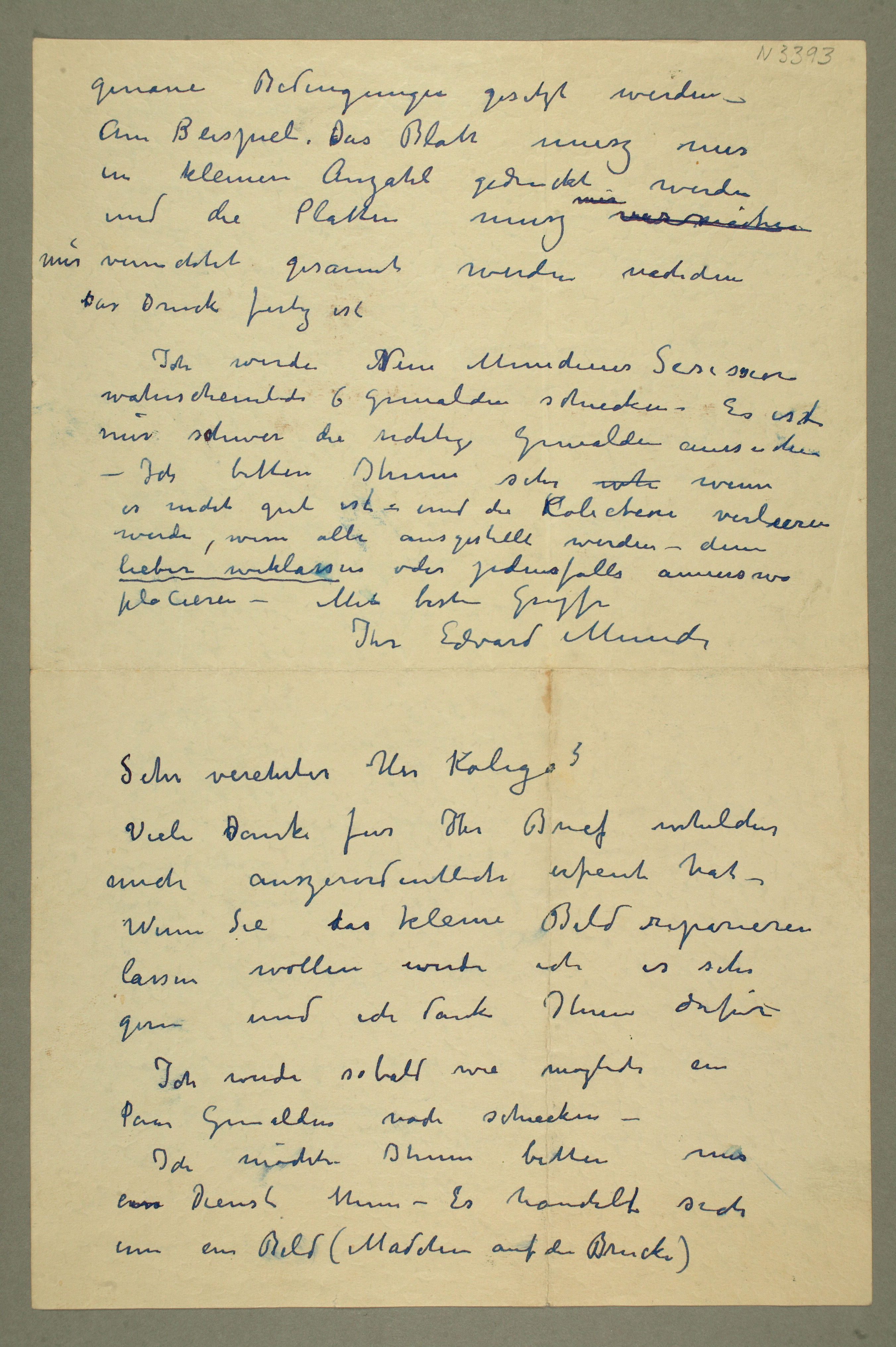 MM N 3393, Munchmuseet. Ikke datert. Brev til Adolf Schinnerer, Münchener Neue Secession