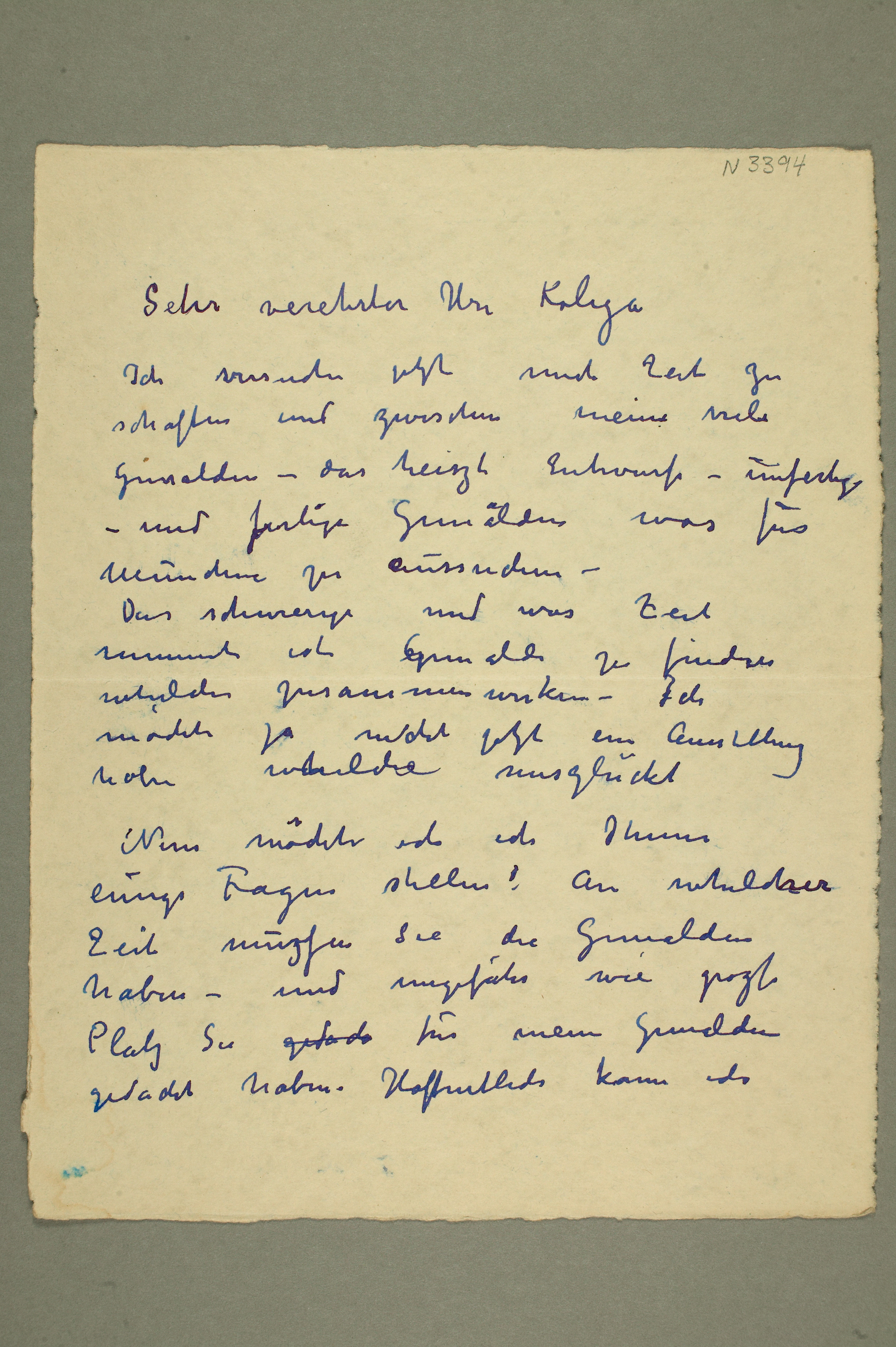 MM N 3394, Munchmuseet. Ikke datert. Brev til Adolf Schinnerer, Münchener Neue Secession