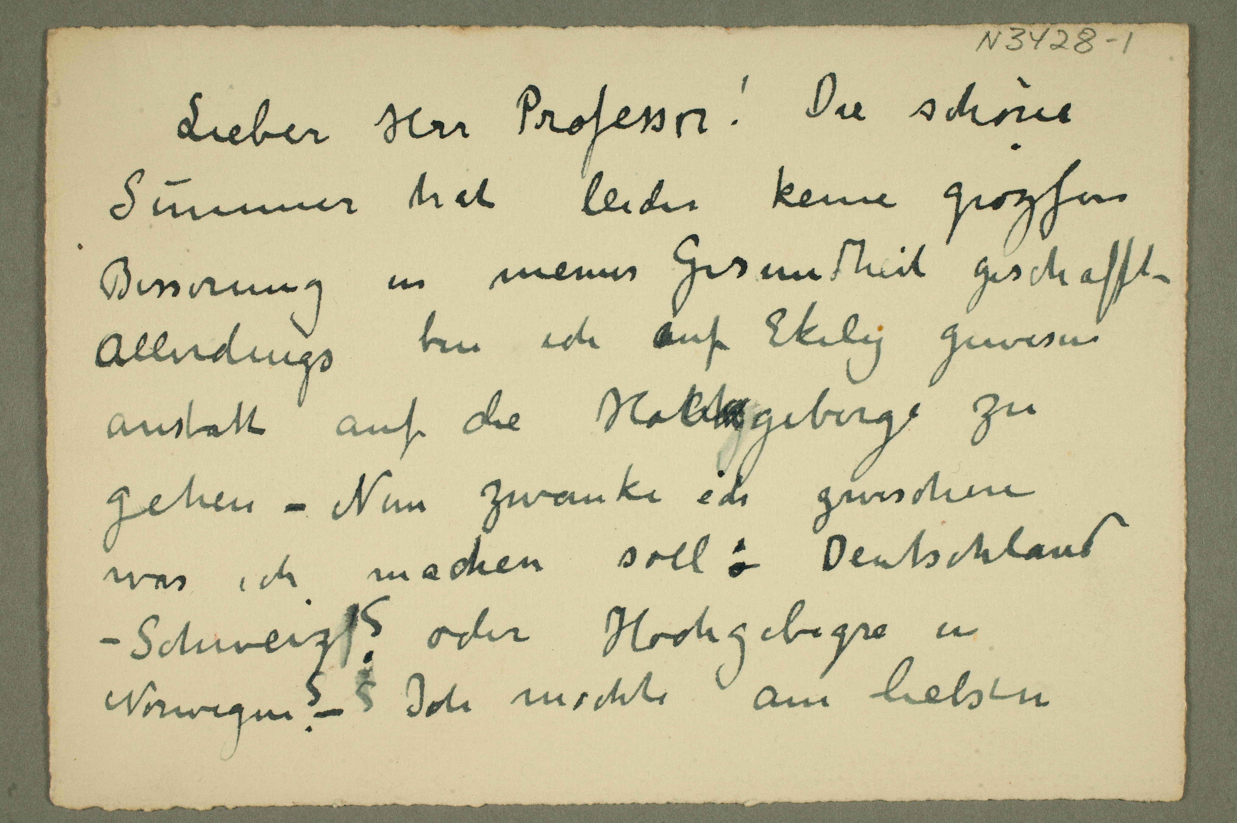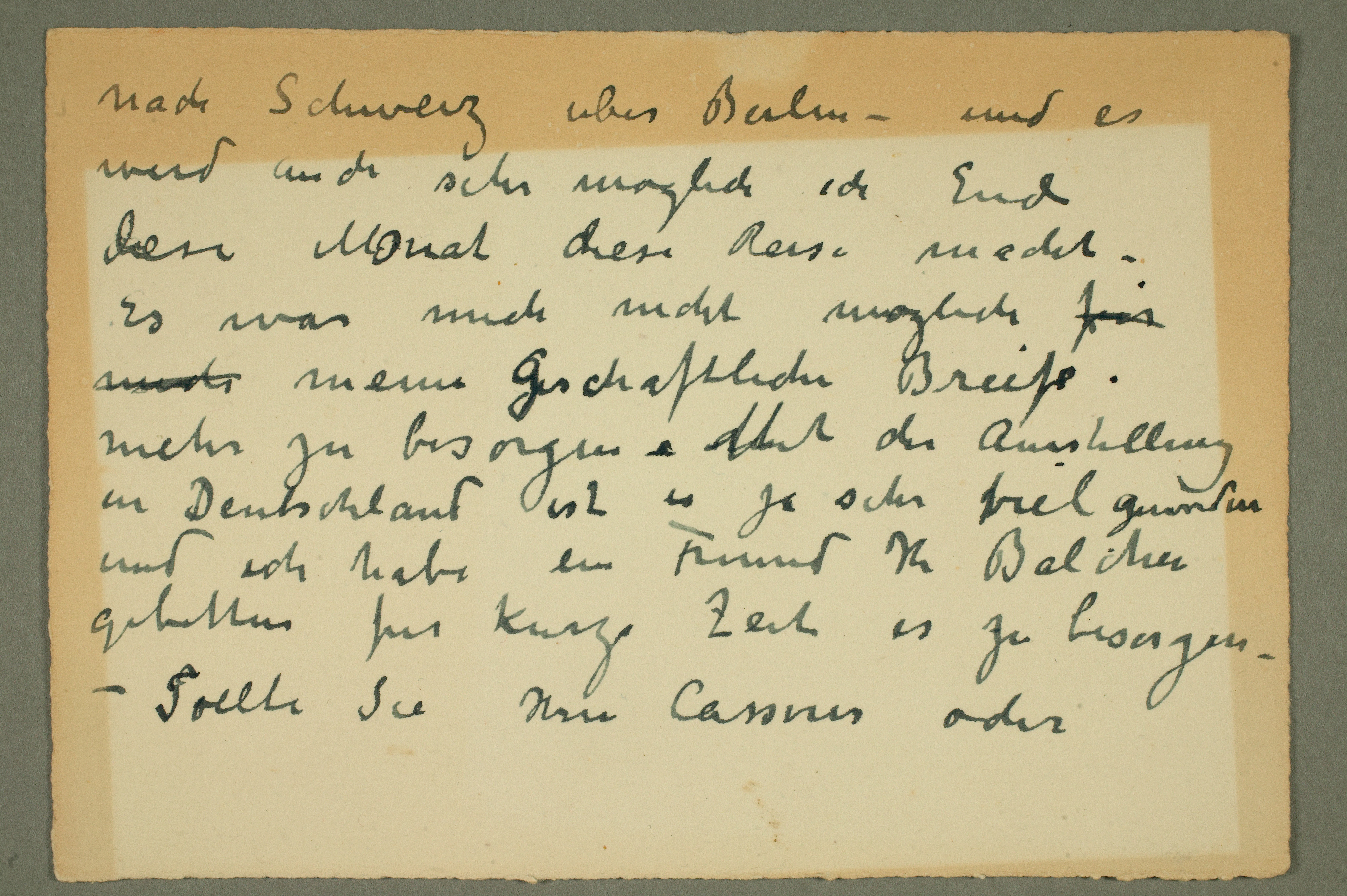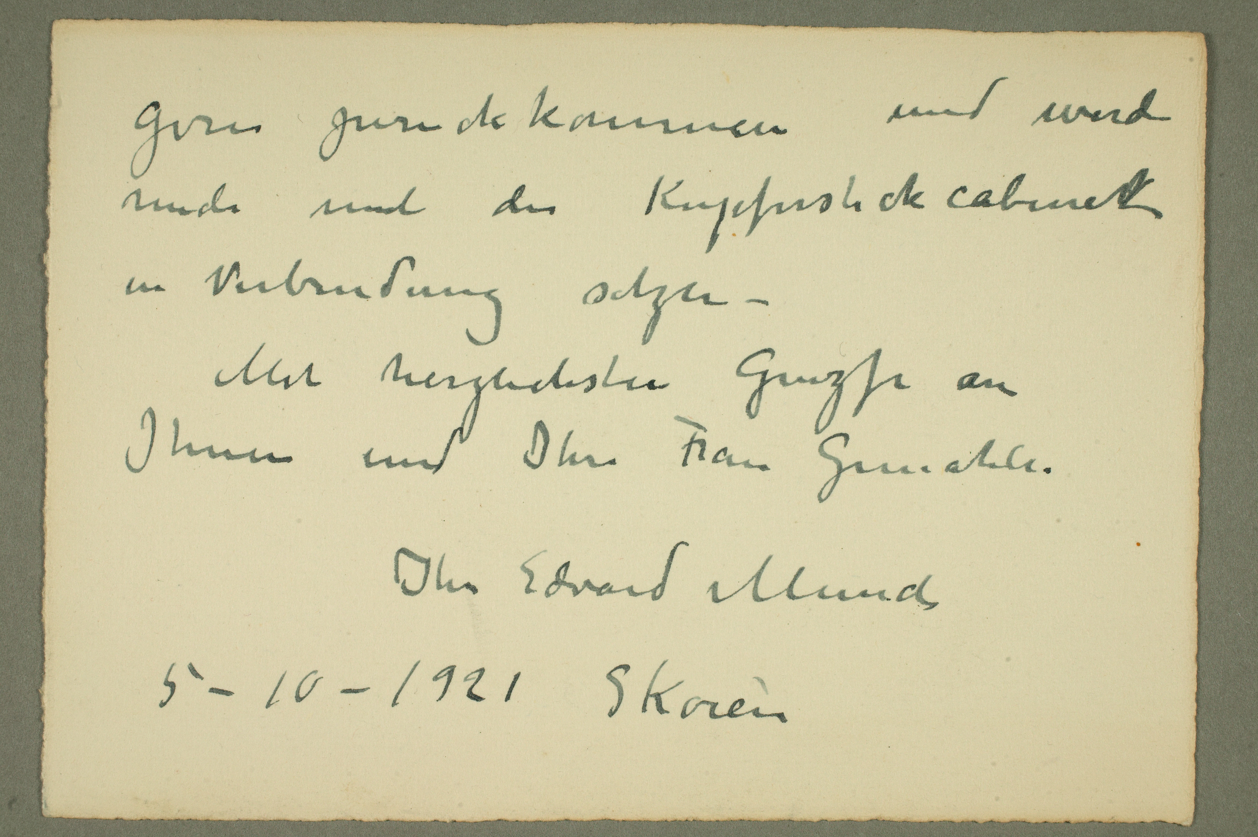 MM N 3428, Munchmuseet. Datert 5.10.1921. Brevutkast til Curt Glaser.