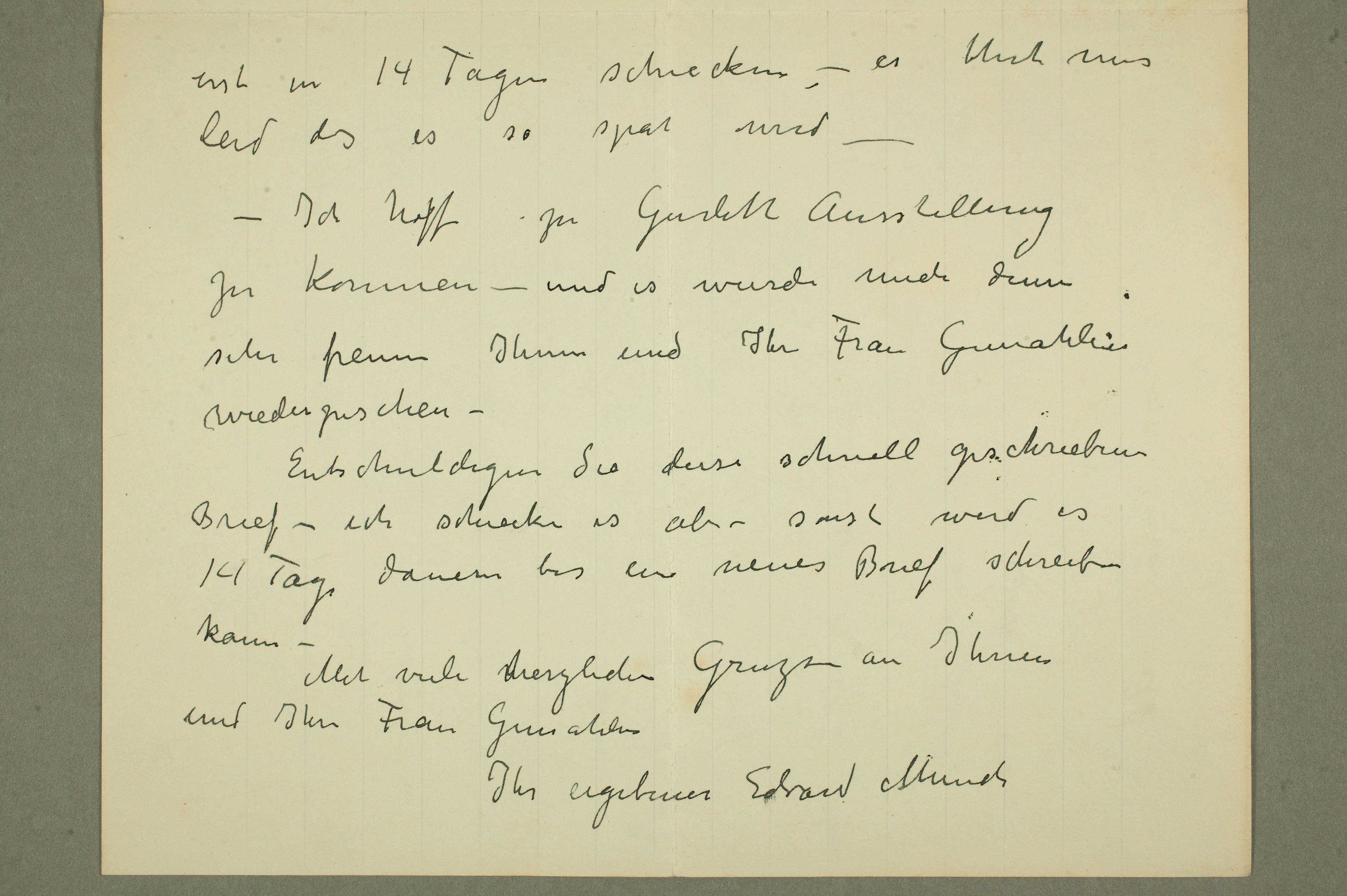 MM N 3429, Munchmuseet. Datert 1914. Brevutkast til Curt Glaser.