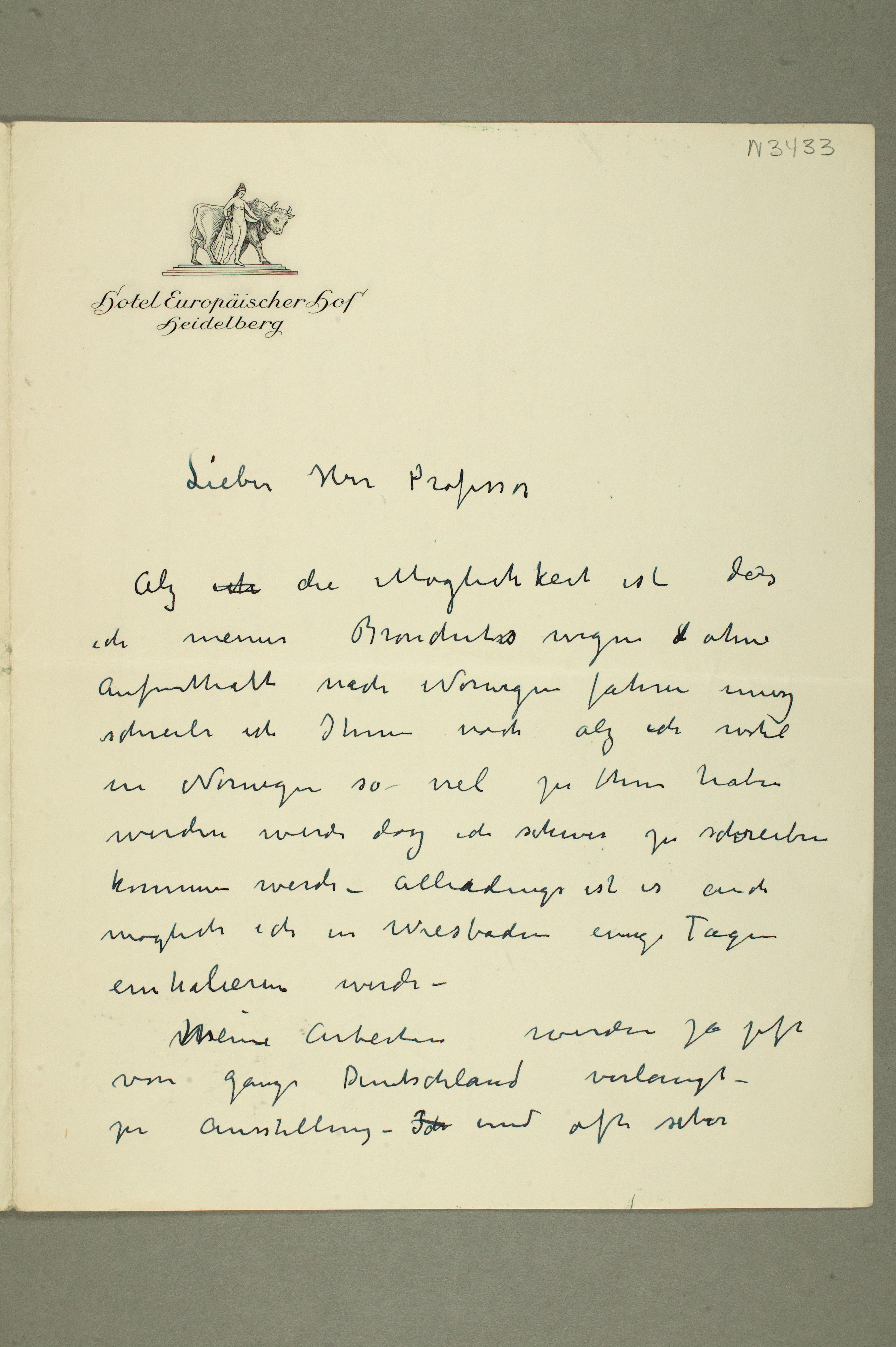 MM N 3433, Munchmuseet. Datert [??].11.1926. Brevutkast til Curt Glaser.