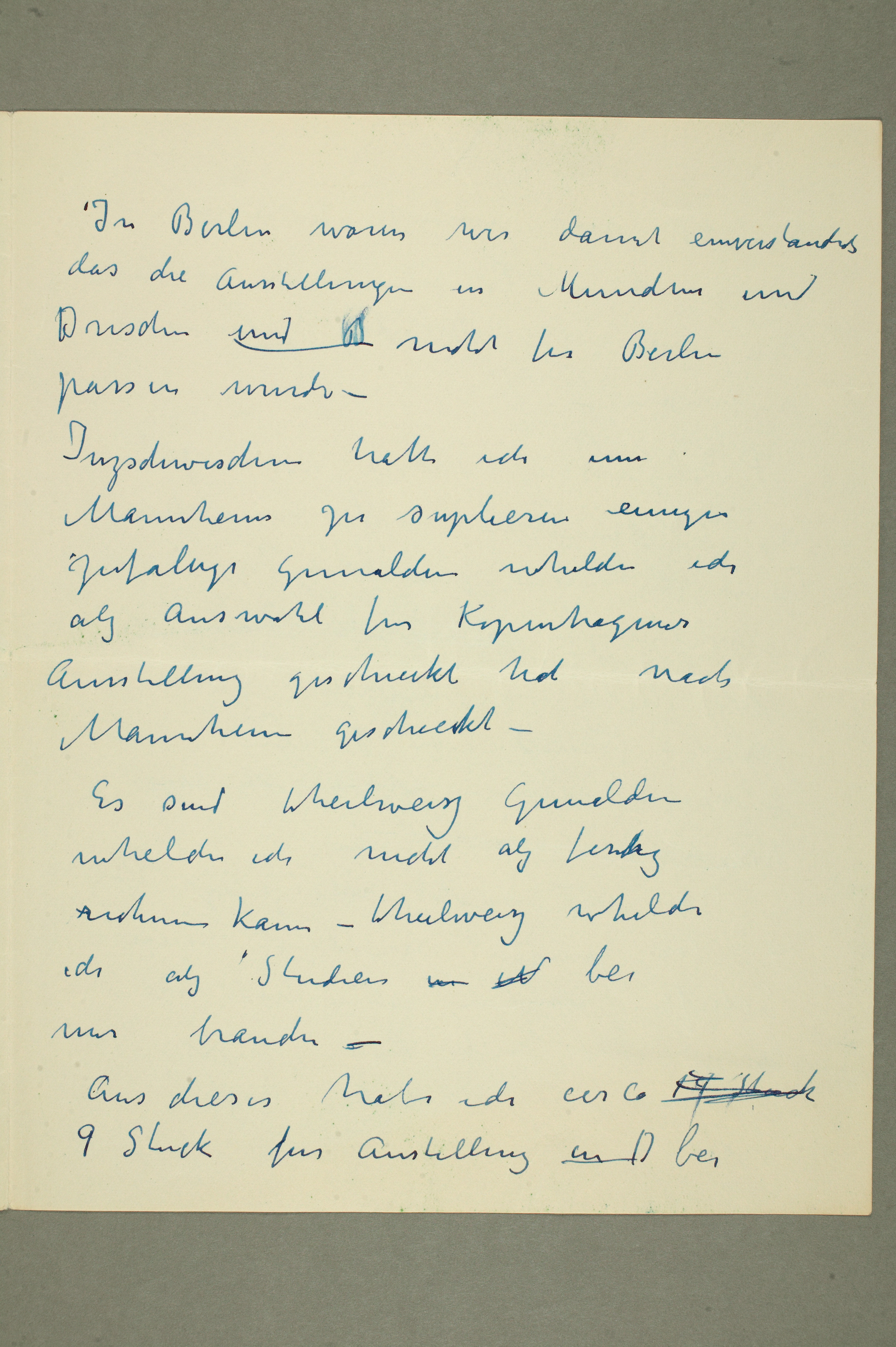MM N 3436, Munchmuseet. Datert [??].11.1926. Brevutkast til Curt Glaser.