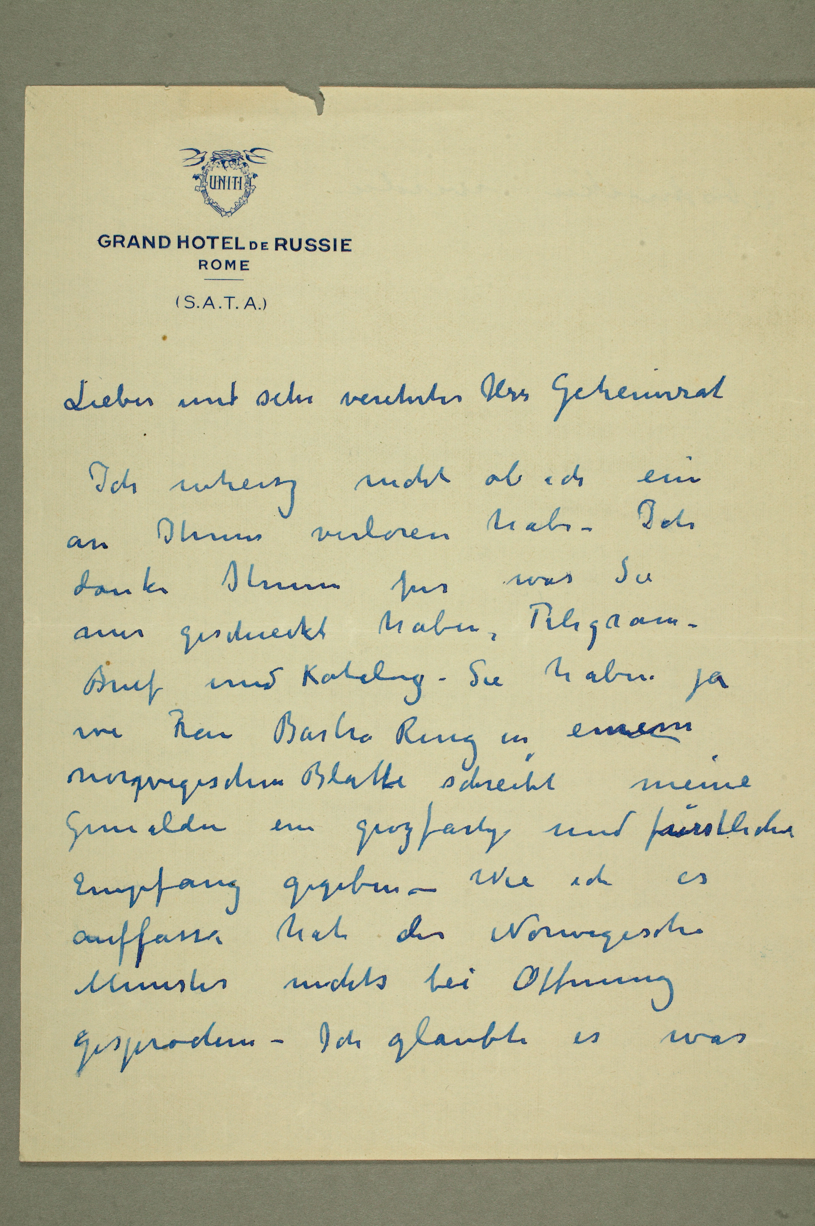 MM N 3448, Munchmuseet. Datert 1927. Brevutkast til Ludwig Justi, Nationalgalerie (Staatliche Museen zu Berlin).