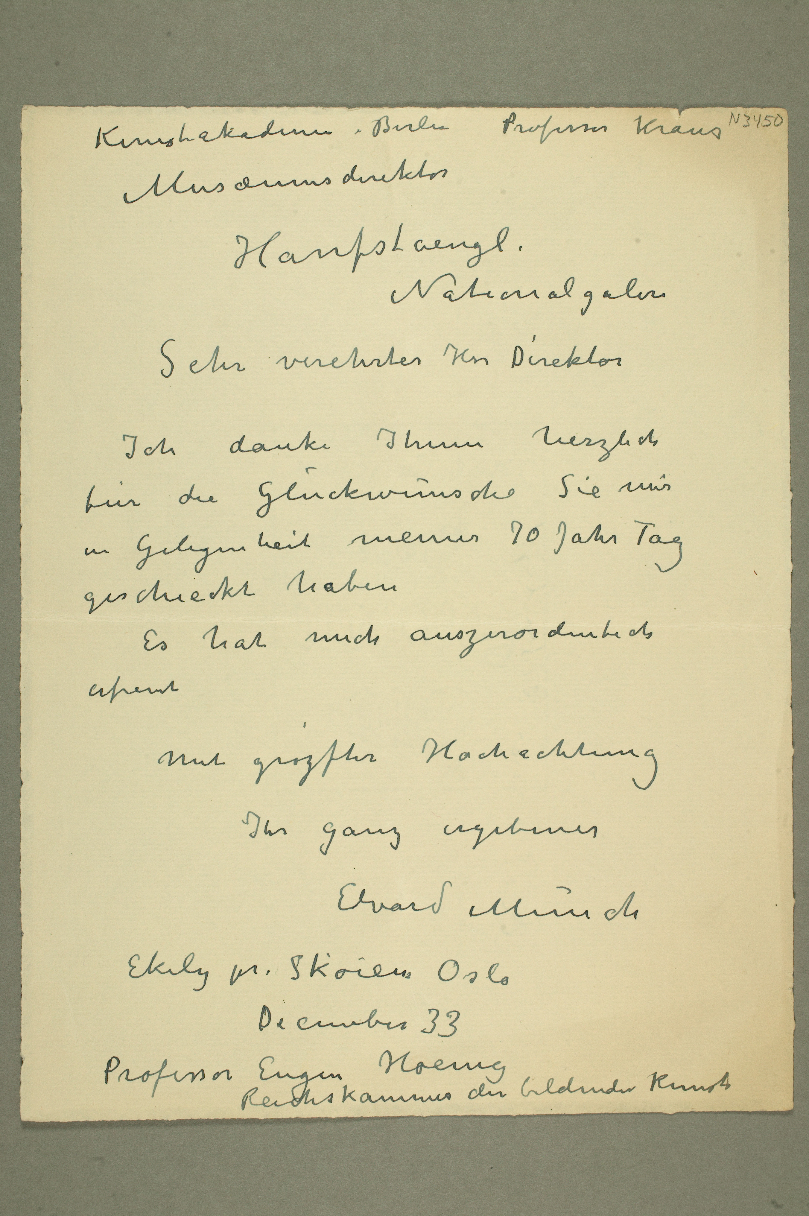 MM N 3450, Munchmuseet. Datert 12.1933. Brevutkast til Die Akademie der Künste.