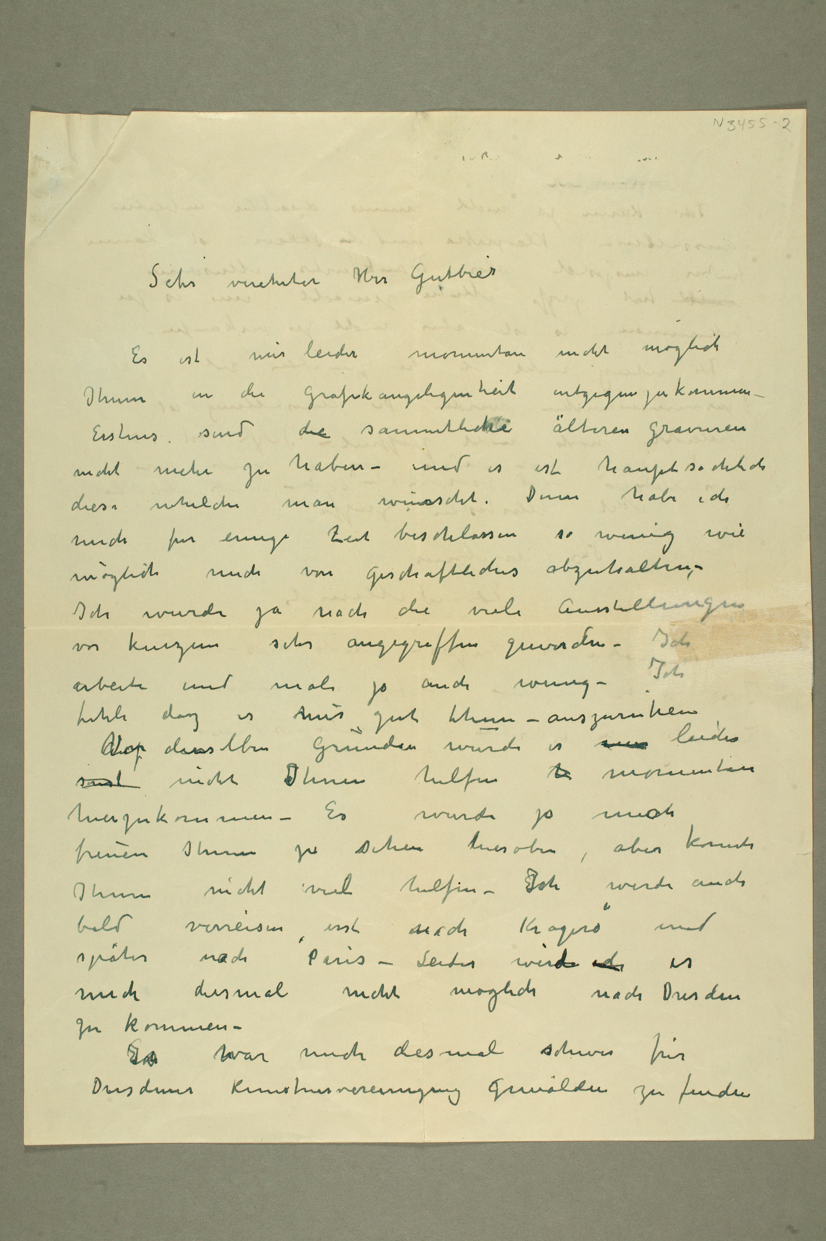 MM N 3455, Munchmuseet. Ikke datert. Brev til Ludwig Wilhelm Gutbier, Galerie Ernst Arnold