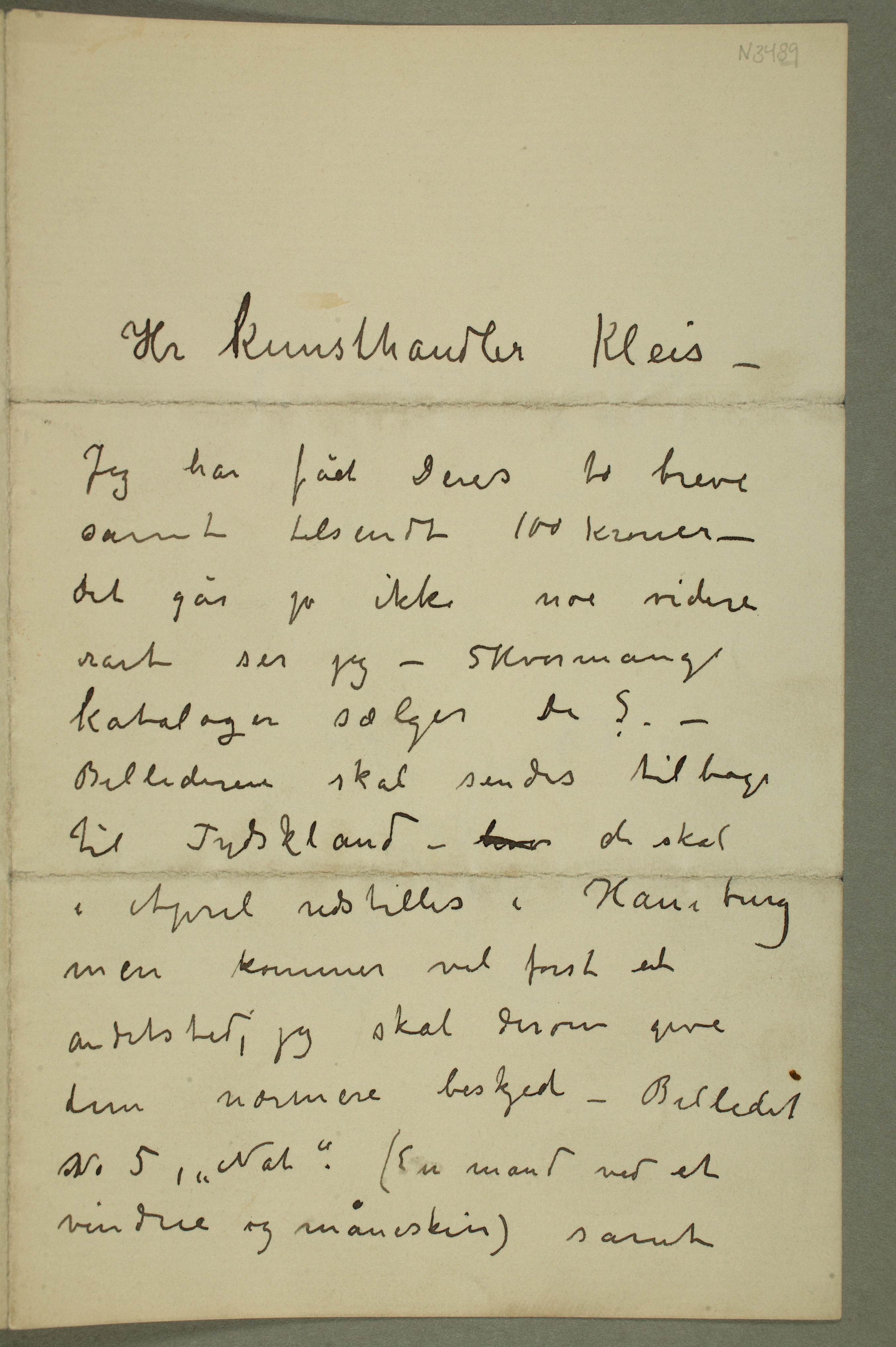 MM N 3489, Munchmuseet. Datert 1893. Brevutkast til Kleis.