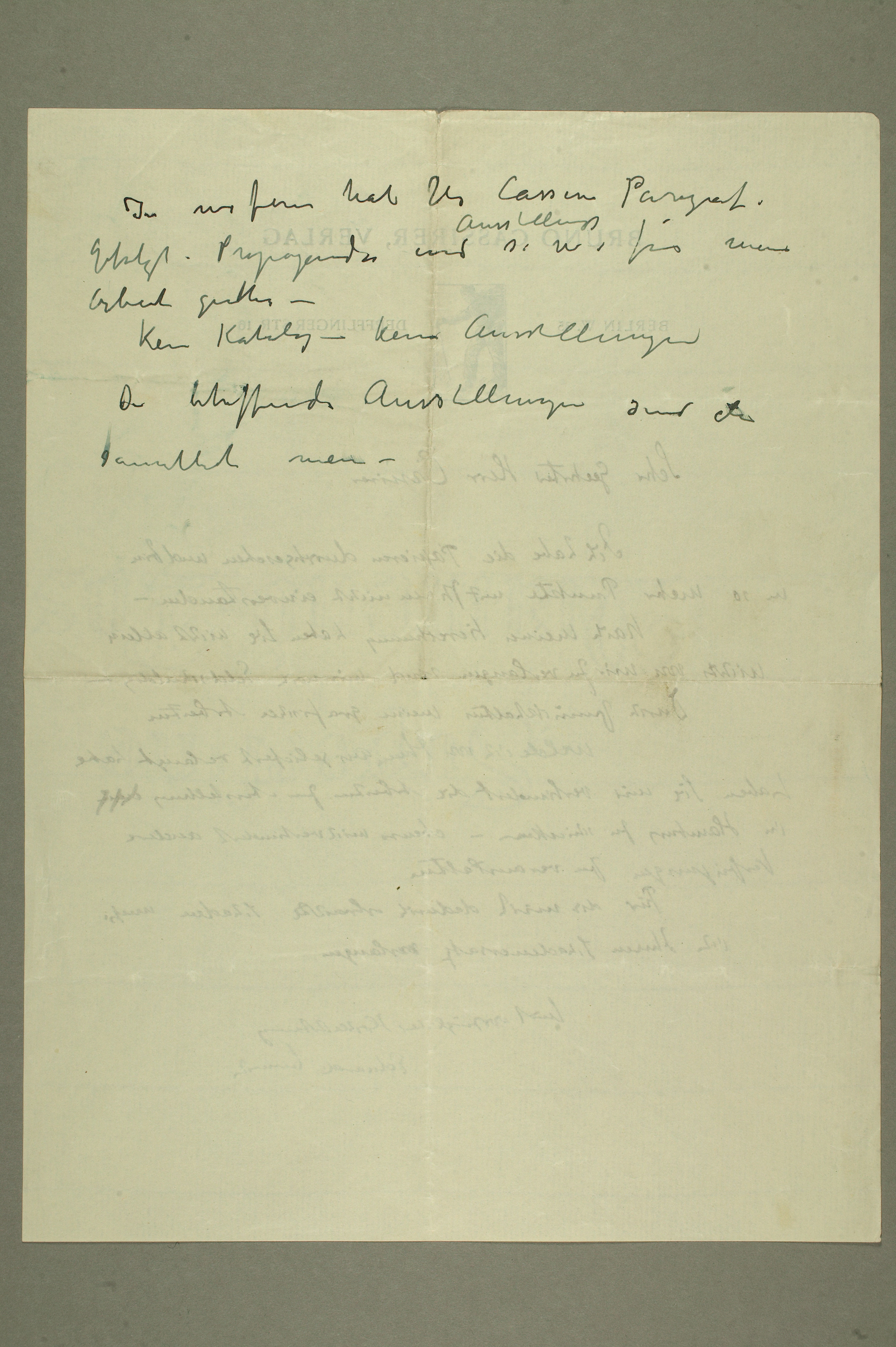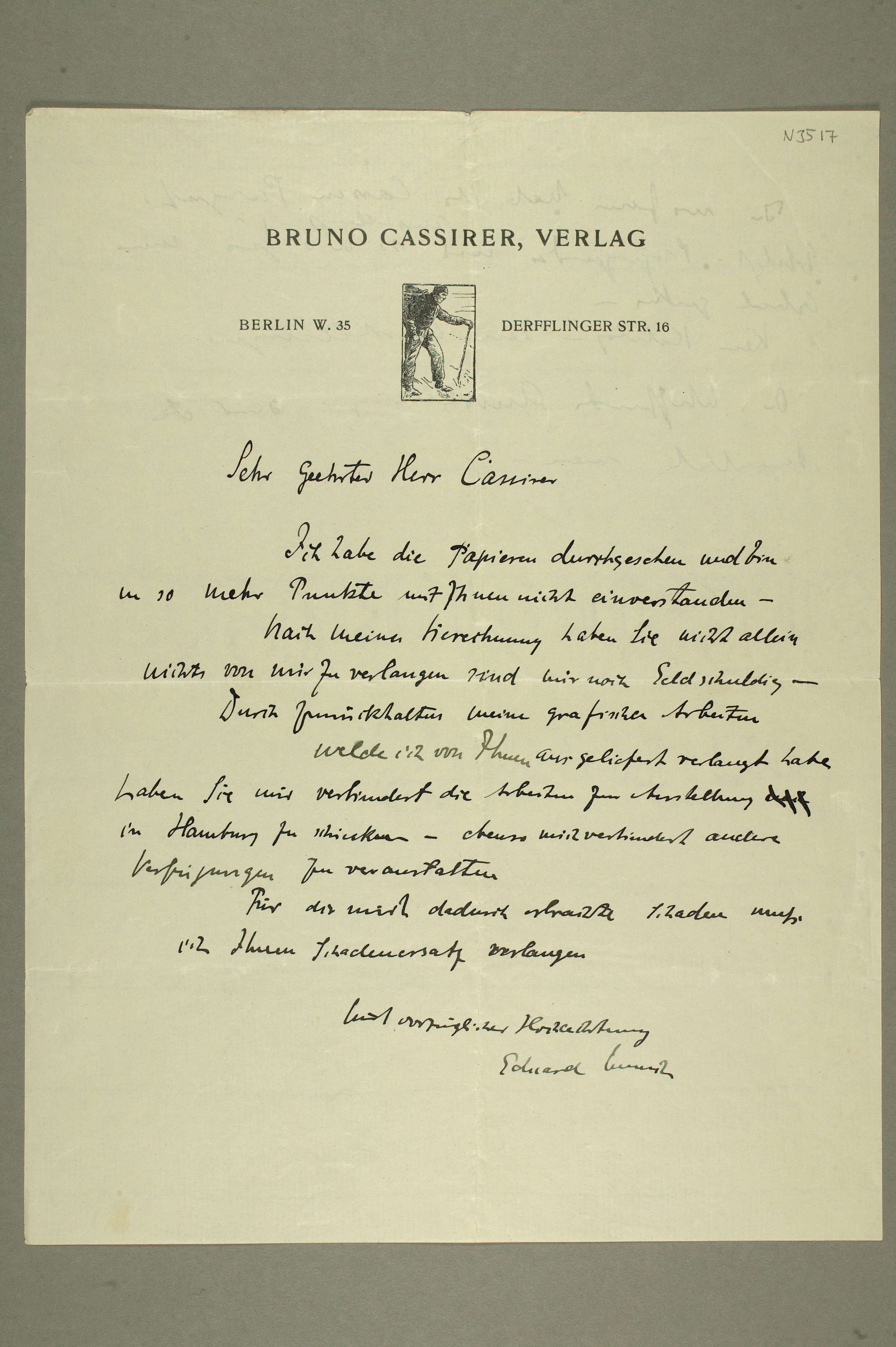 MM N 3517, Munchmuseet. Ikke datert. Brevutkast til Bruno Cassirer.