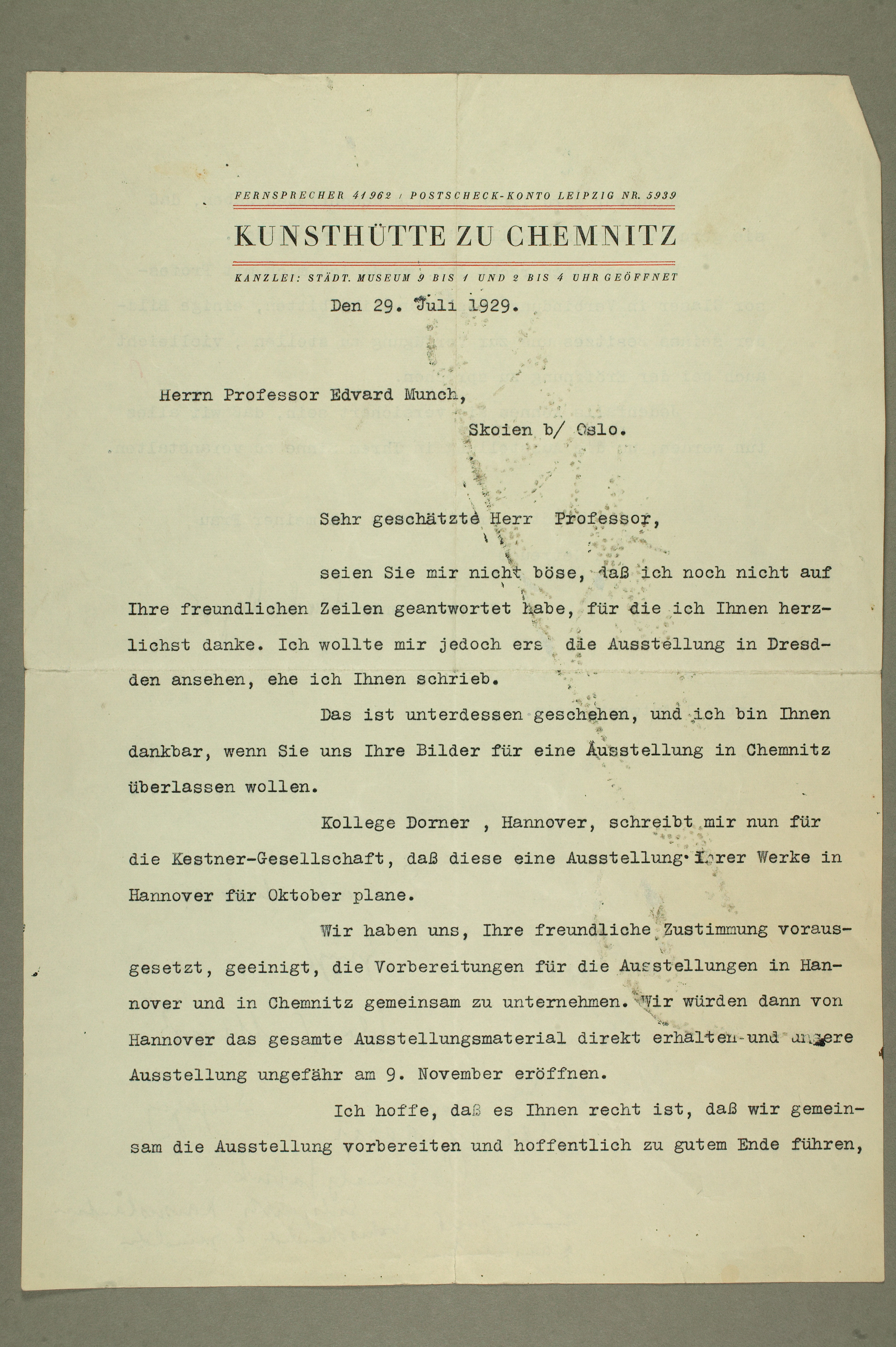 Filologisk kommentar: Notat på brev fra Kunsthütte zu Chemnitz ved Friedrich Schreiber-Weigand, se MM K 3910.