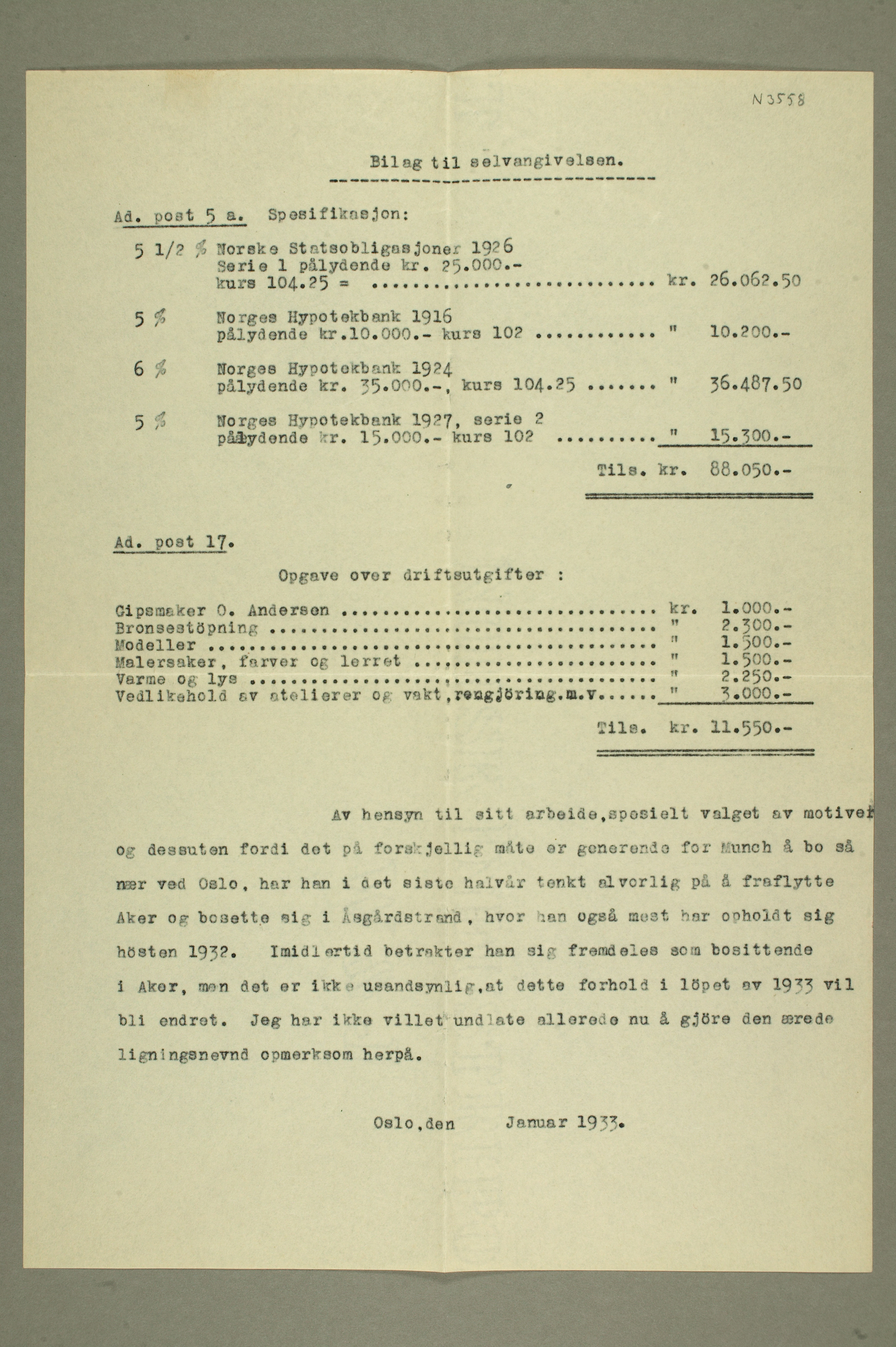 MM N 3558, Munchmuseet. Datert 1.1933. Varia.