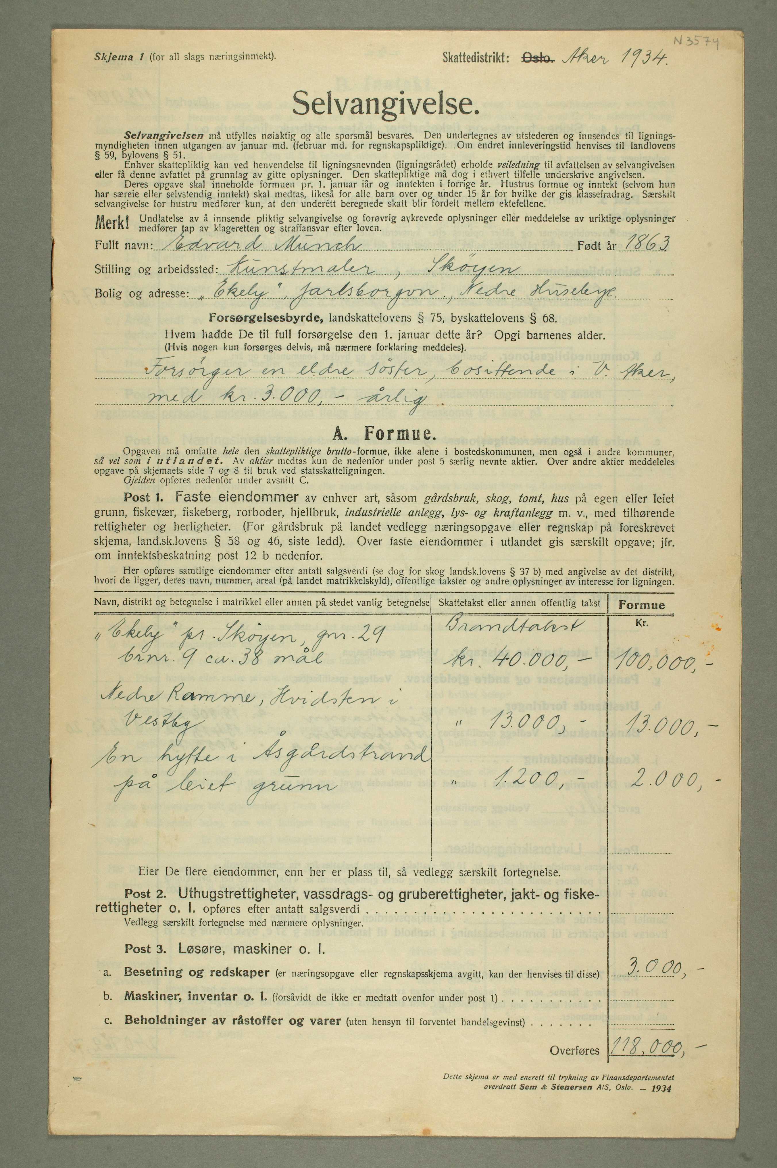 MM N 3574, Munchmuseet. Datert 17.1.1934. Varia.