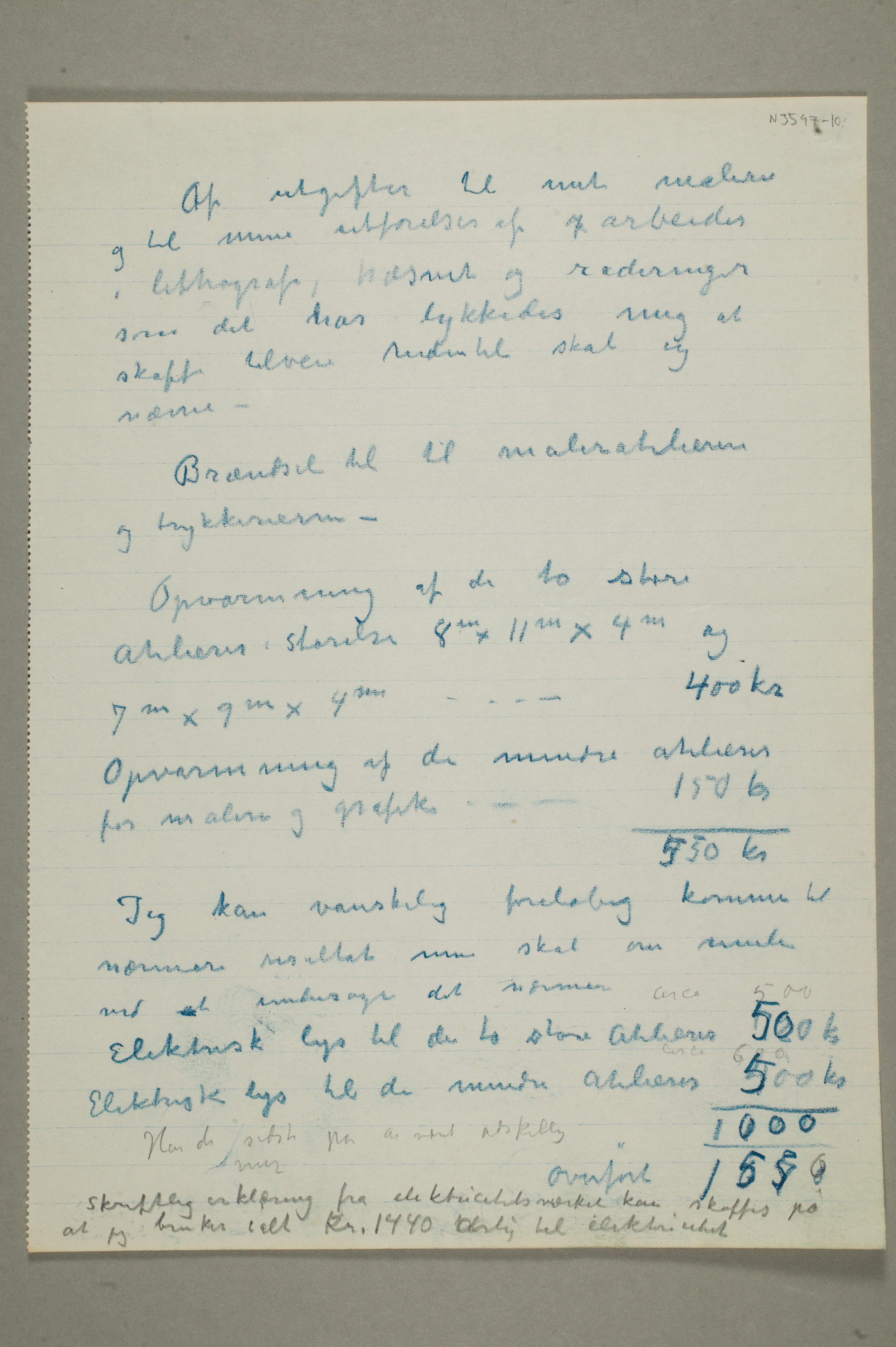ved at undersøge det nærmere - Elektrisk lys til de to store atelierer circa 500 {720}500 kr