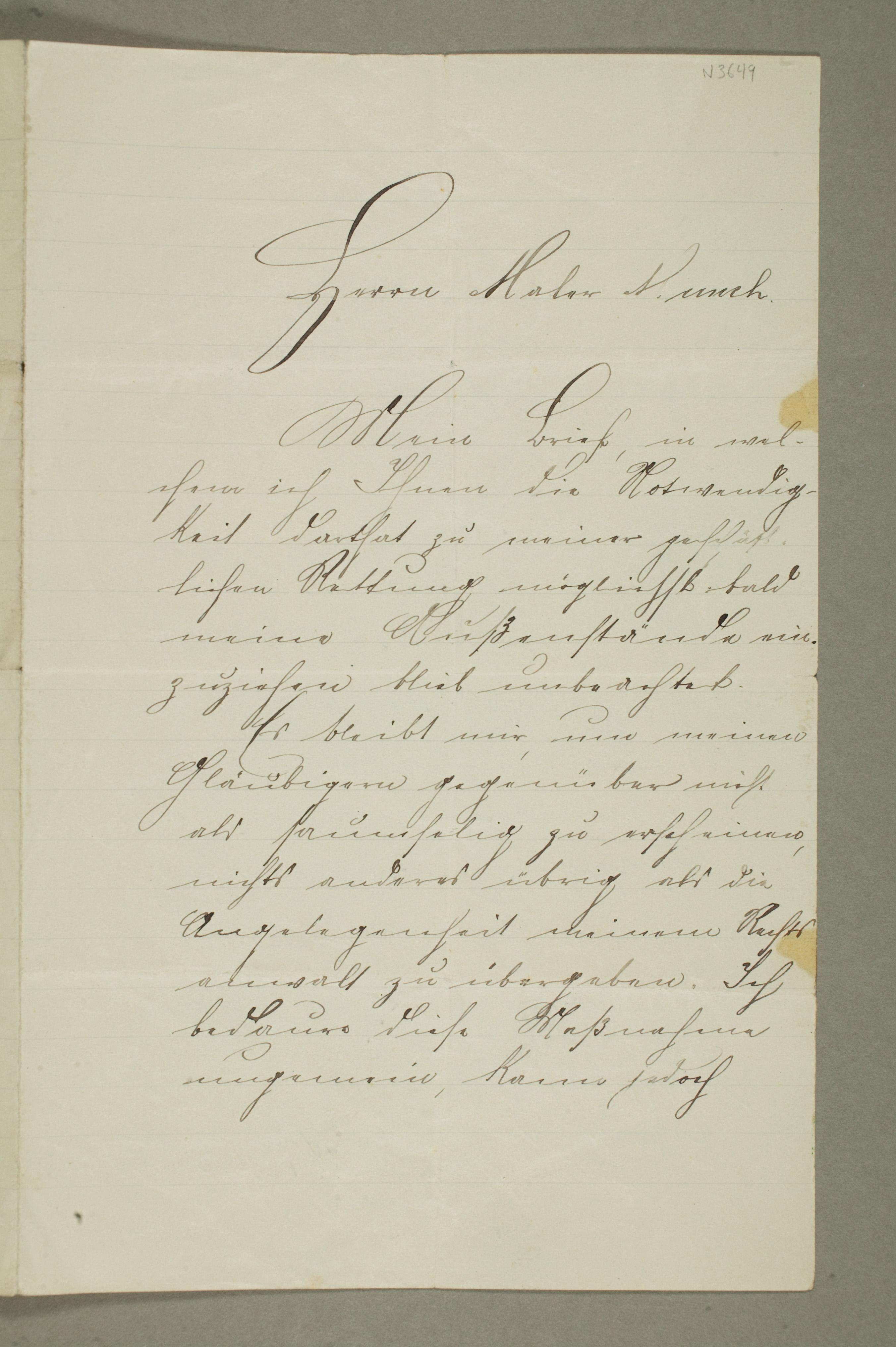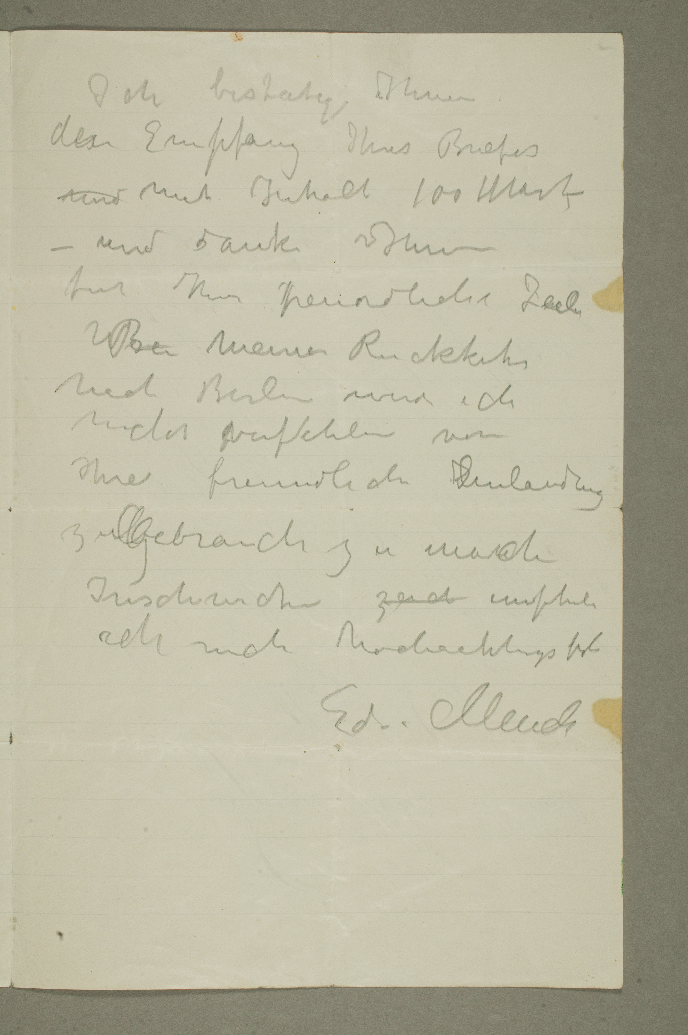 MM N 3649, Munchmuseet. Datert 1902. Brevutkast til Walter Rathenau.