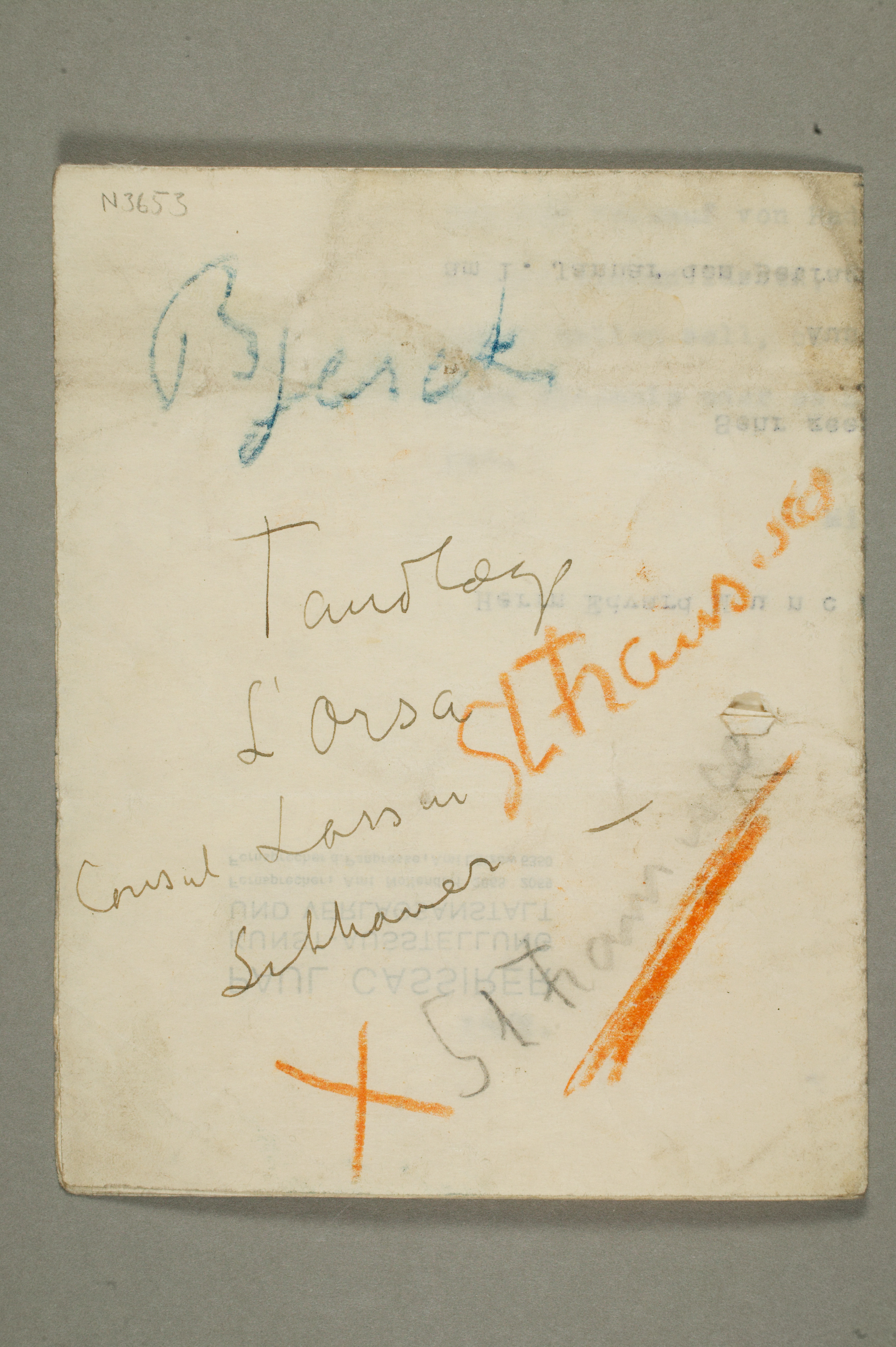 Filologisk kommentar: Skrevet på baksiden av brev fra Paul Cassirer, datert 21/2-1919, Berlin.