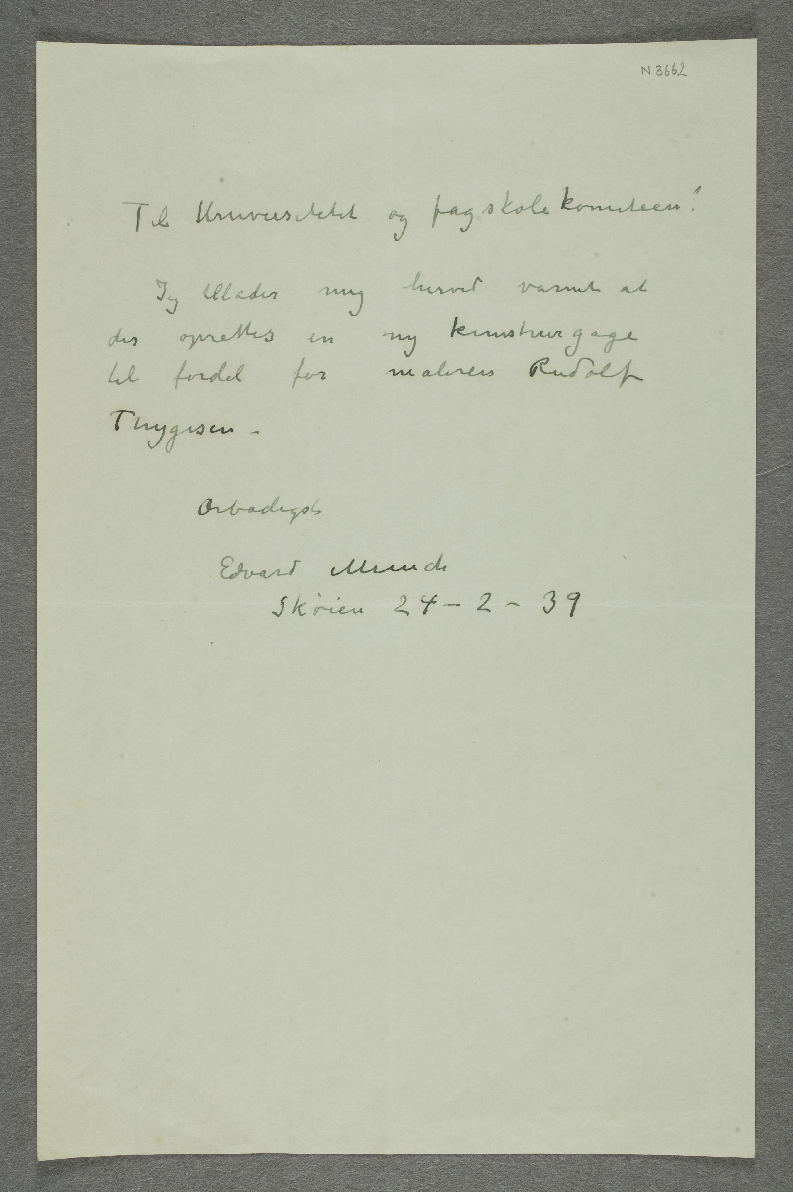 MM N 3662, Munchmuseet. Datert 24.2.1939. Brevutkast til Universitetet i Oslo.