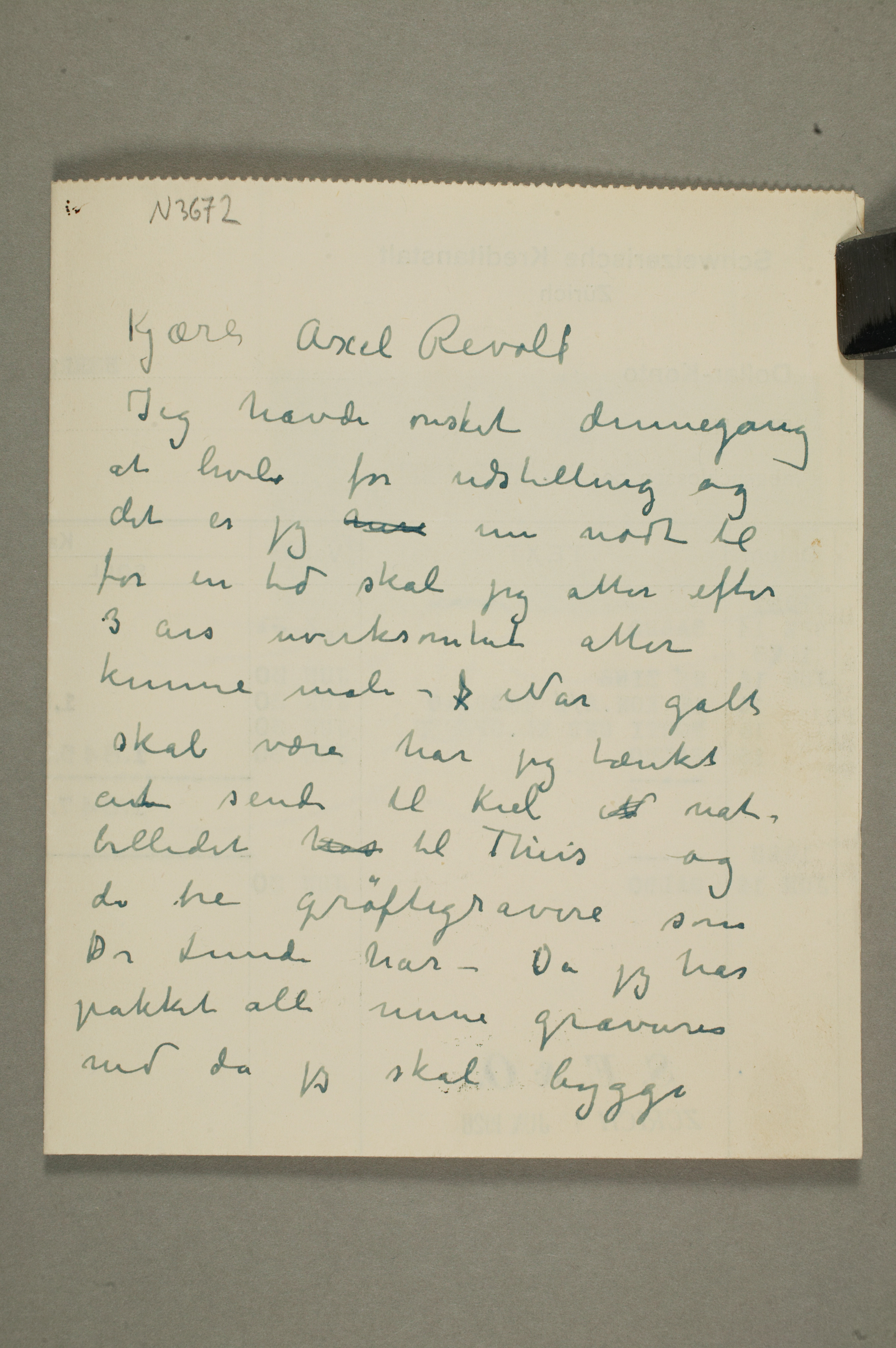 MM N 3672, Munchmuseet. Datert 1928. Brevutkast til Axel Revold.