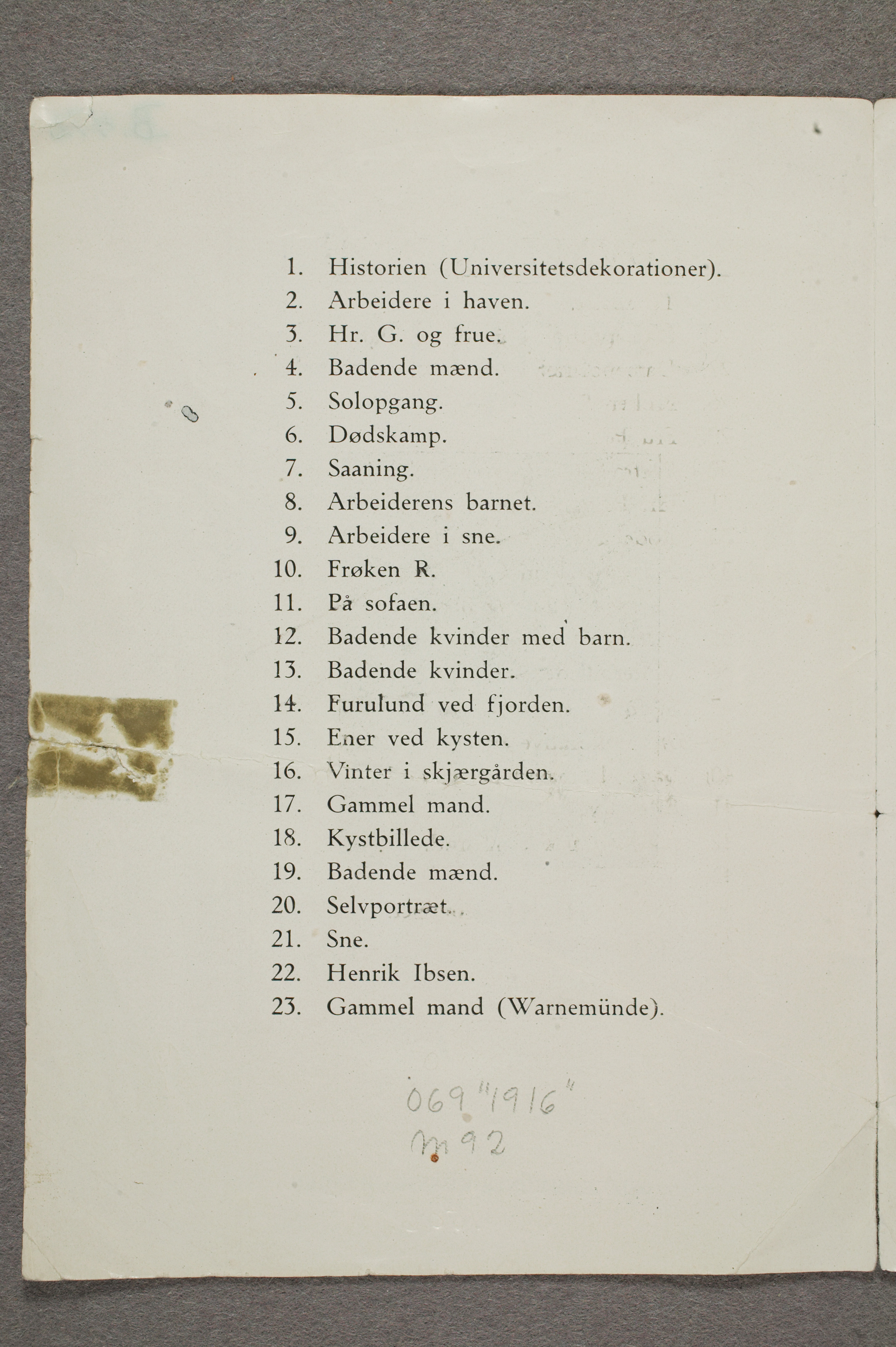 Filologisk kommentar: Utstillingskatalog (Bergen kunstforening 1916) med påskrift.