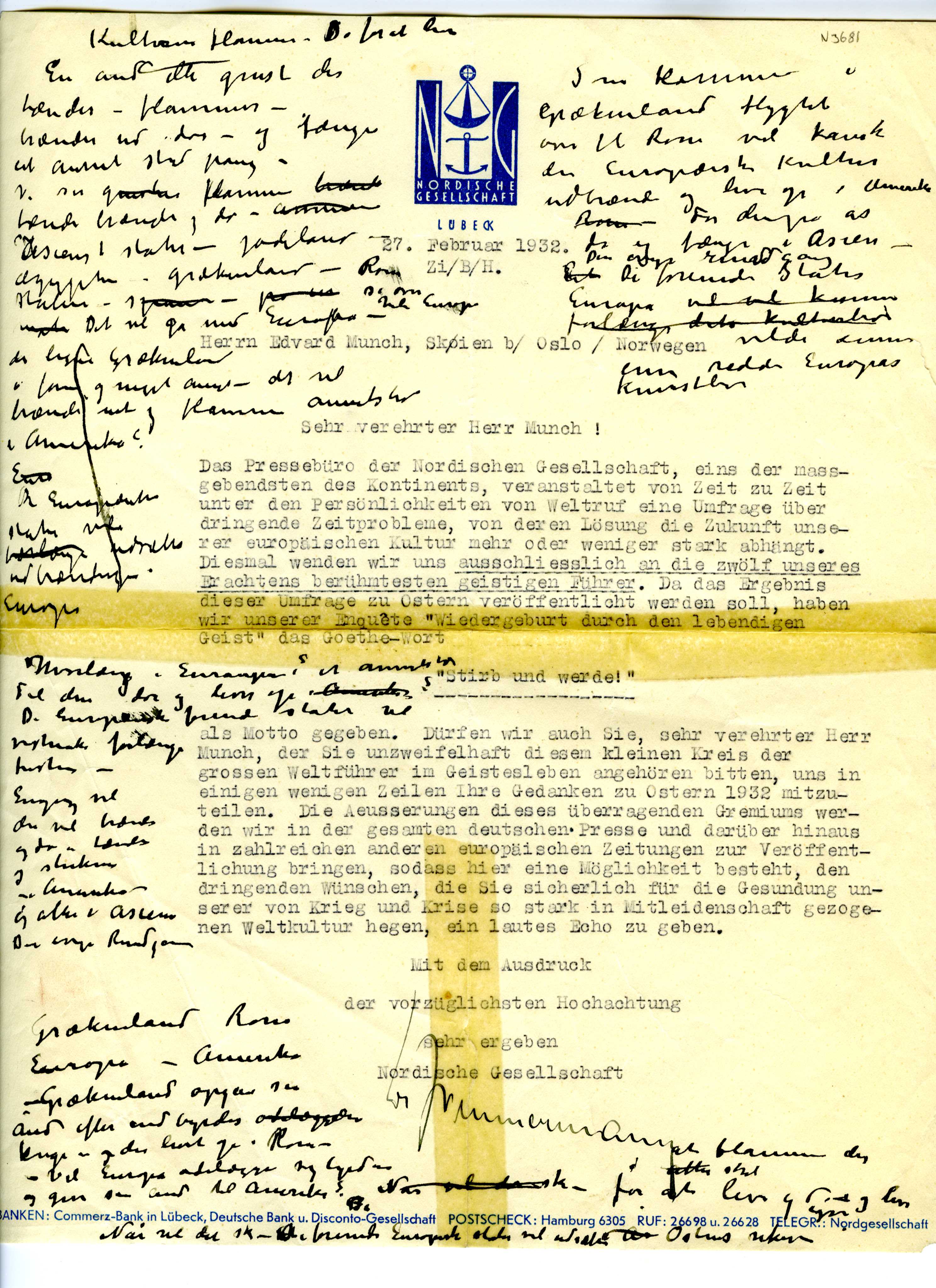 Filologisk kommentar: Munchs notat på brev fra Nordische Gesellschaft, Lübeck (Dr. Zimmermann).