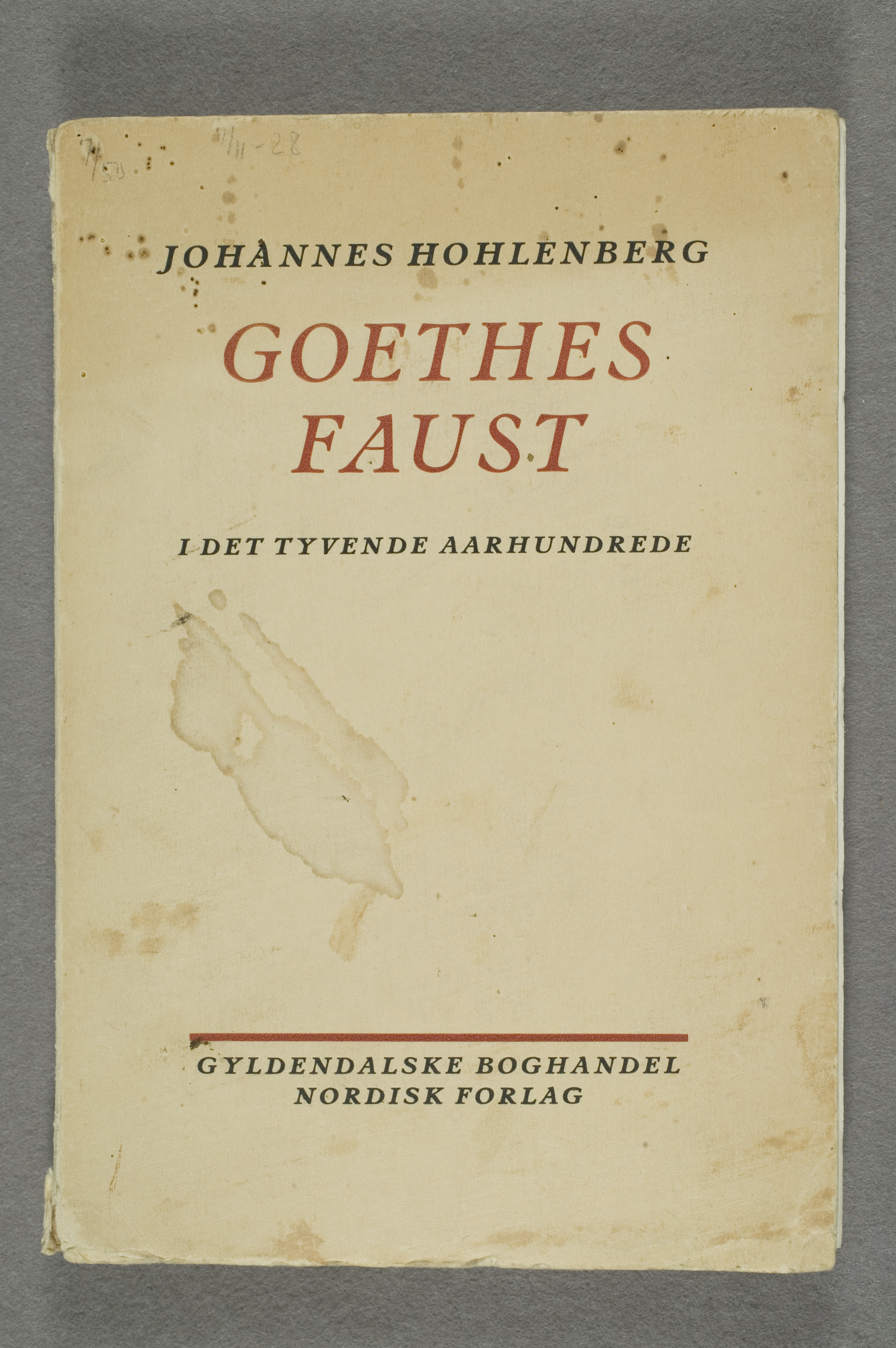 Filologisk kommentar: Påskrift i Johannes Hohlenberg's «Goethes Faust».