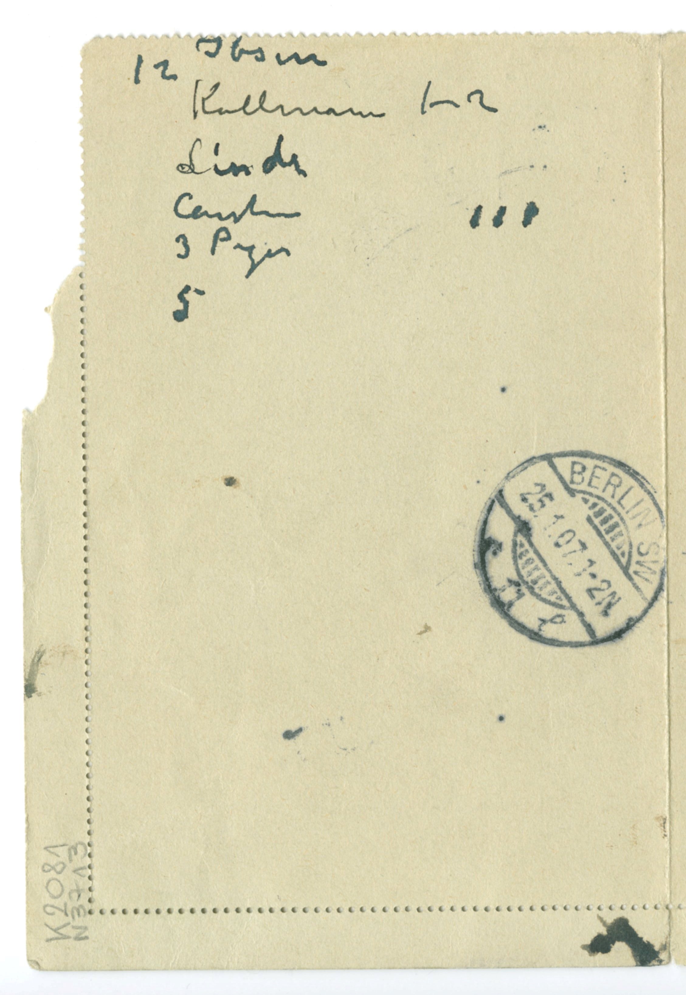 Filologisk kommentar: Samme fysiske objekt som MM K 2081. Brevet er datert 7.1.1907, så bildelisten må være senere.