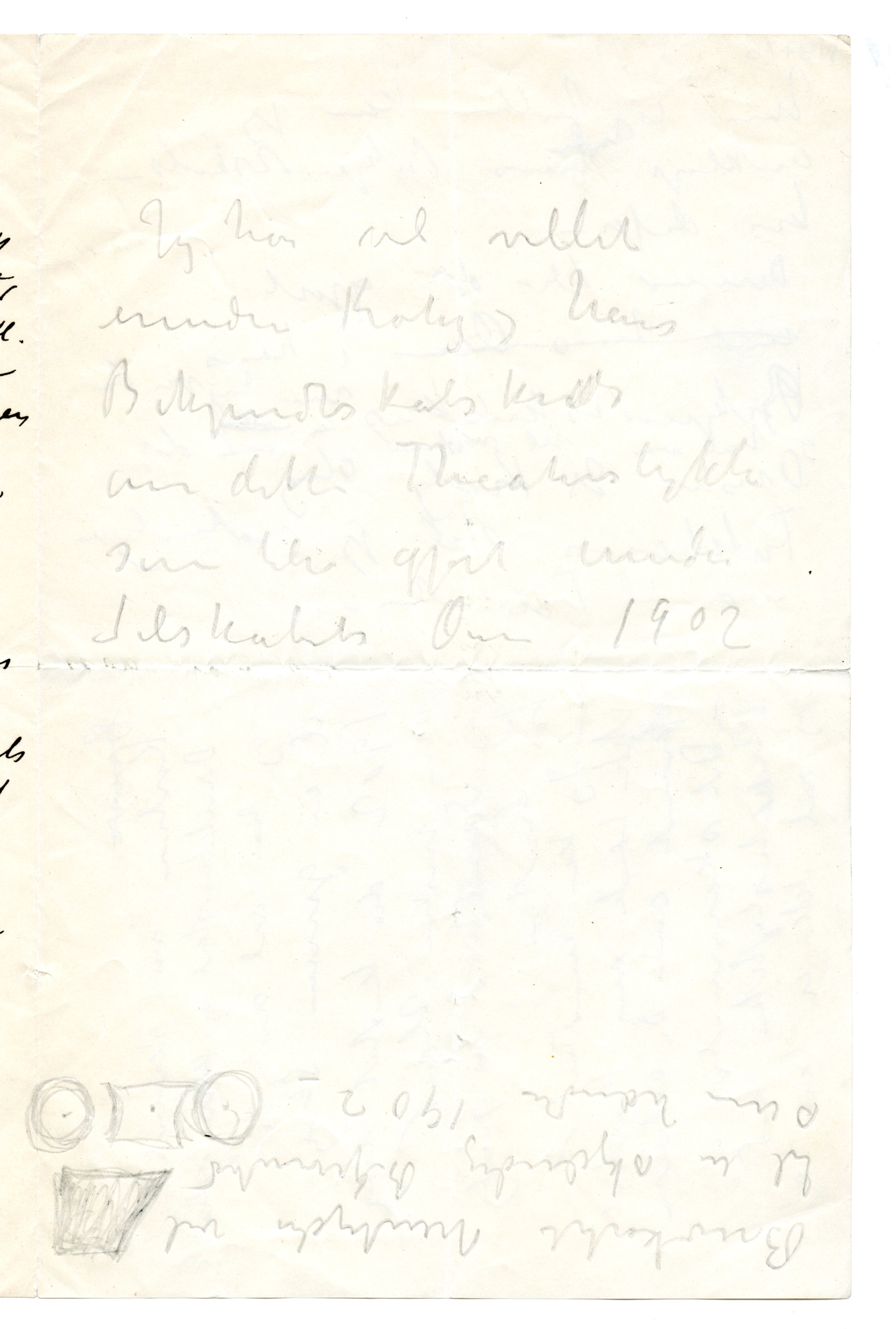 Filologisk kommentar: Samme fysiske objekt som MM K 2829. Brevet er datert 13.7.1908, så brevutkastet må være senere.