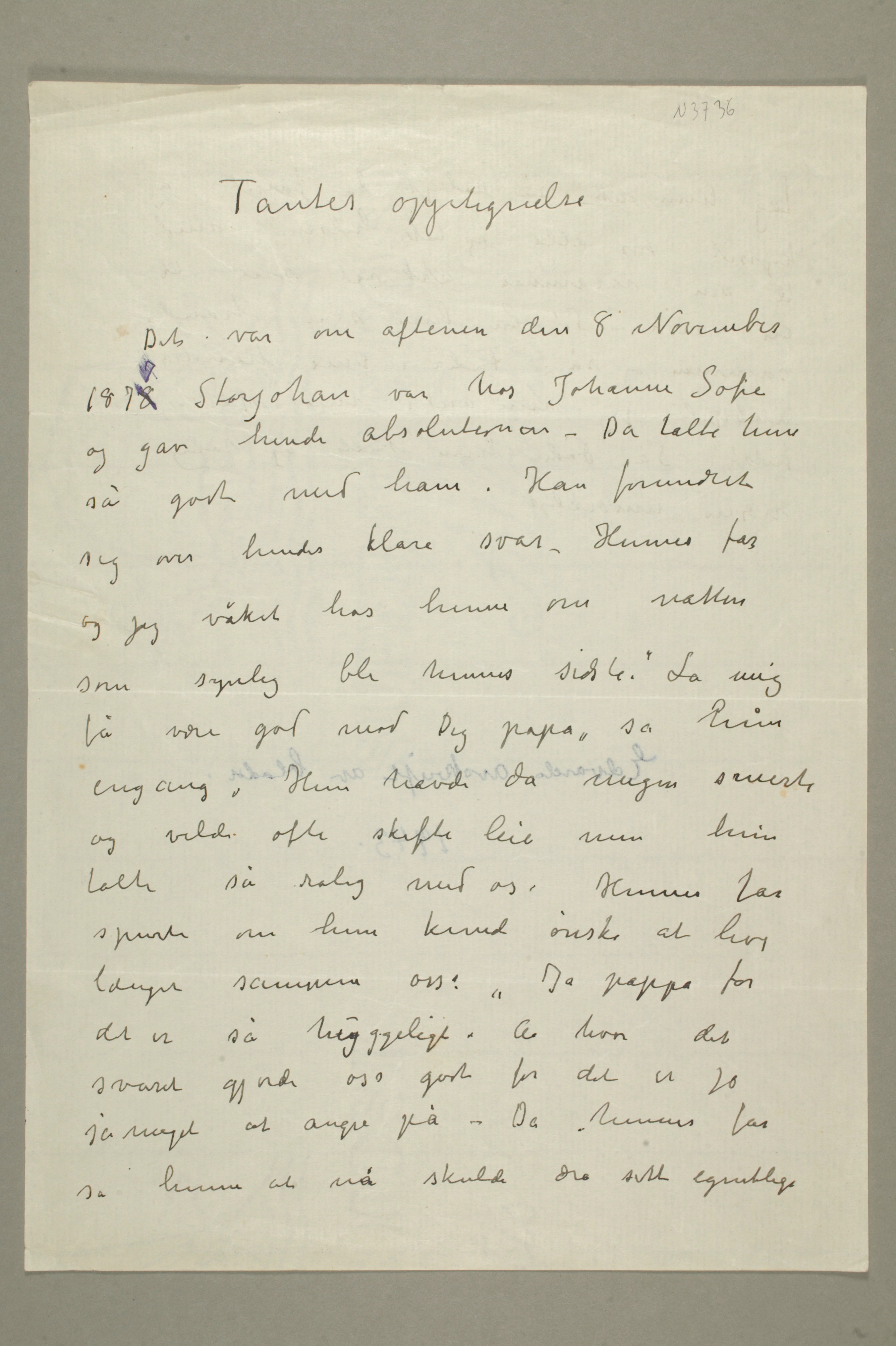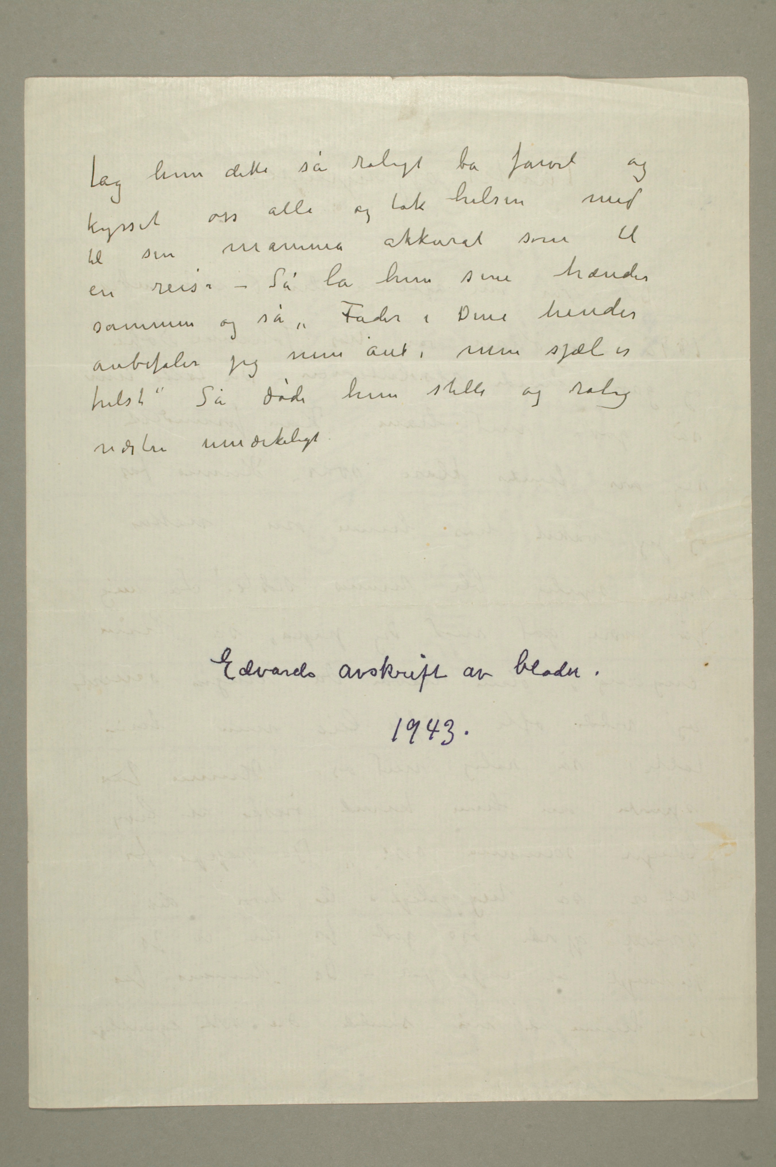 Filologisk kommentar: Dette er ifølge Inger Munch Edvard Munchs avskrift av Karen Bjølstads opptegnelse om Sophie Munchs død slik opptegnelsen ble trykket i bladet til "Kristelig forening for unge kvinner" (KFUK) i krigsårene.