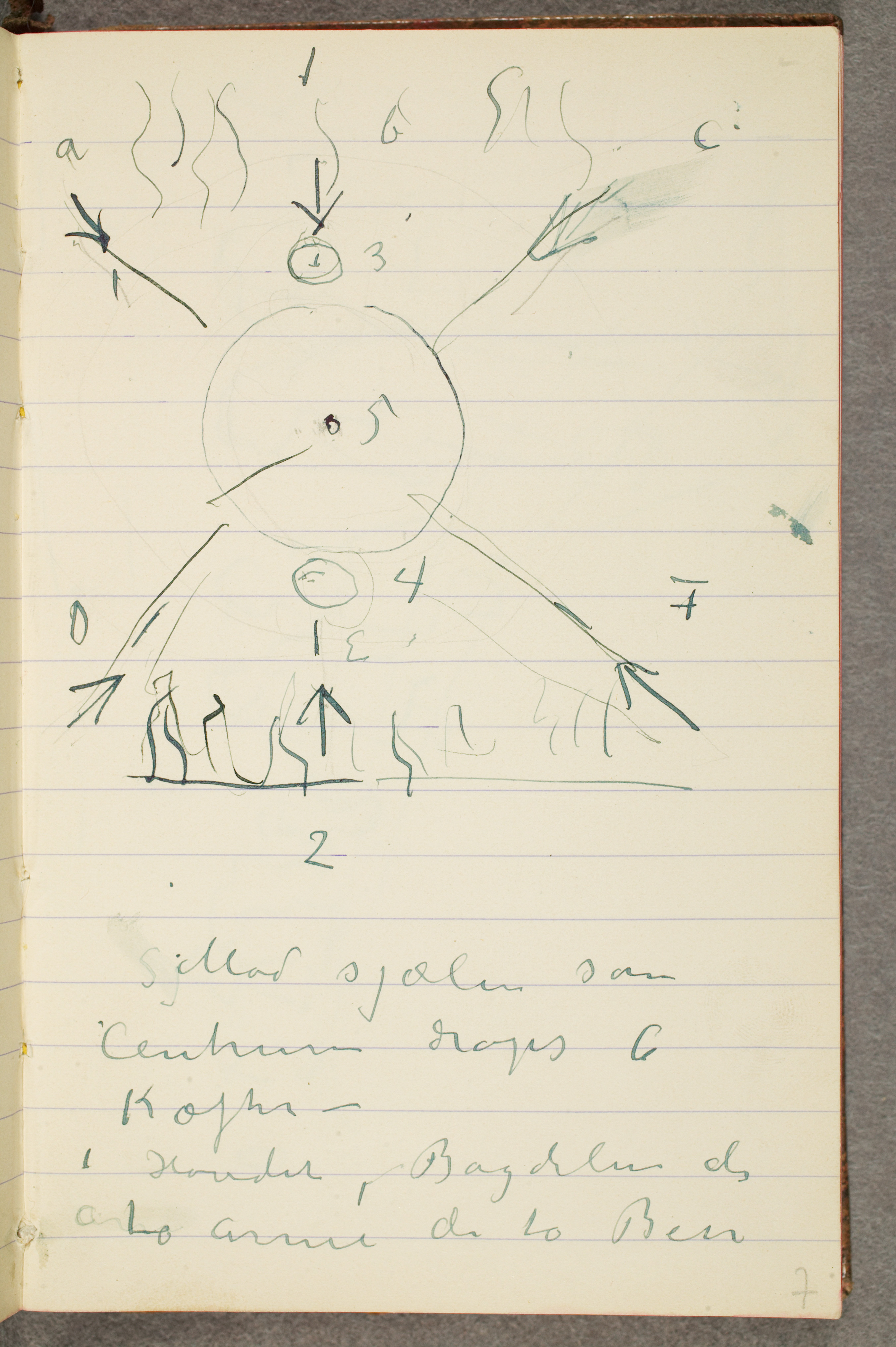 På skissebokpapir. Mål 156×100 mm (h×b)