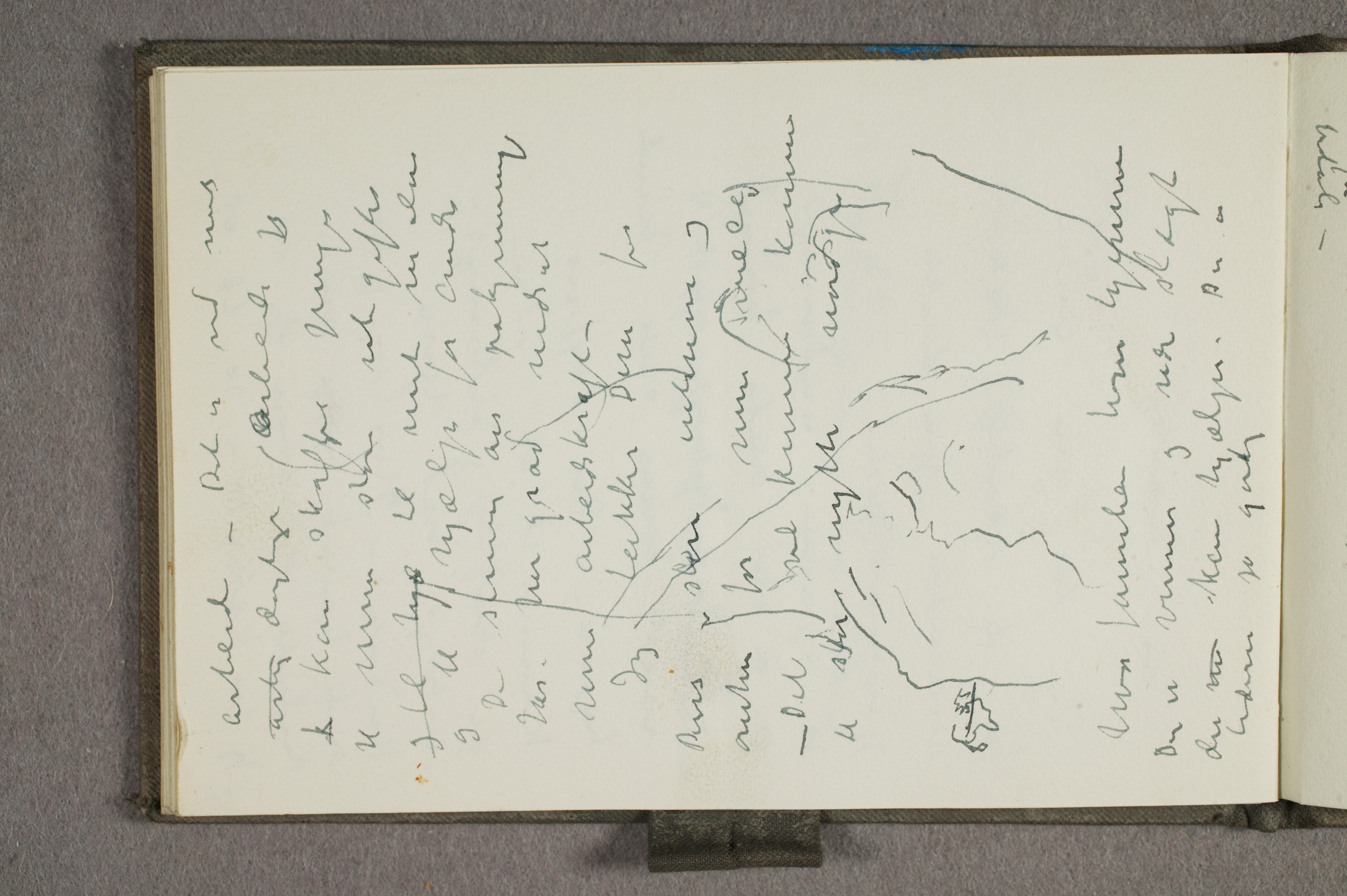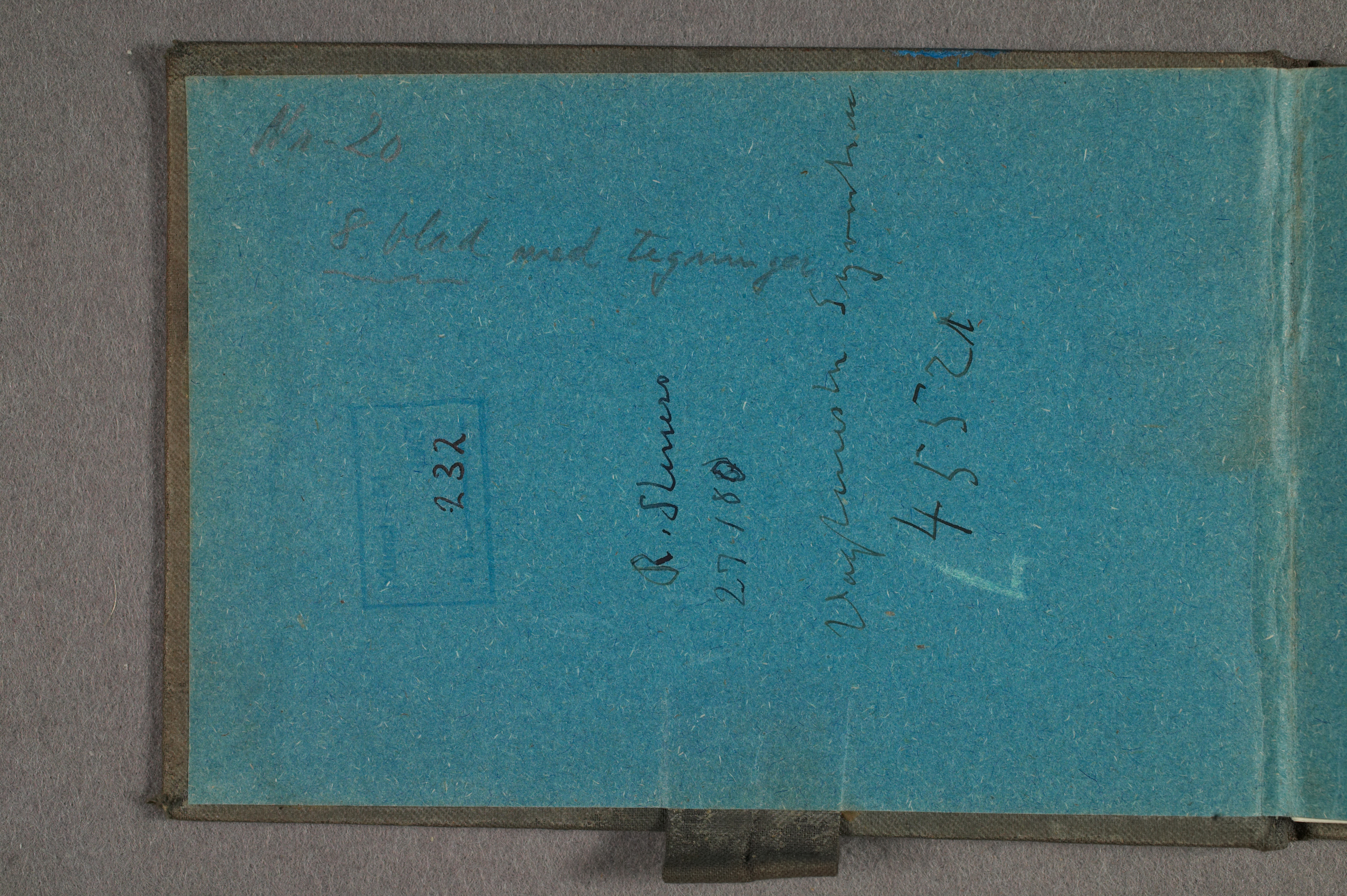 På skissebokpapir. Mål 105×157 mm (h×b)