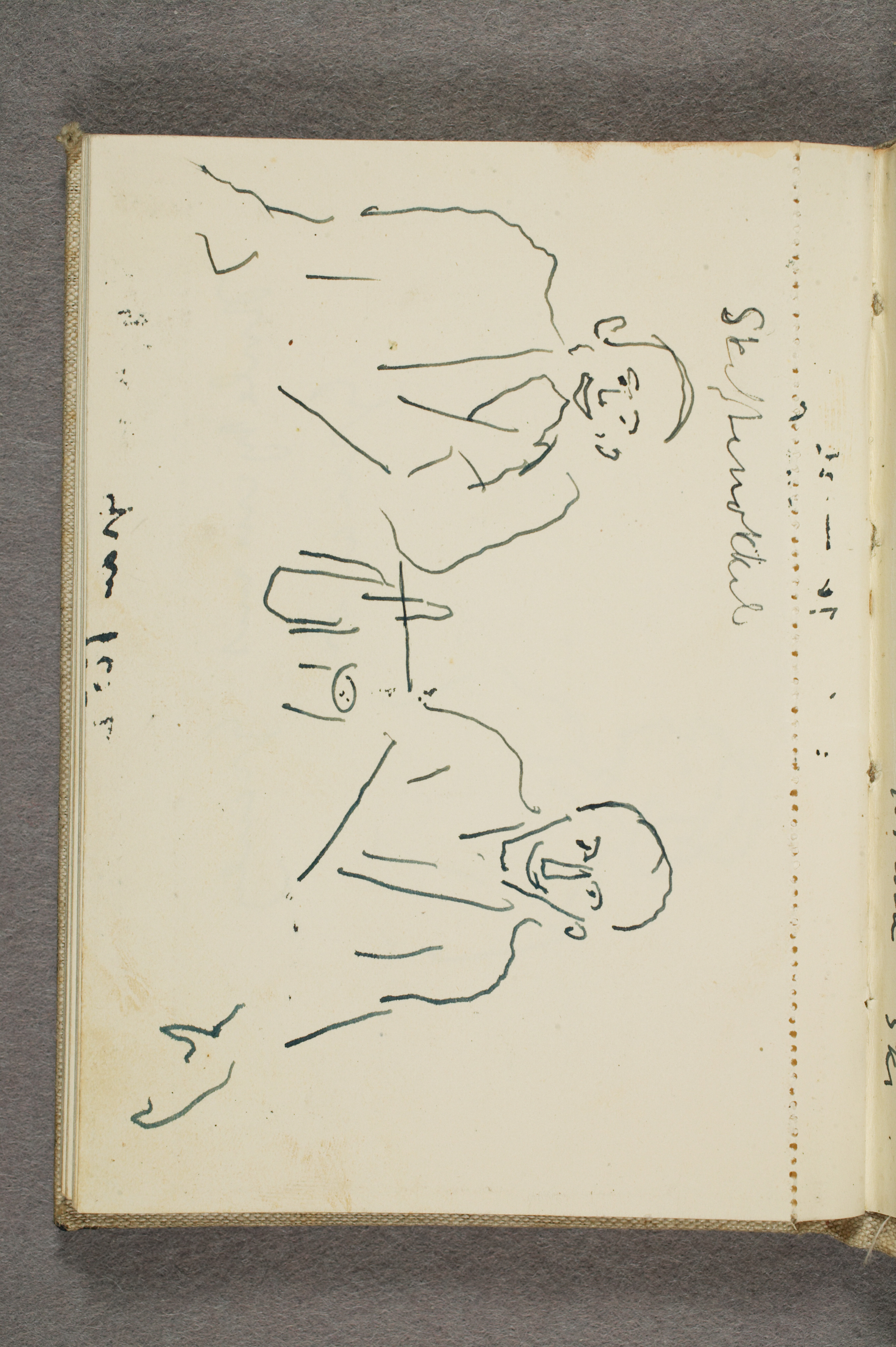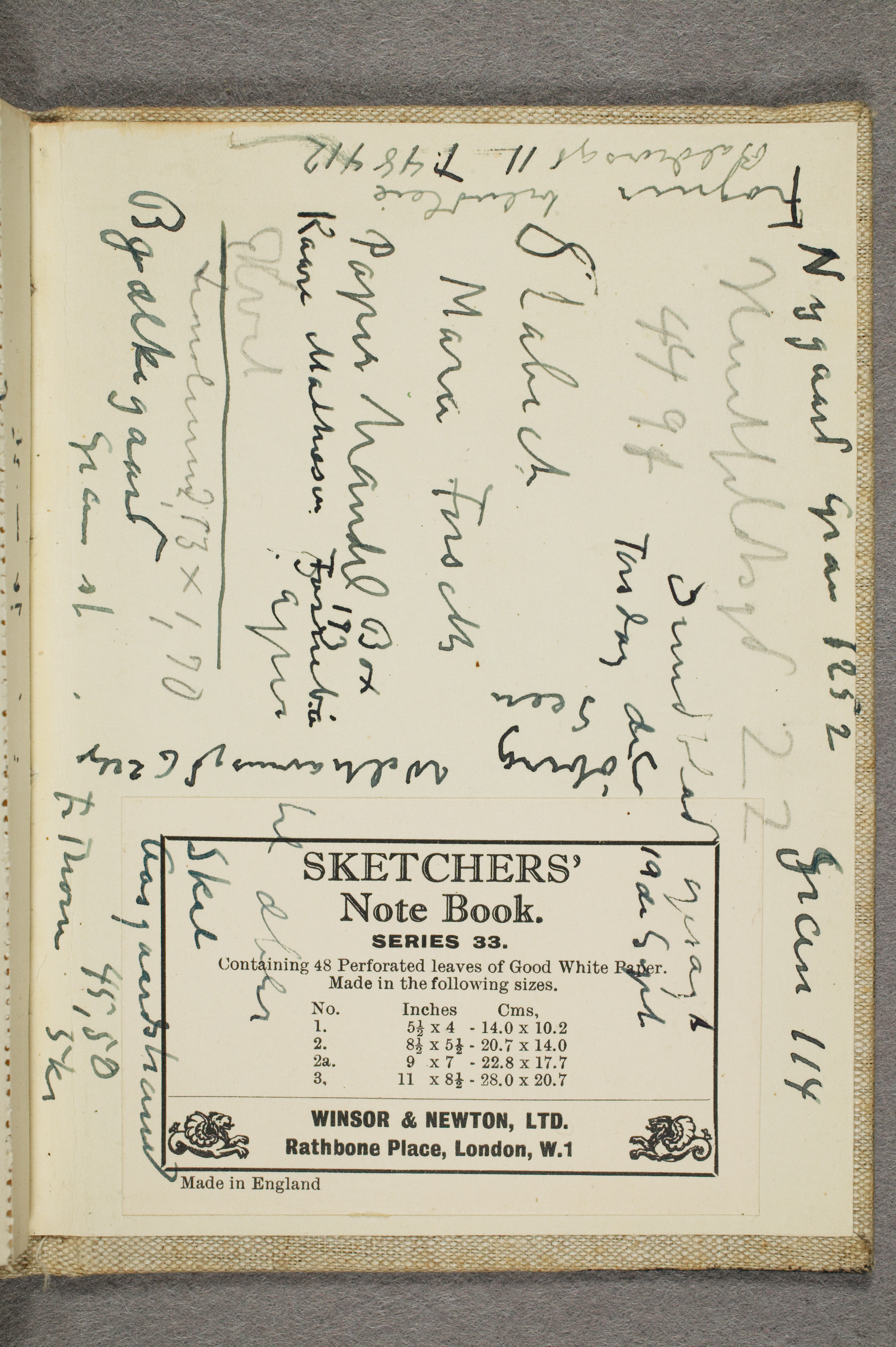 På skissebokpapir. Mål 135×92 mm (h×b)