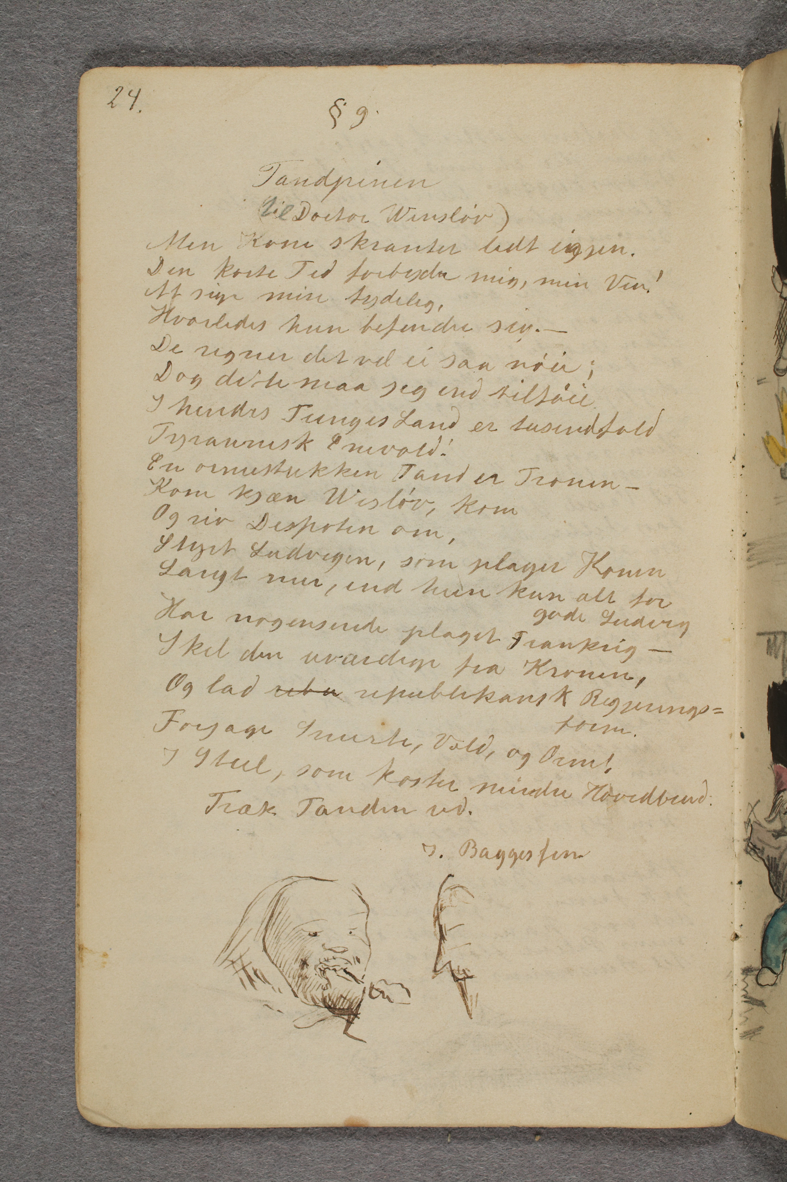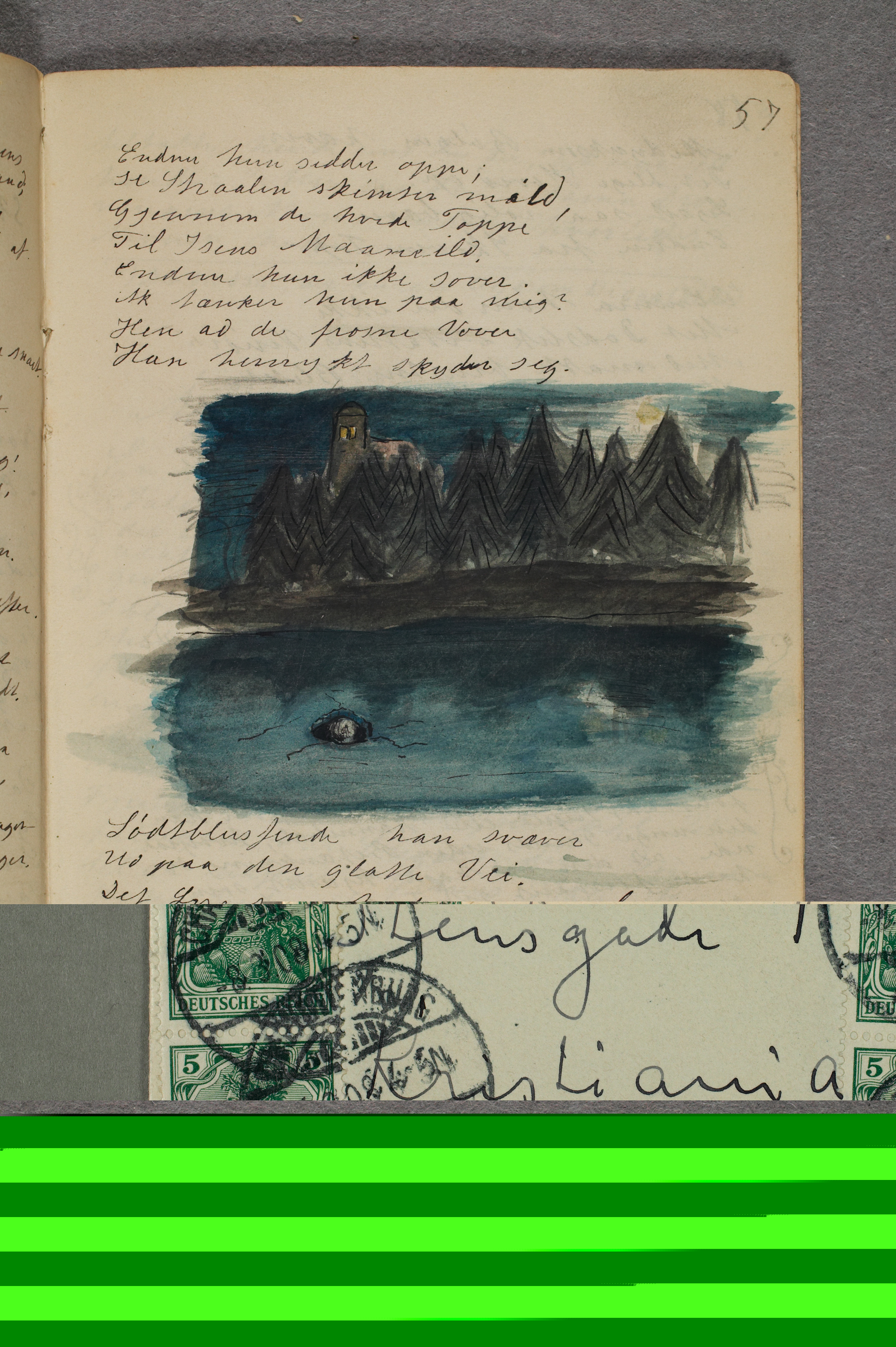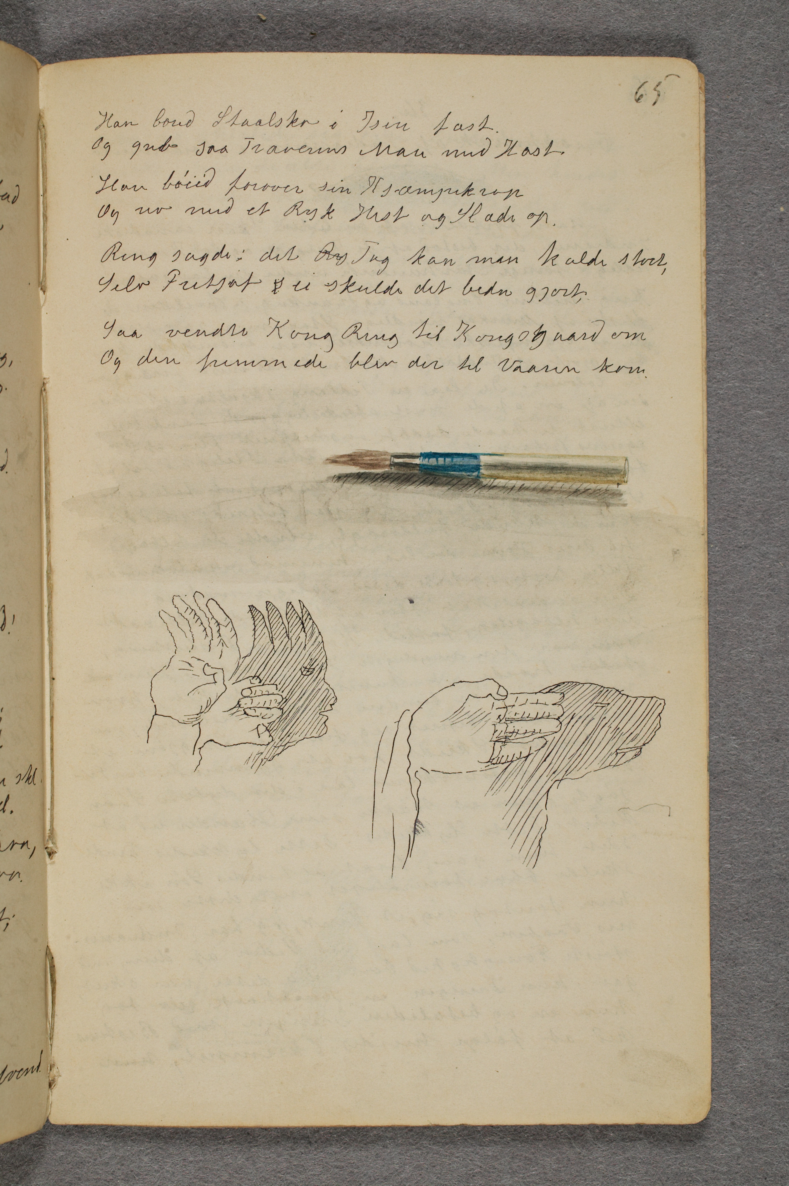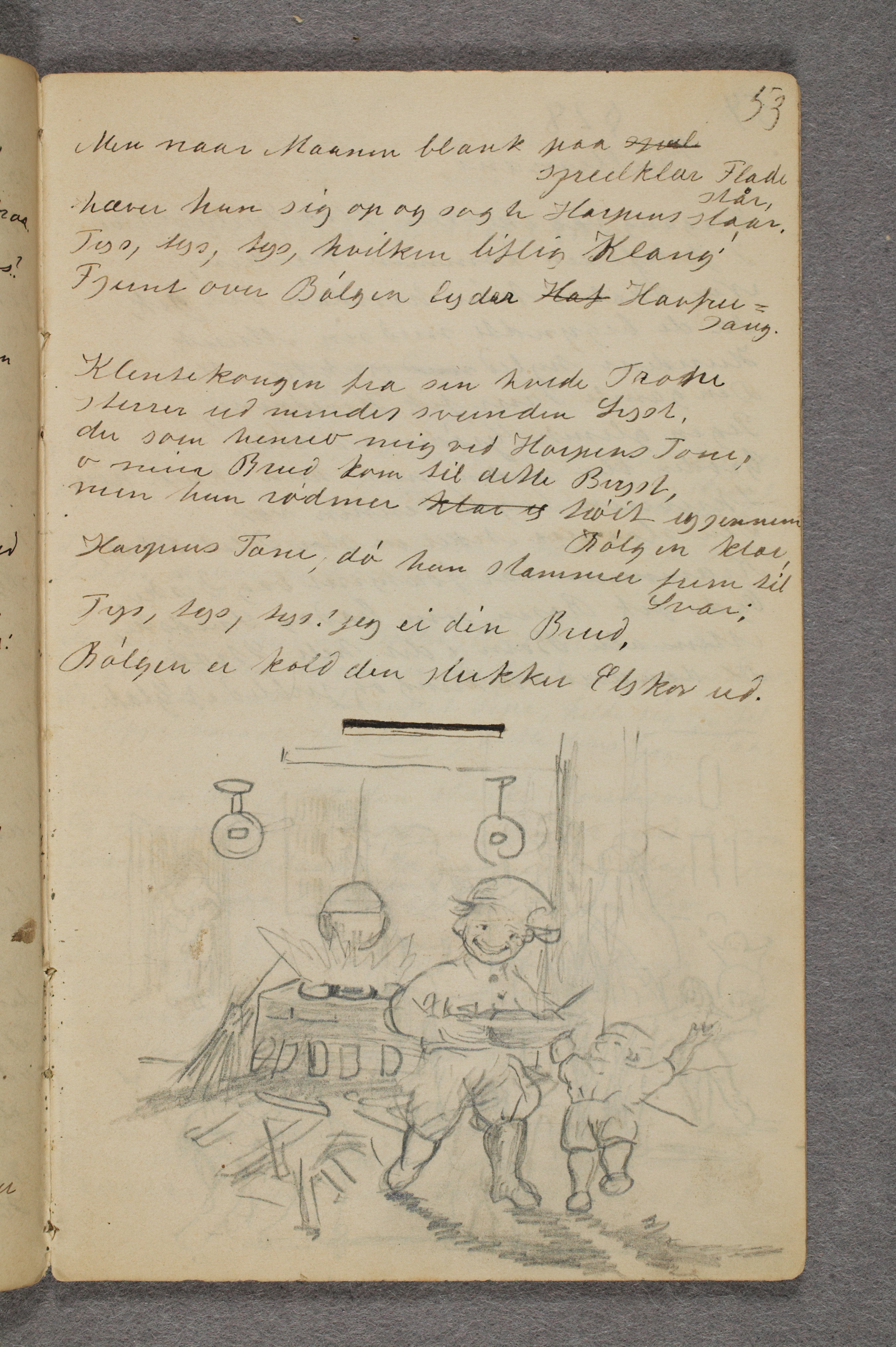 På skissebokpapir. Mål 167×105 mm (h×b)