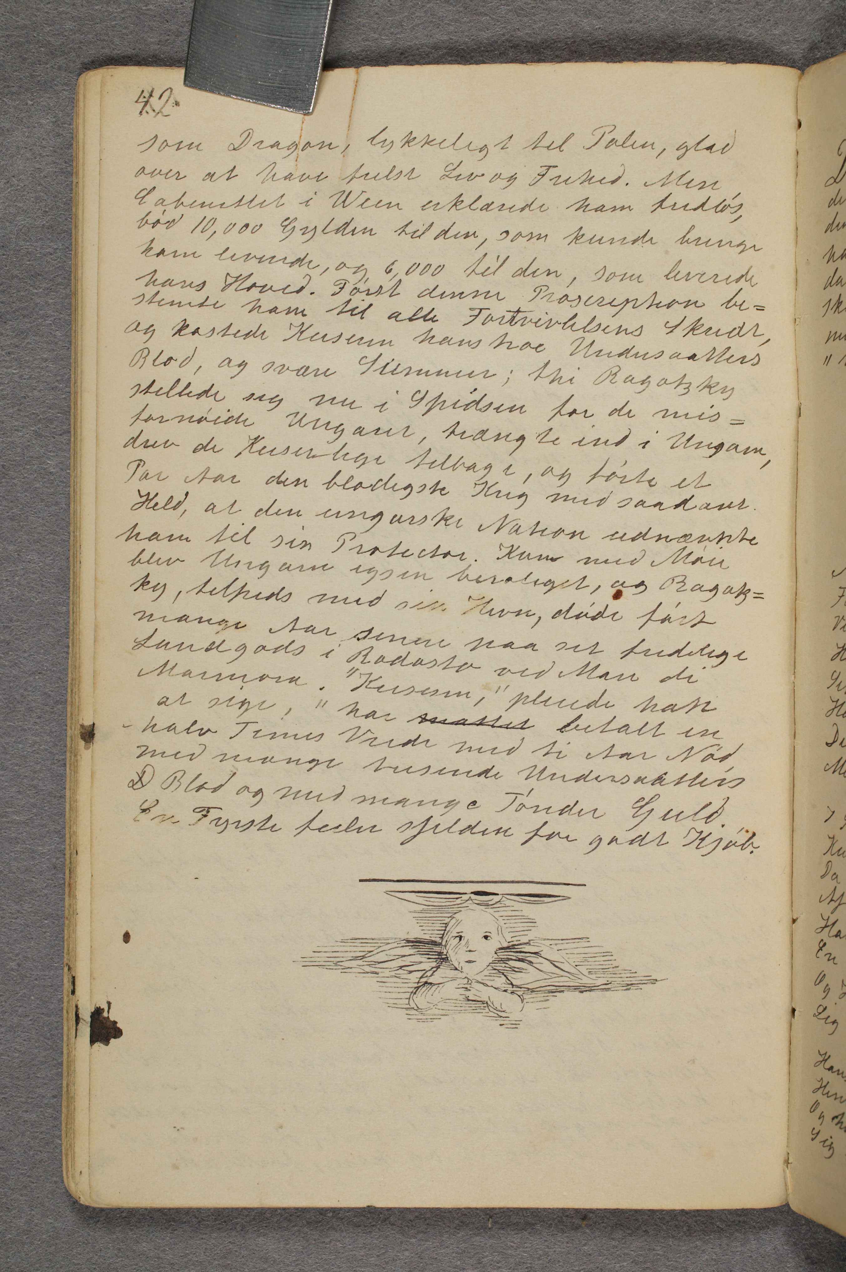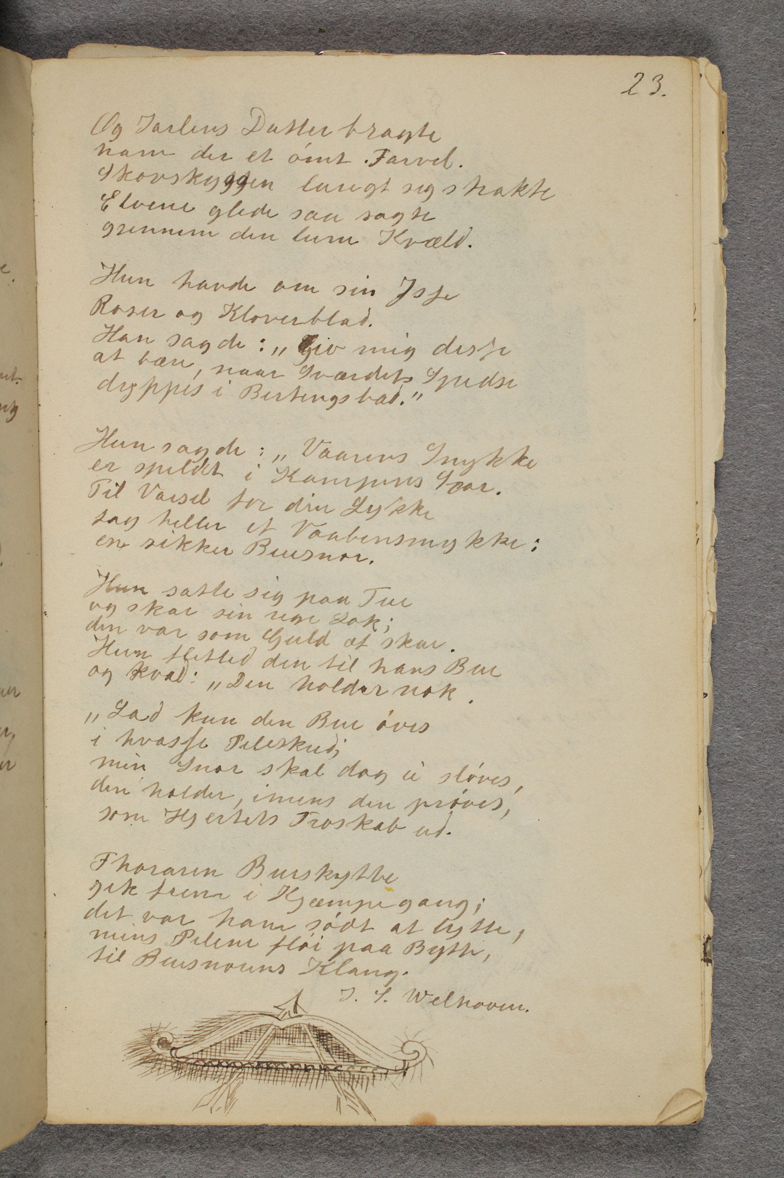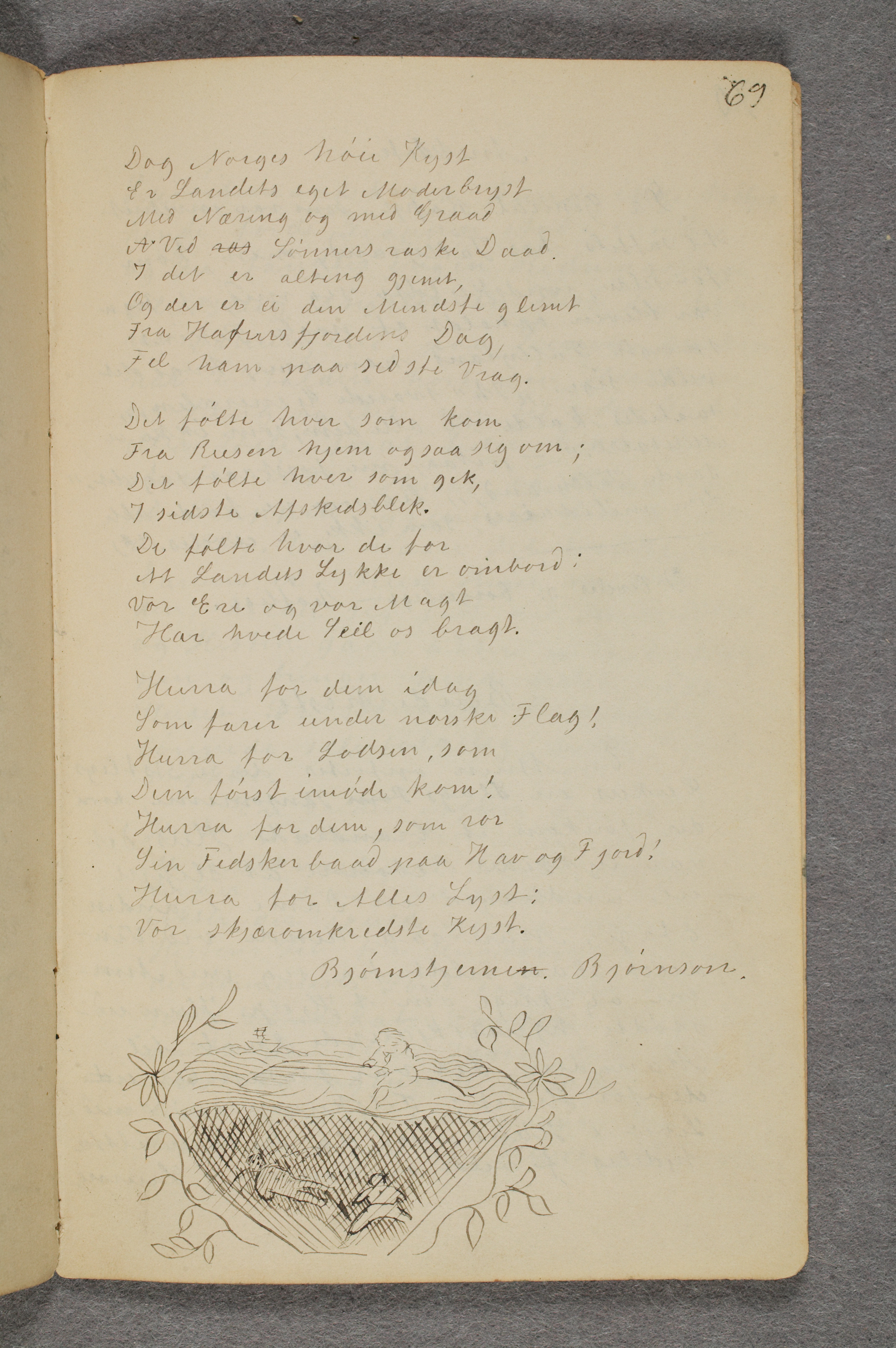 På skissebokpapir. Mål 167×105 mm (h×b)