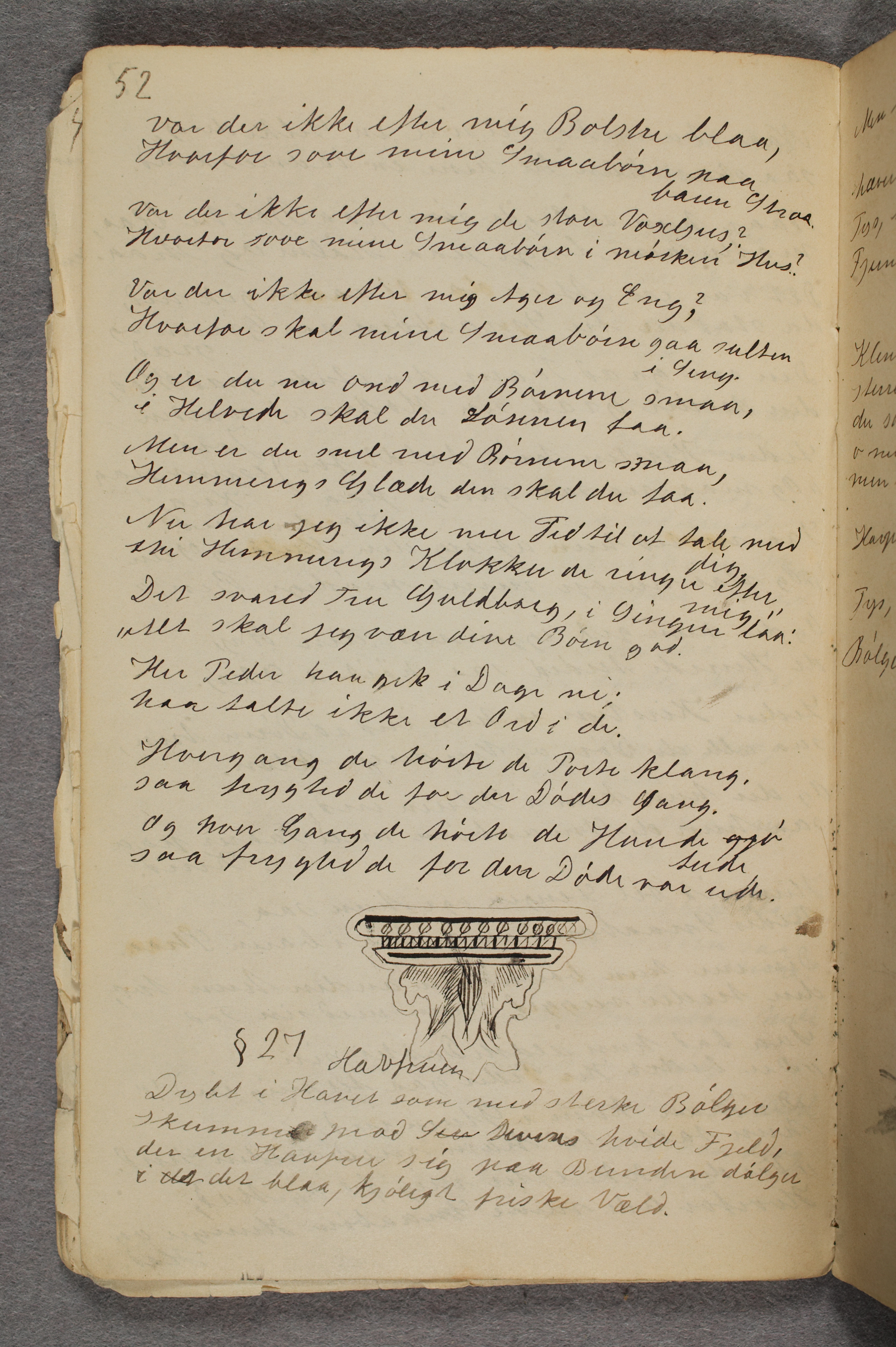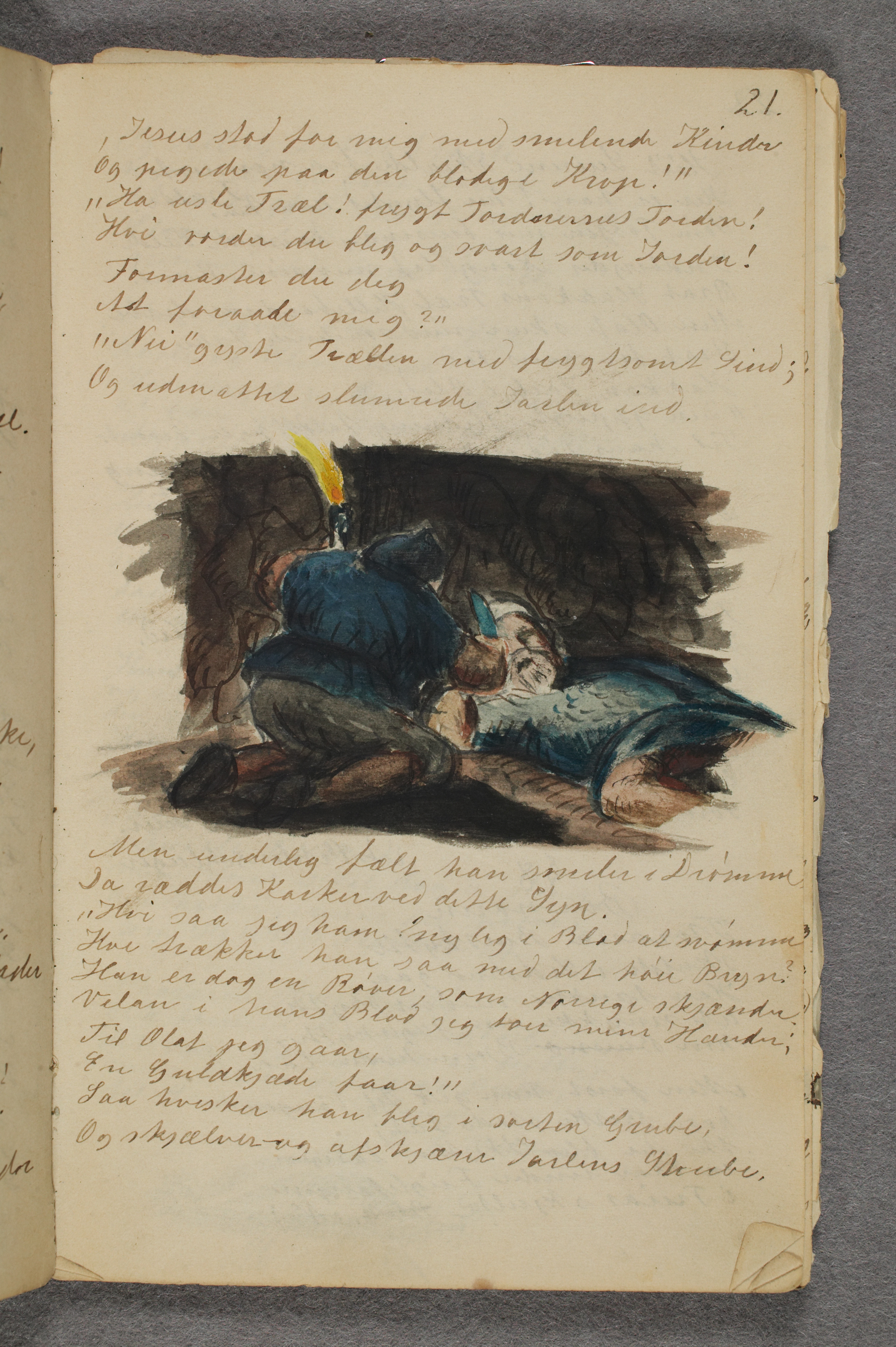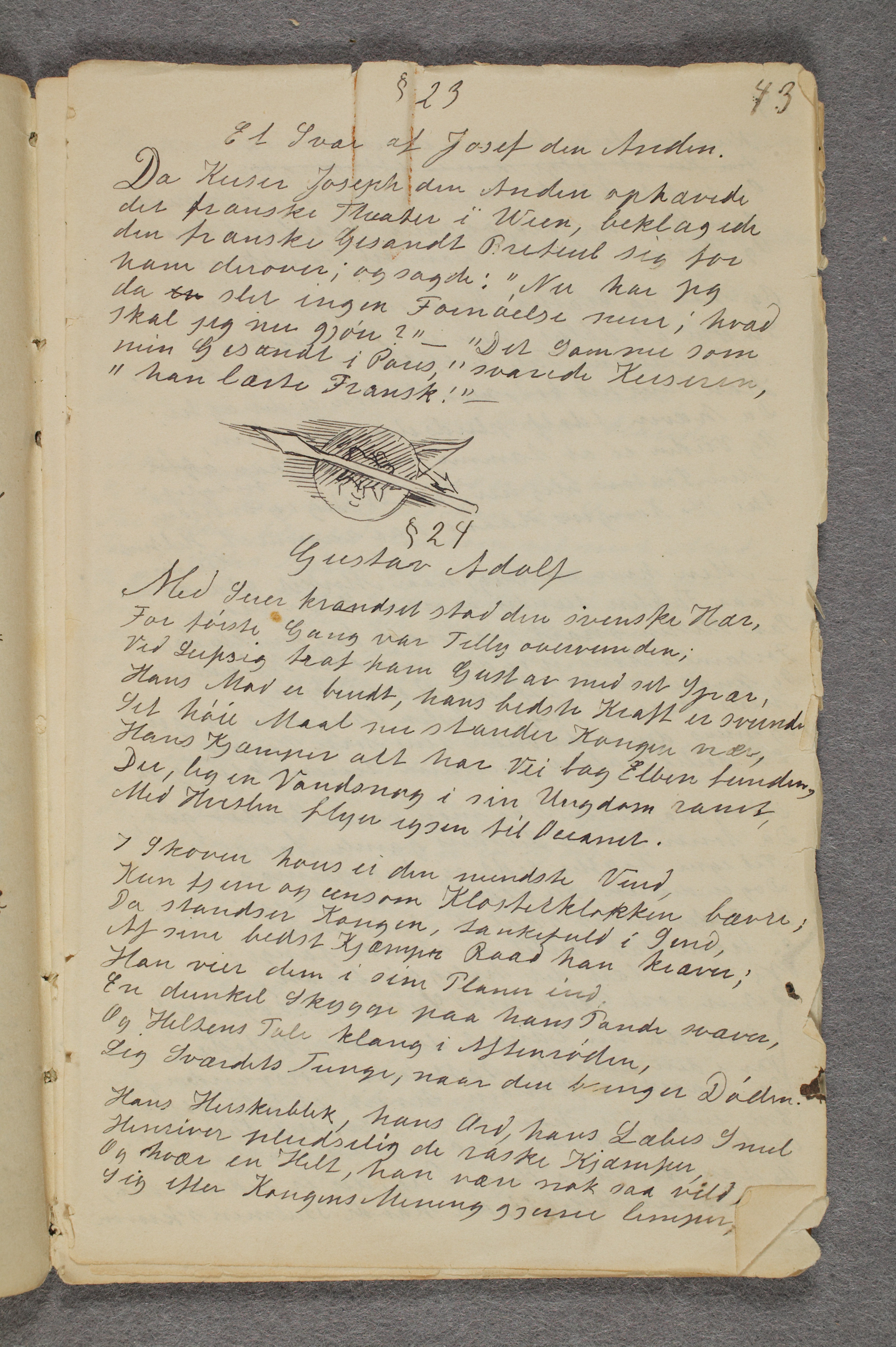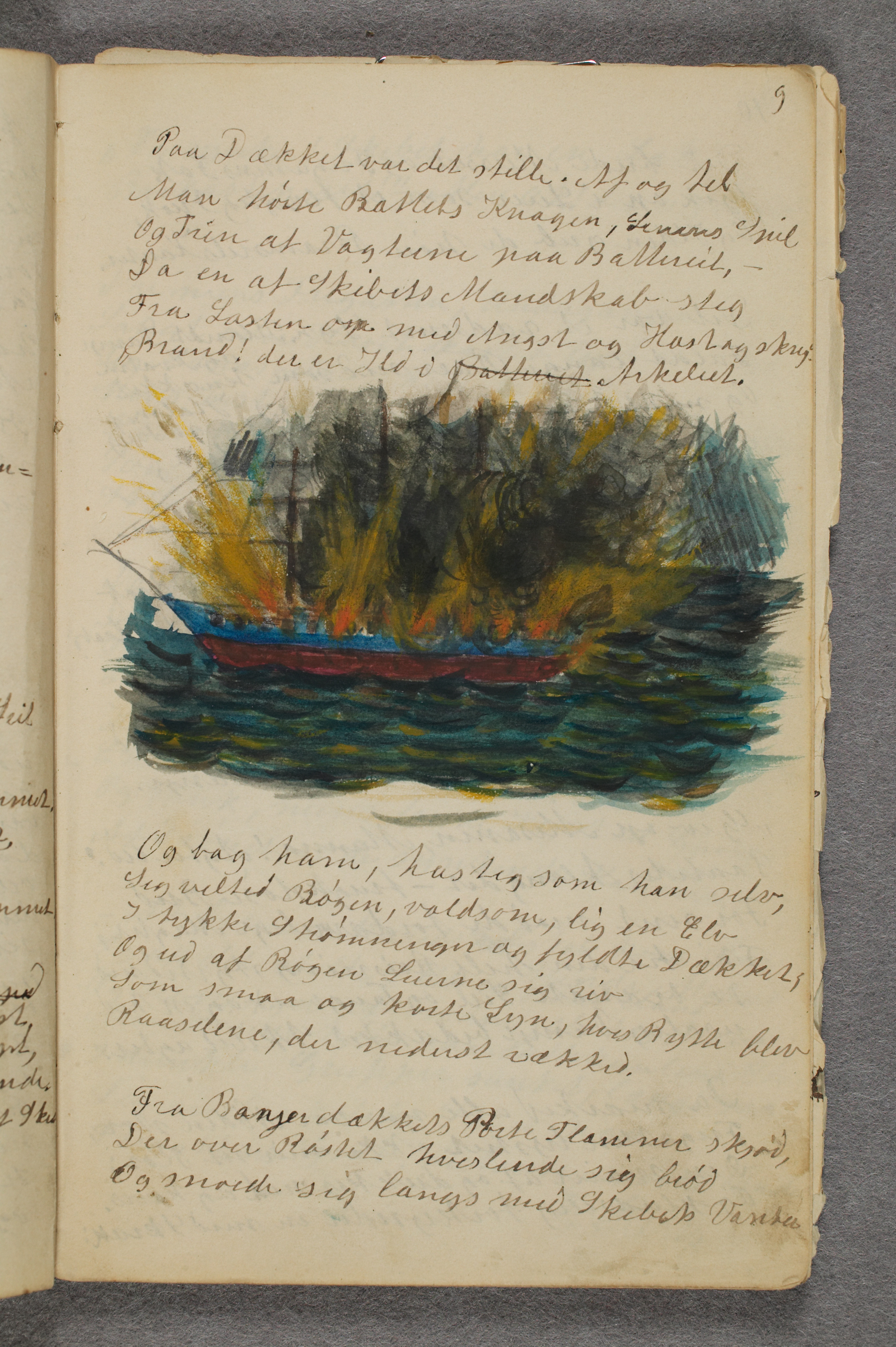På skissebokpapir. Mål 167×105 mm (h×b)