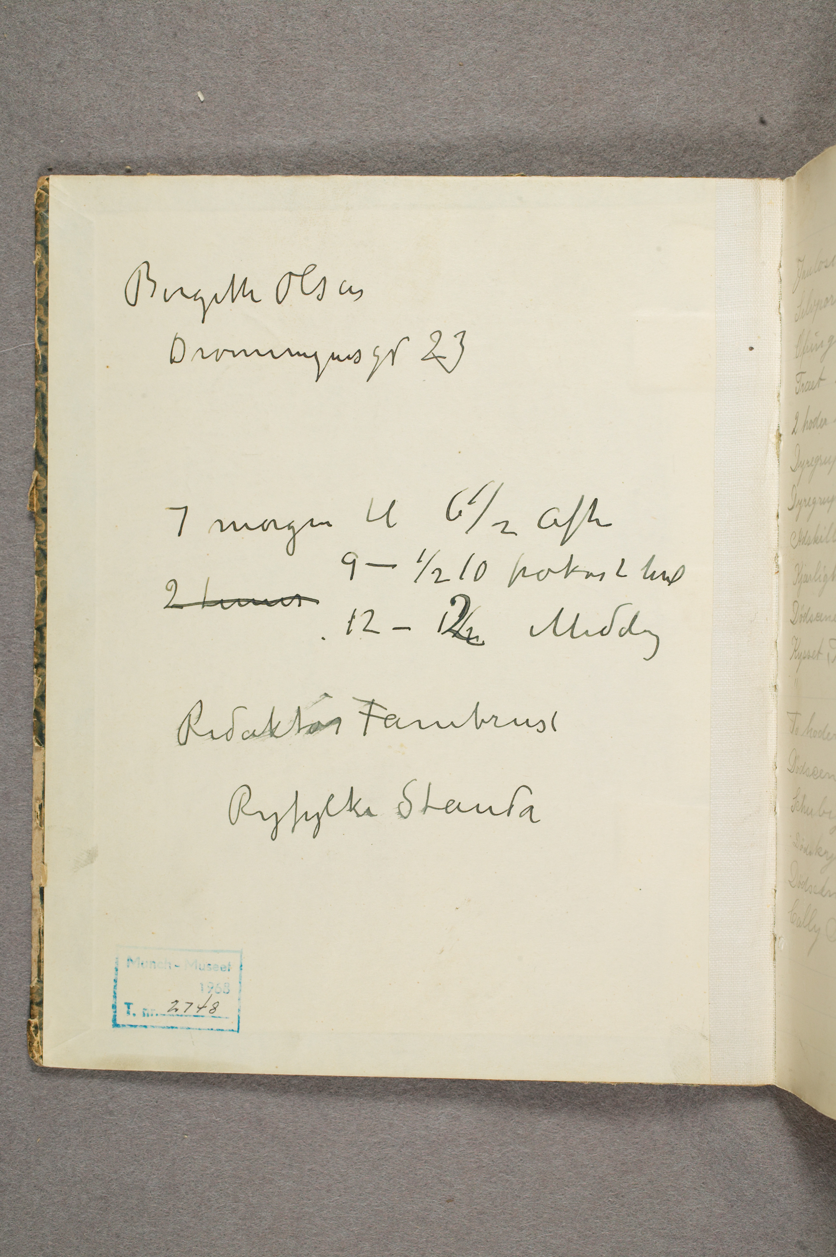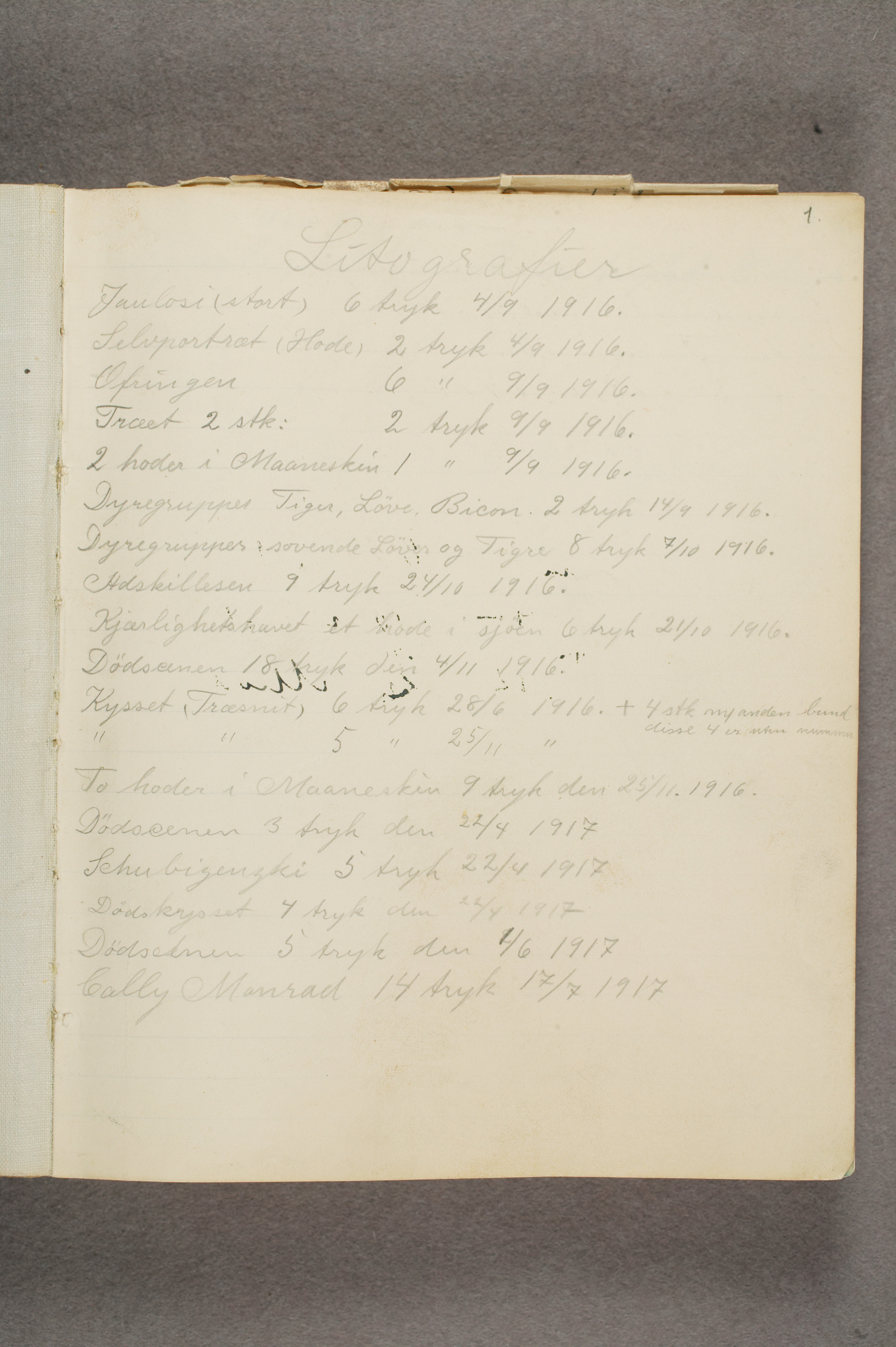 Birgit Prestøe, Toralv Fanebust, Uidentifisert kvinne, Uidentifisert kvinne, Hans Posse, Charles Darwin, Albert Kollmann, Emanuel Goldstein, Henrik Sørensen, Platon, Søren Kierkegaard, Platon, Christopher Brinchmann, Waldemar Christofer Brøgger, Friedrich Nietzsche, Max Liebermann, Max Liebermann, Walter Rathenau, Albert Kollmann, Albert Kollmann, Sofokles, Vincent van Gogh, Vincent van Gogh, August Macke, Magnus Poulsson, Olaf Schou, Bjarne Lysholm, , Adams Express, Oslo Sparebank, Christiania Sparebank, Jacobsons klinik, Jacobsons klinik, Blomqvist Kunsthandel