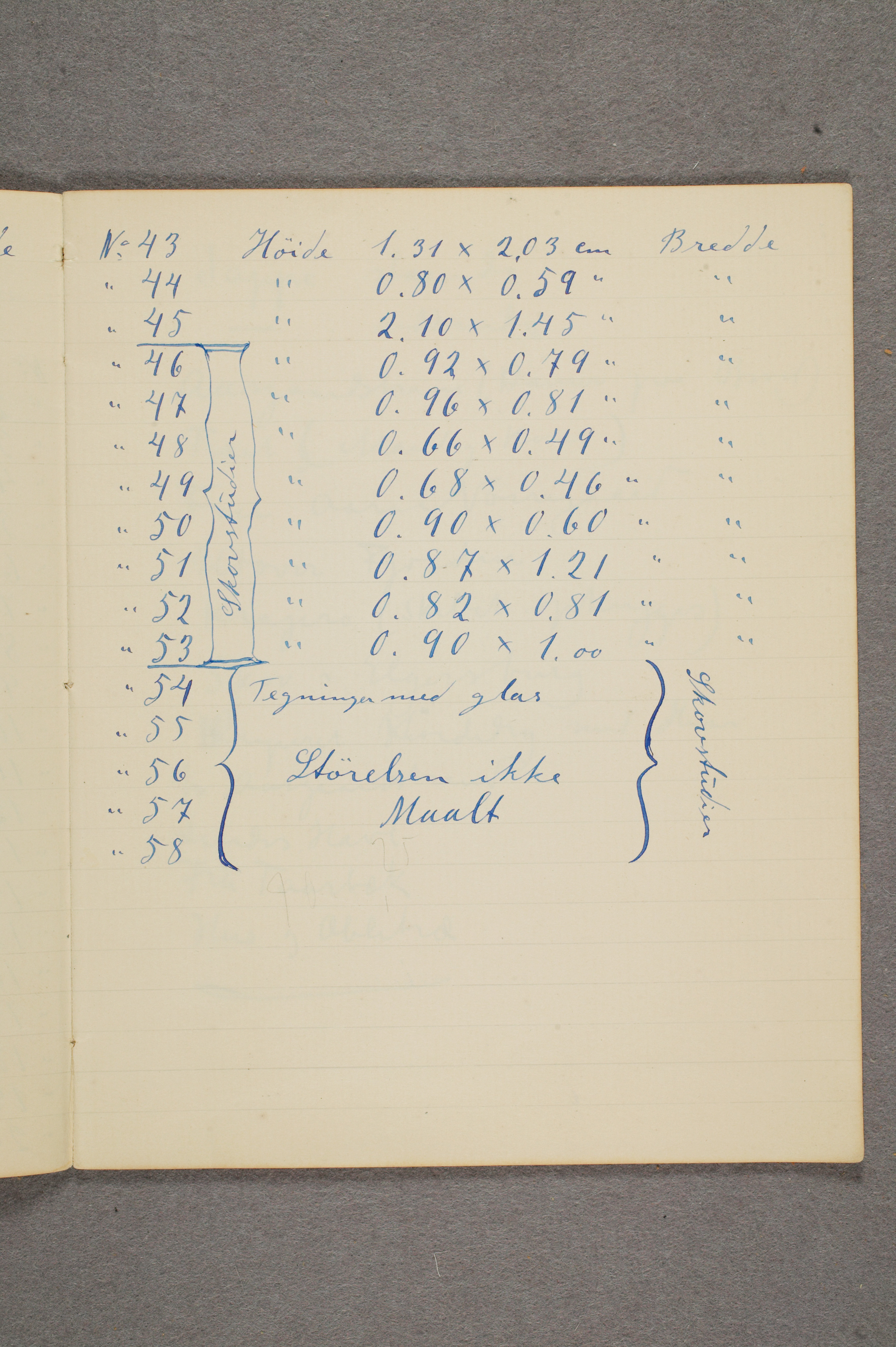 store strykninger gjort med strek, kryss el.l.