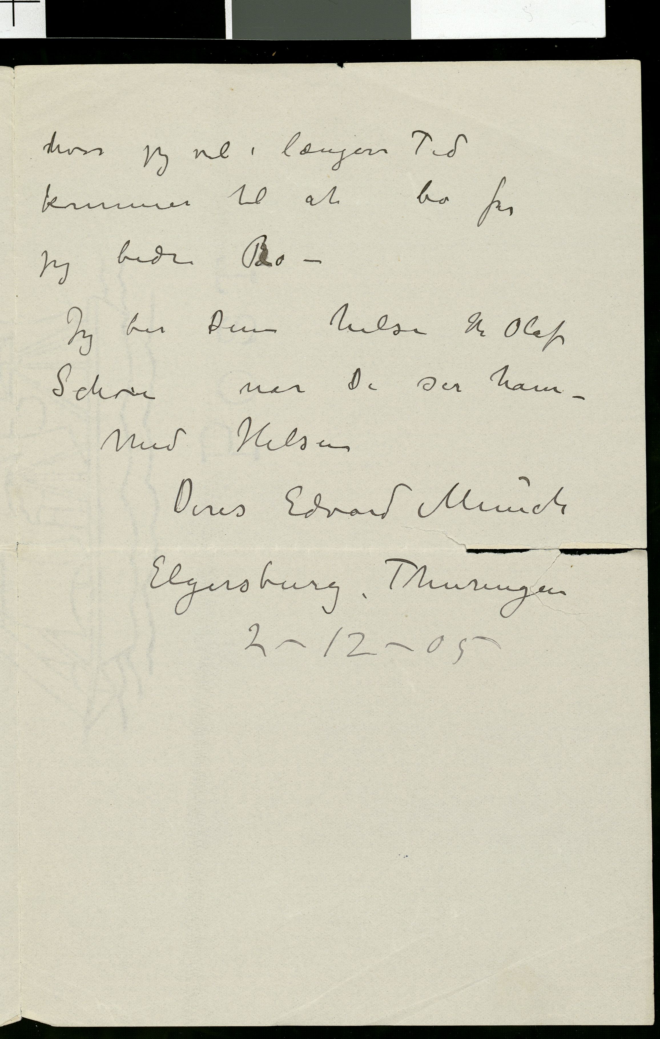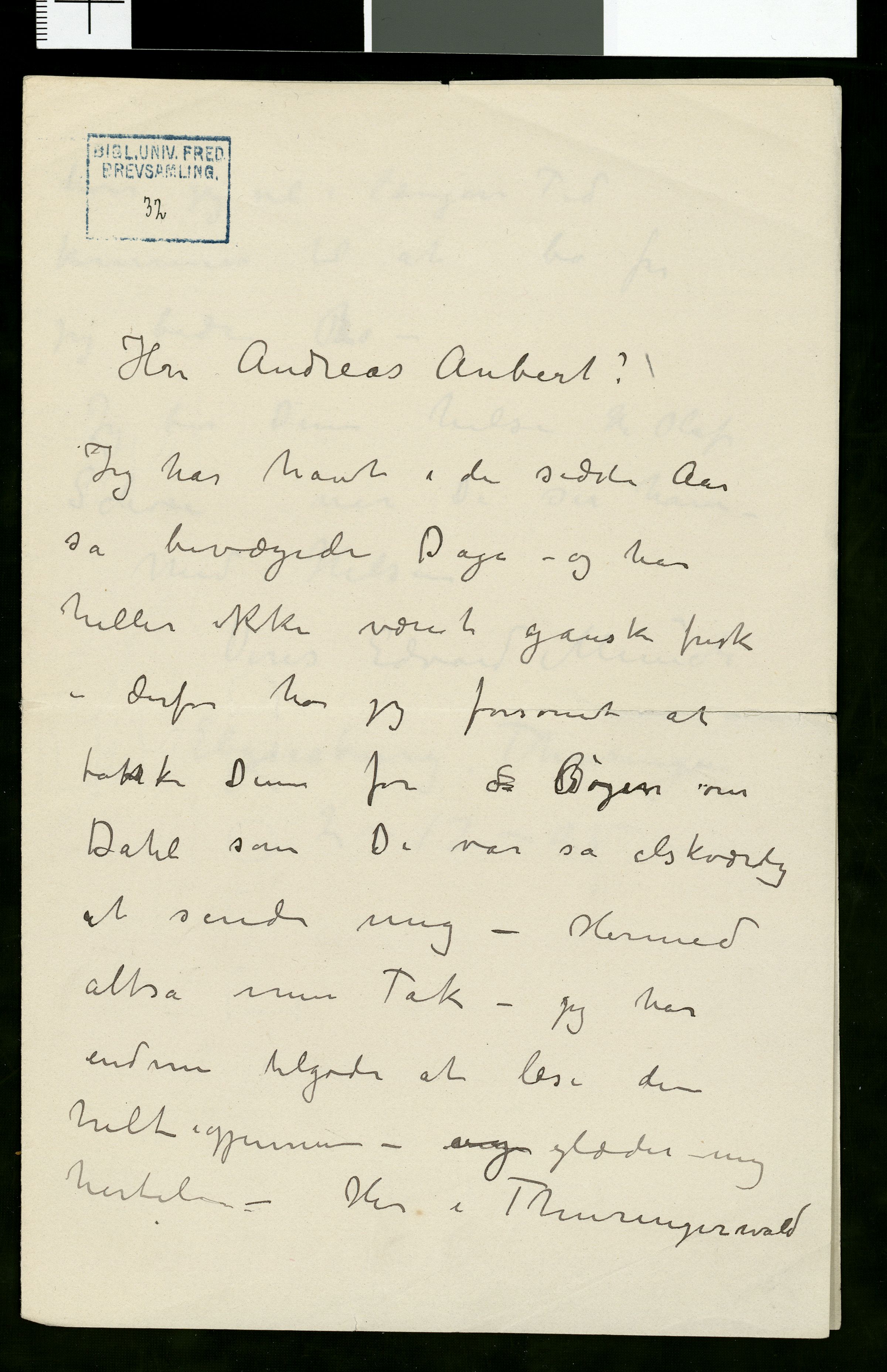 Brevs. 32 (PN 189), Nasjonalbiblioteket. Datert 2.12.1905. Brev til Andreas Aubert
