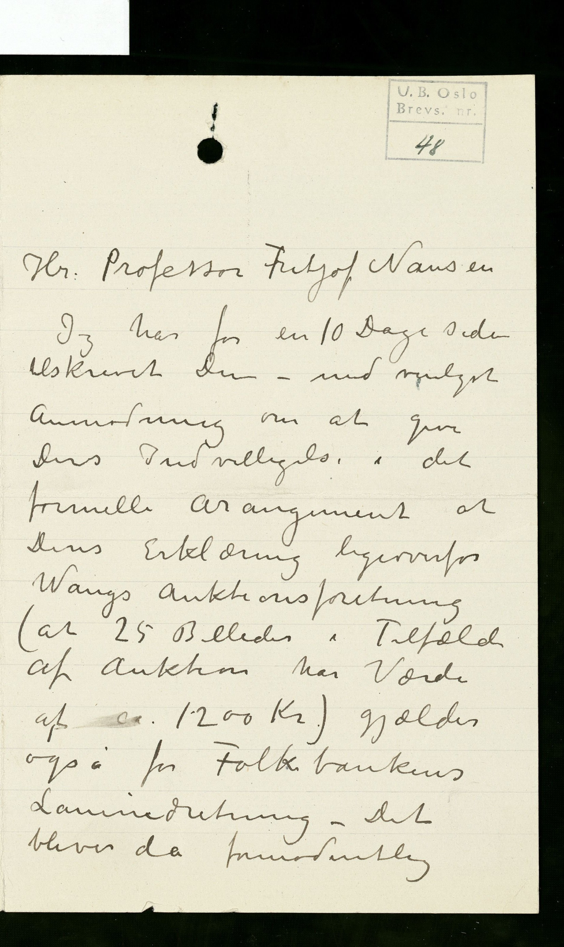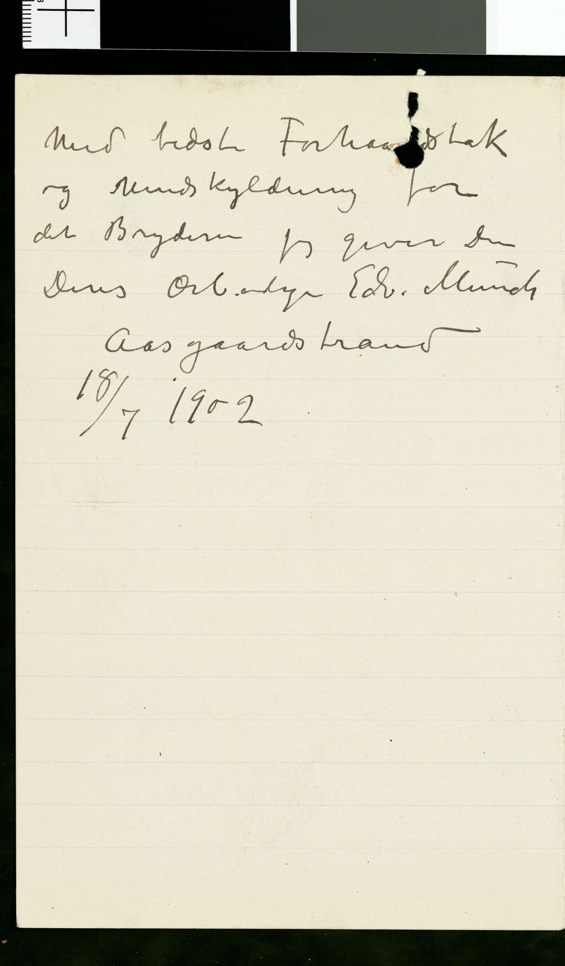 Brevs. 48 (PN 191), Nasjonalbiblioteket. Datert 18.7.1902. Brev til Fridtjof Nansen