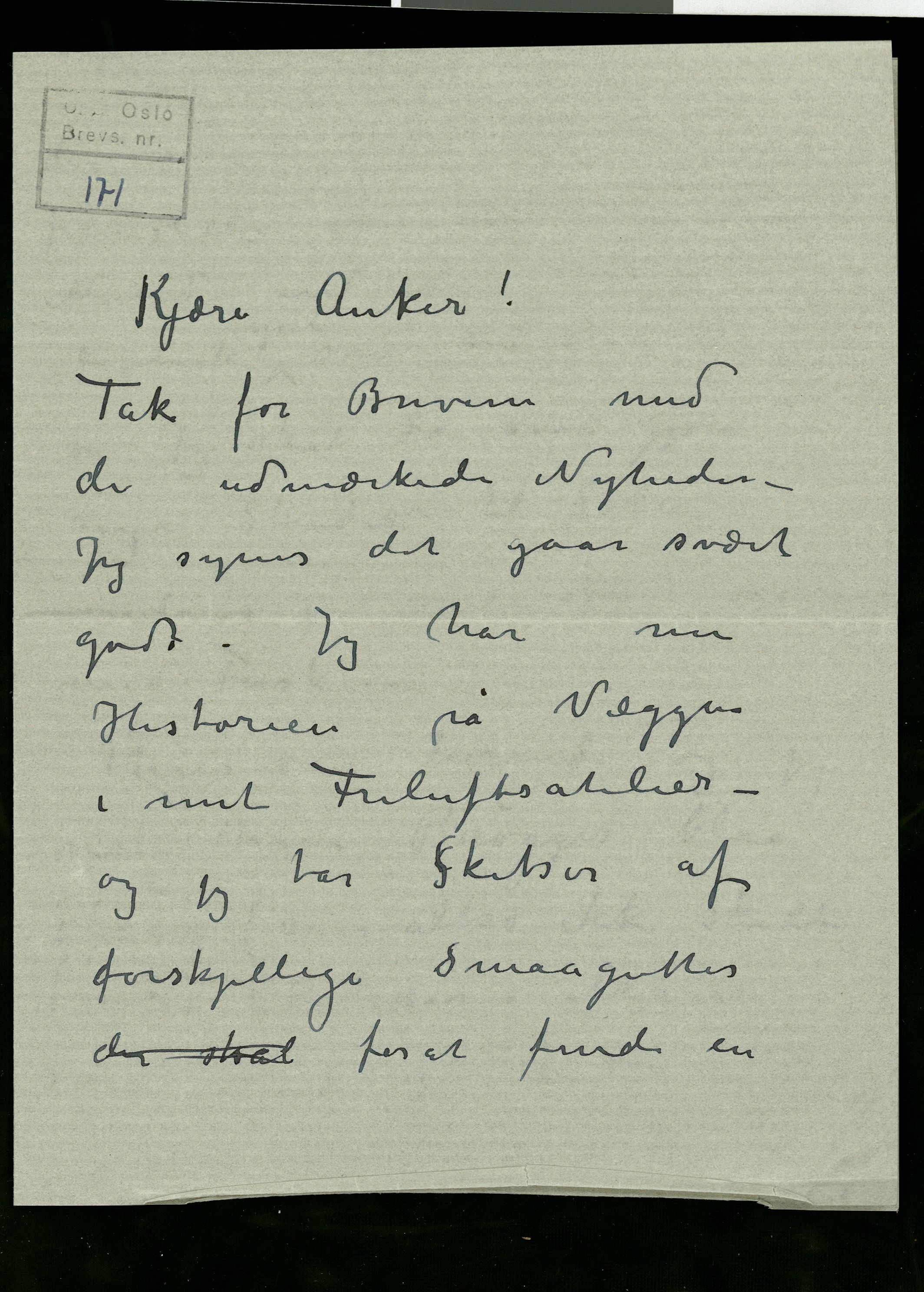 Nasjonalbiblioteket, Brevs. 171 (PN 205)