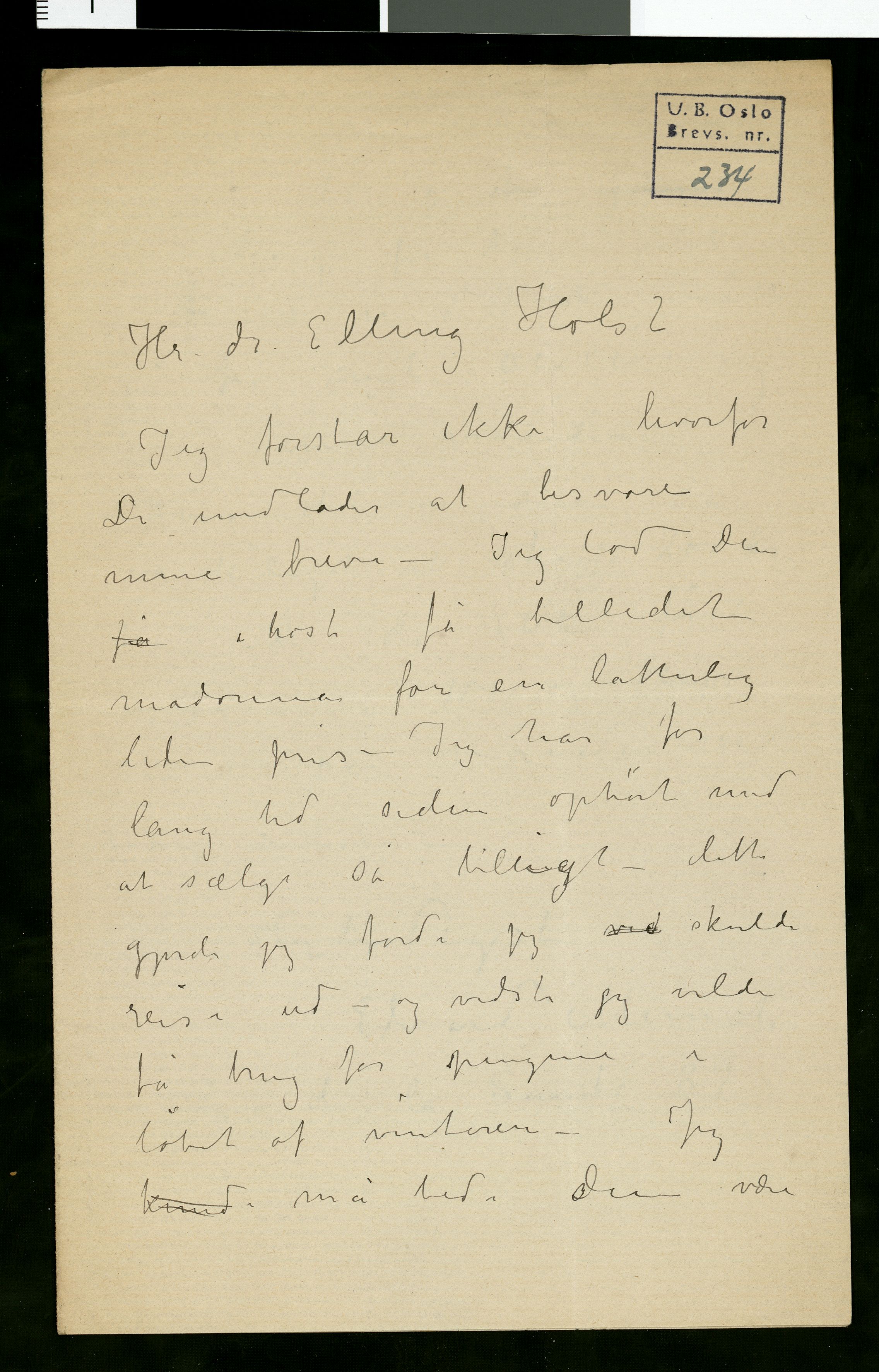 Brevs. 234 (PN 209), Nasjonalbiblioteket. Datert 1896. Brev til Elling Holst