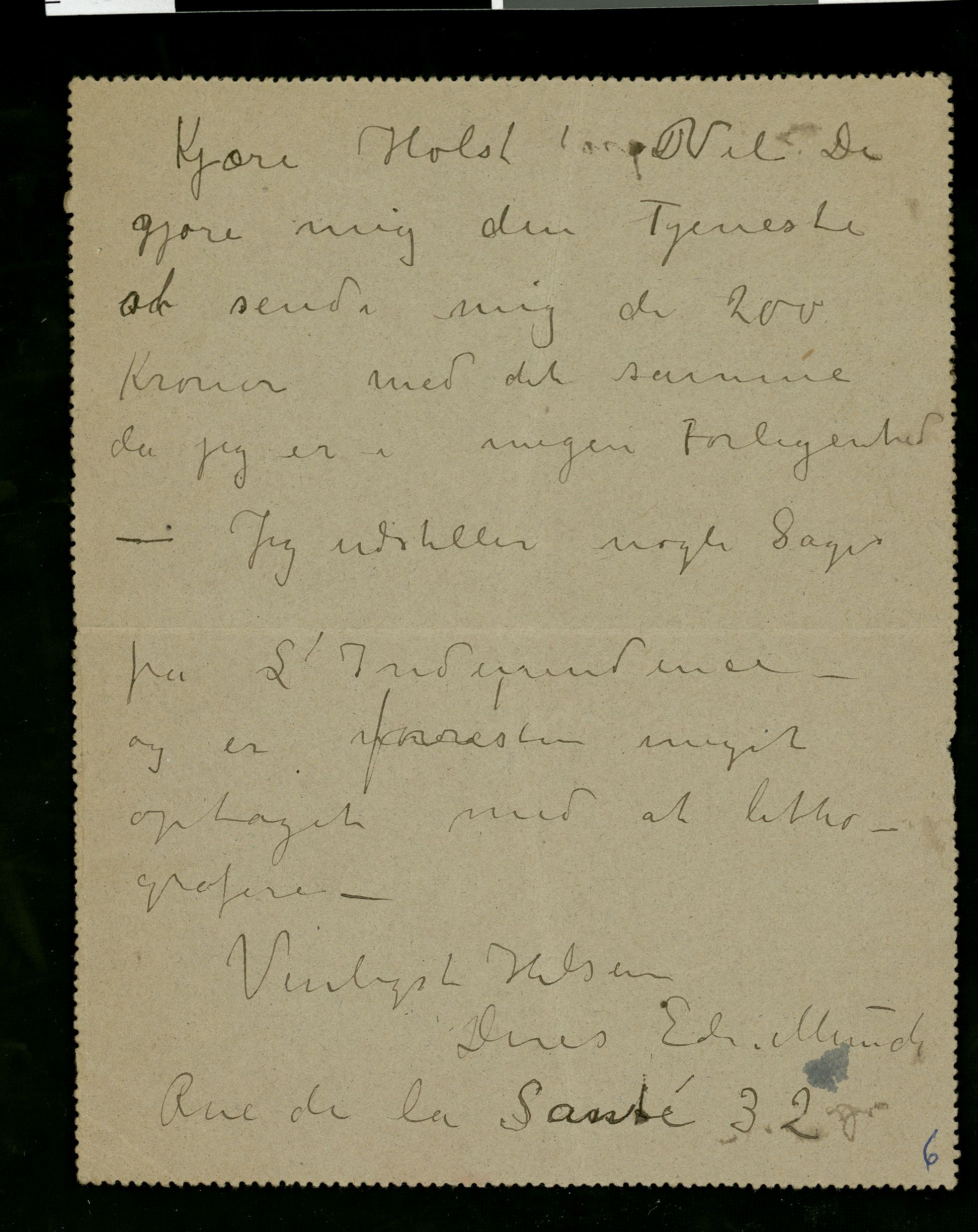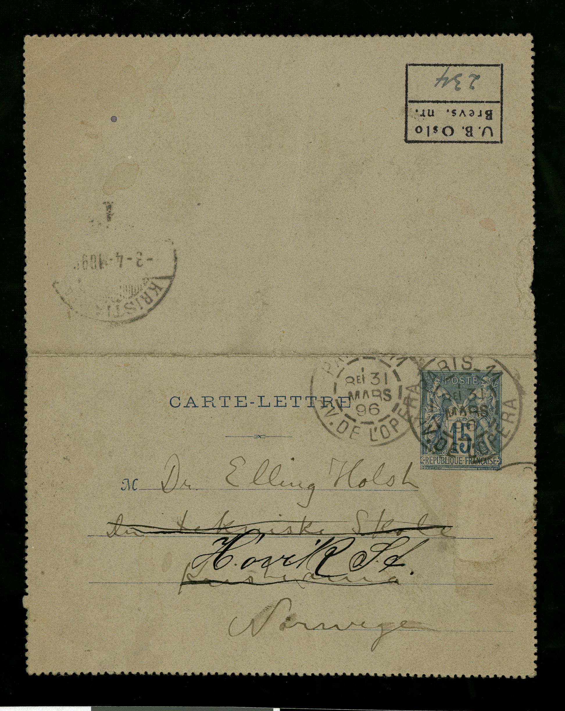 Brevs. 234 (PN 210), Nasjonalbiblioteket. Datert 31.3.1896. Brev til Elling Holst