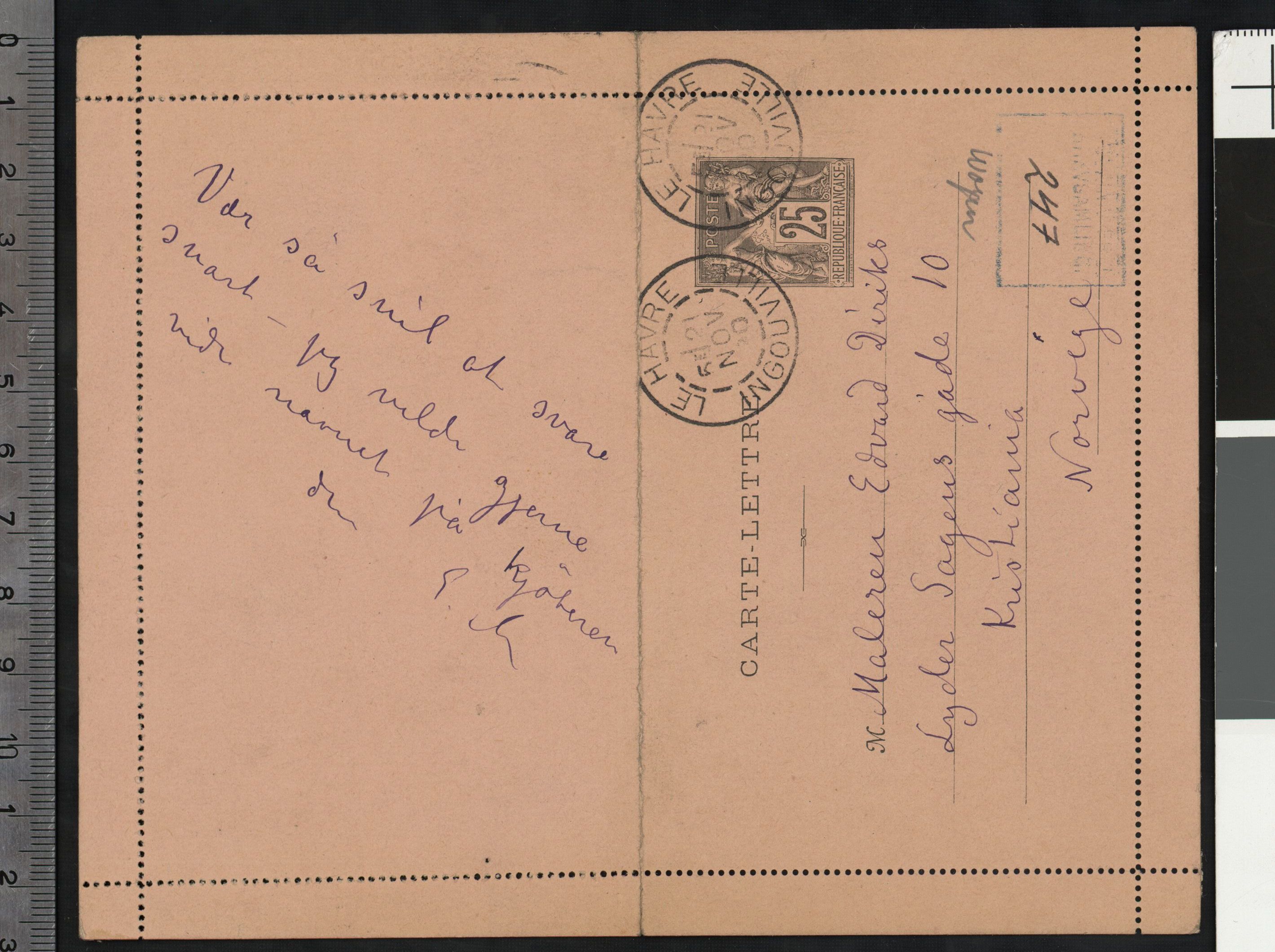 Brevs. 247 (PN 211), Nasjonalbiblioteket. Datert 21.11.1890. Brev til Edvard Diriks