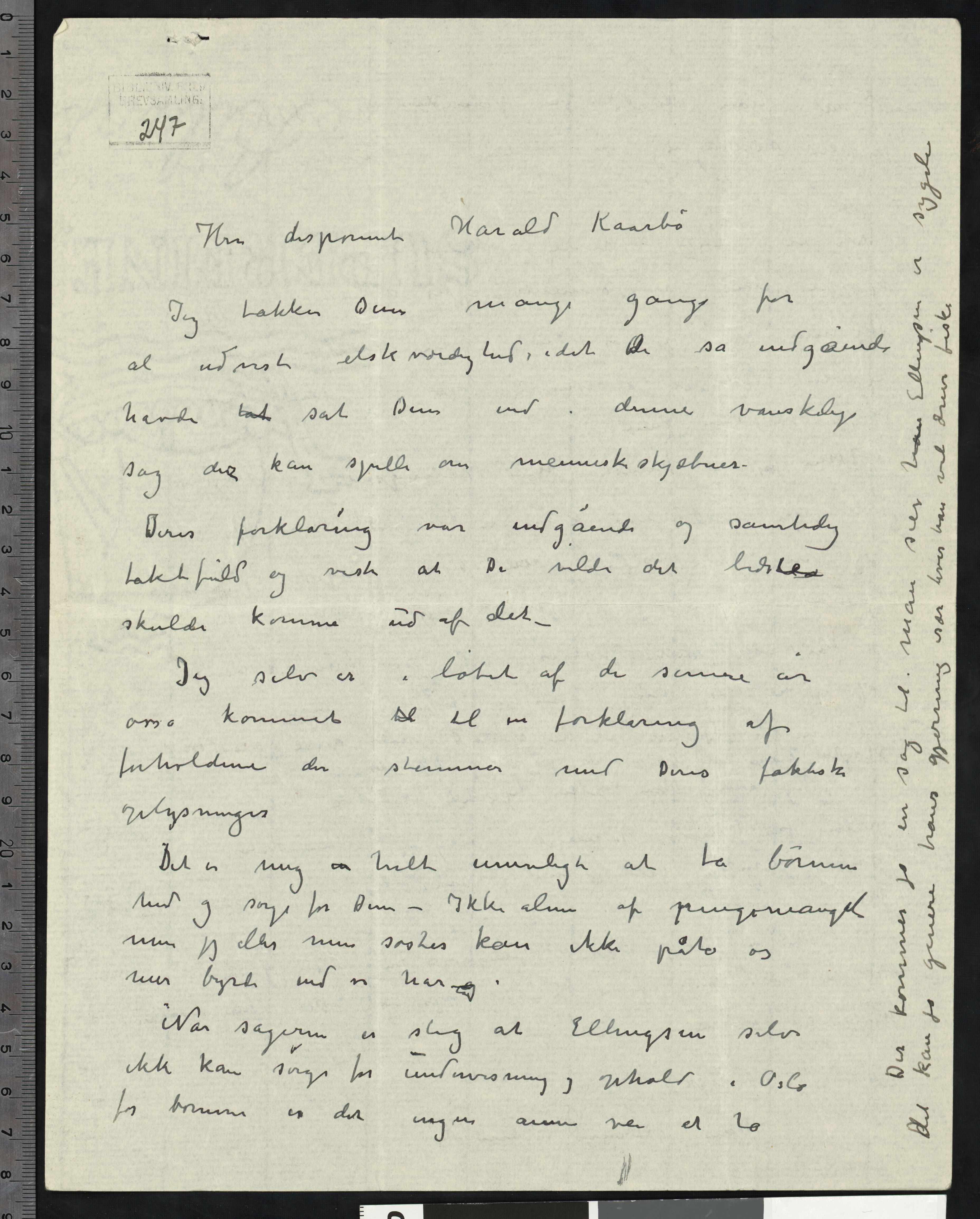 Brevs. 247 (PN 213), Nasjonalbiblioteket. Datert 1933–1939. Brev til Harald Kaarbø