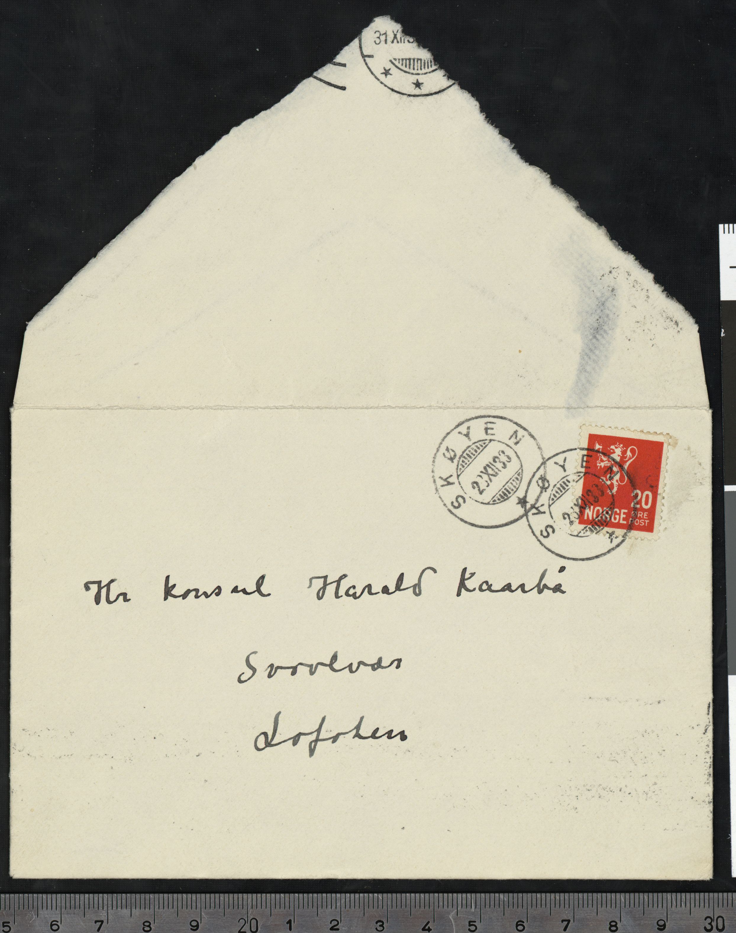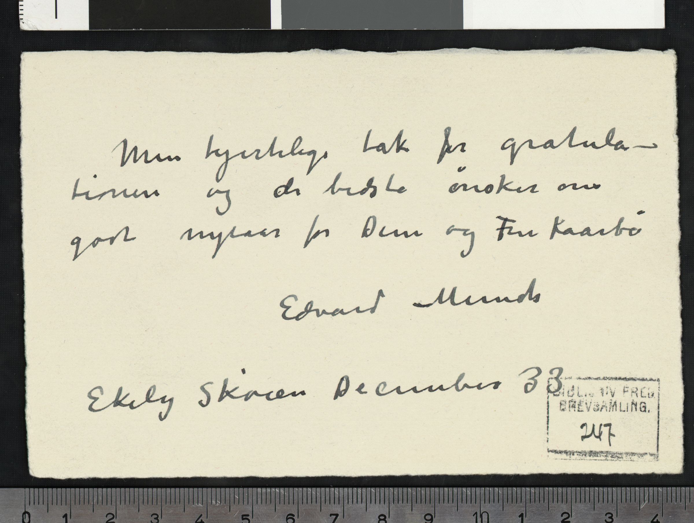 Brevs. 247 (PN 223), Nasjonalbiblioteket. Datert 28.12.1933. Brev til Harald Kaarbø