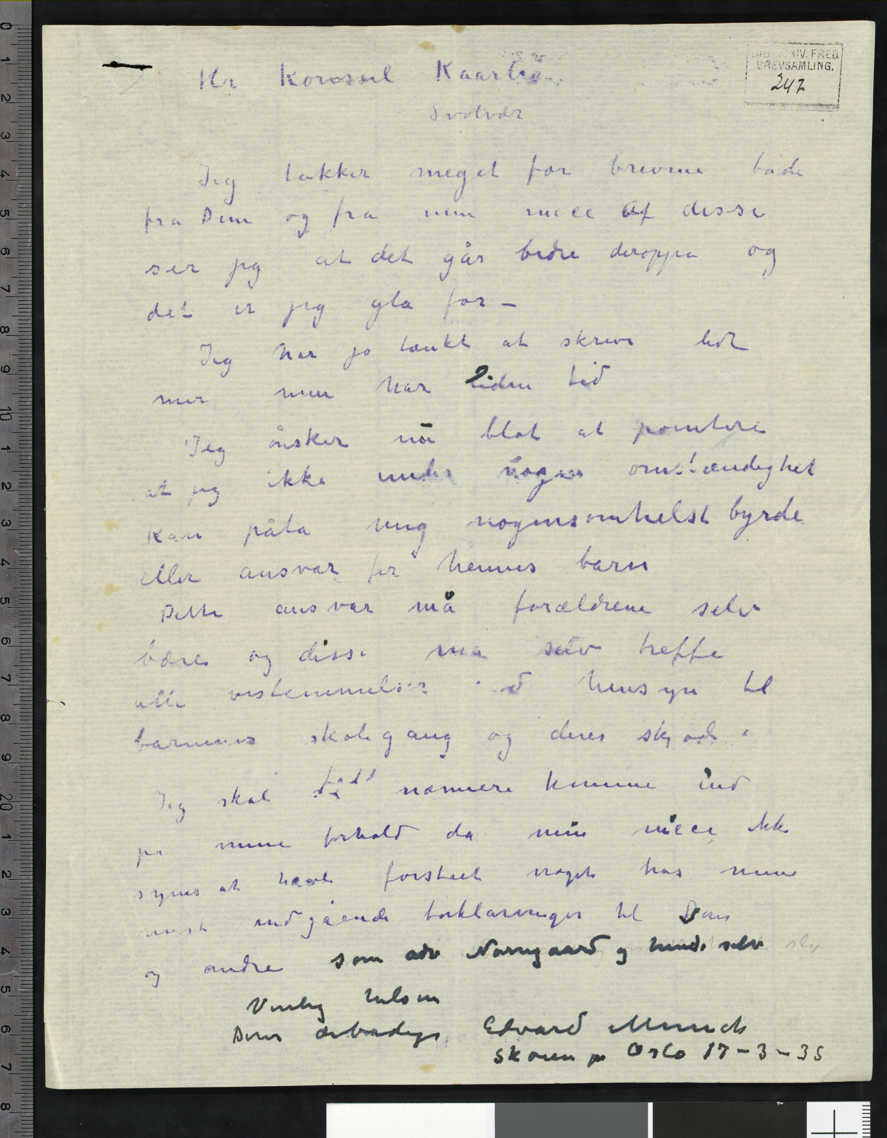 Brevs. 247 (PN 239), Nasjonalbiblioteket. Datert 17.3.1935. Brev til Harald Kaarbø