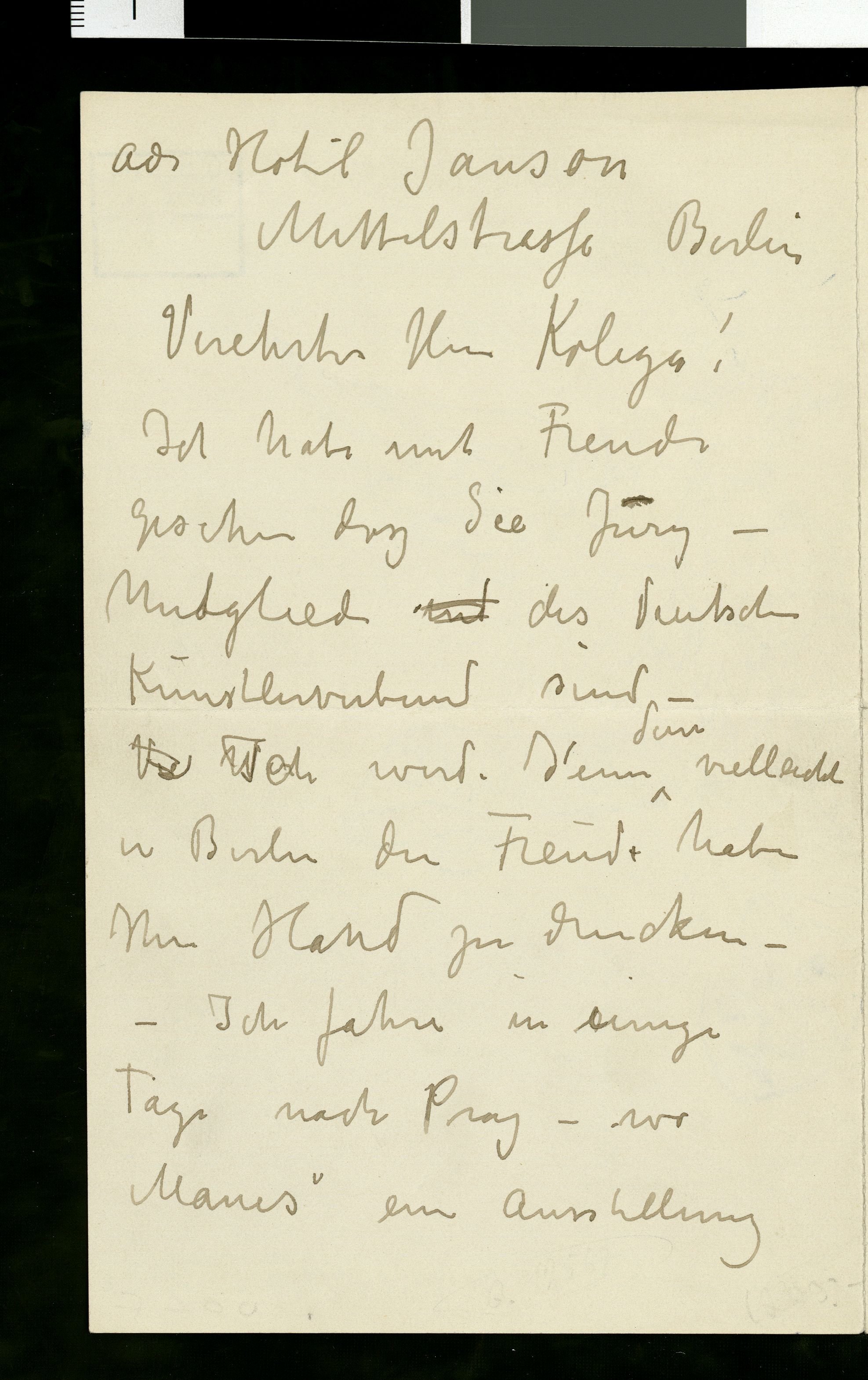 Brevs. 518 (PN 282), Nasjonalbiblioteket. Datert 1905. Brev til Carl Moll