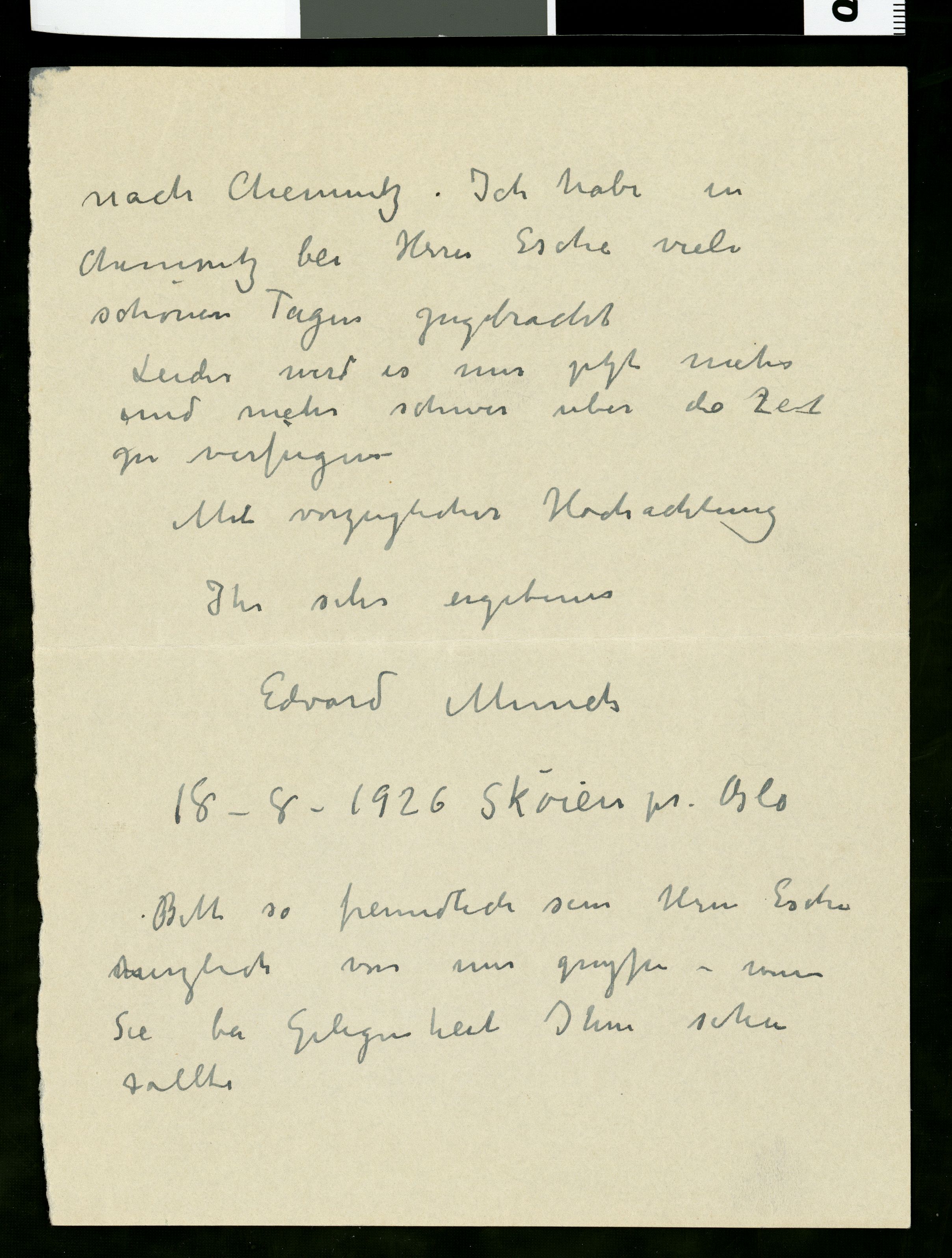 Brevs. 518 (PN 305), Nasjonalbiblioteket. Datert 18.8.1926. Brev til Friedrich Schreiber-Weigand
