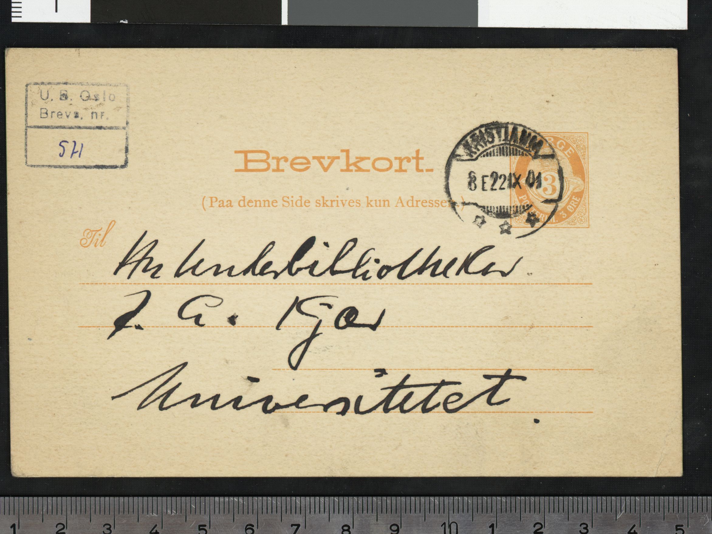 Brevs. 571 (PN 317), Nasjonalbiblioteket. Datert 22.9.1901. Brev til Albert Kjær