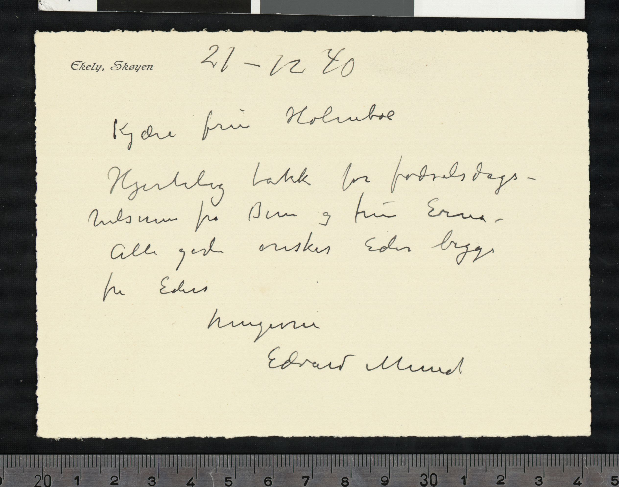 Brevs. 603 (PN 323), Nasjonalbiblioteket. Datert 21.12.1940. Brev til Julie Holmboe