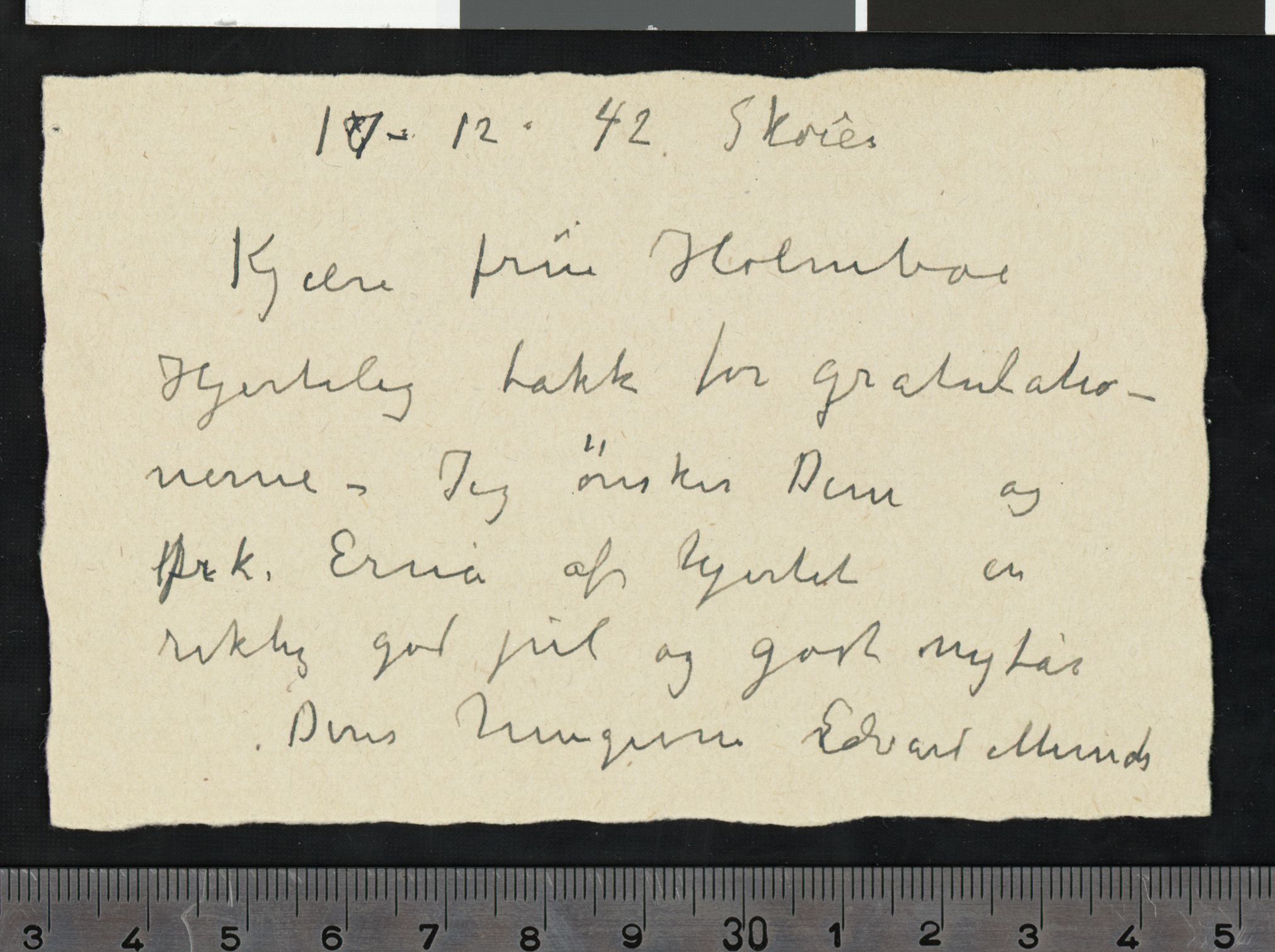 Brevs. 603 (PN 325), Nasjonalbiblioteket. Datert 17.12.1942. Brev til Julie Holmboe